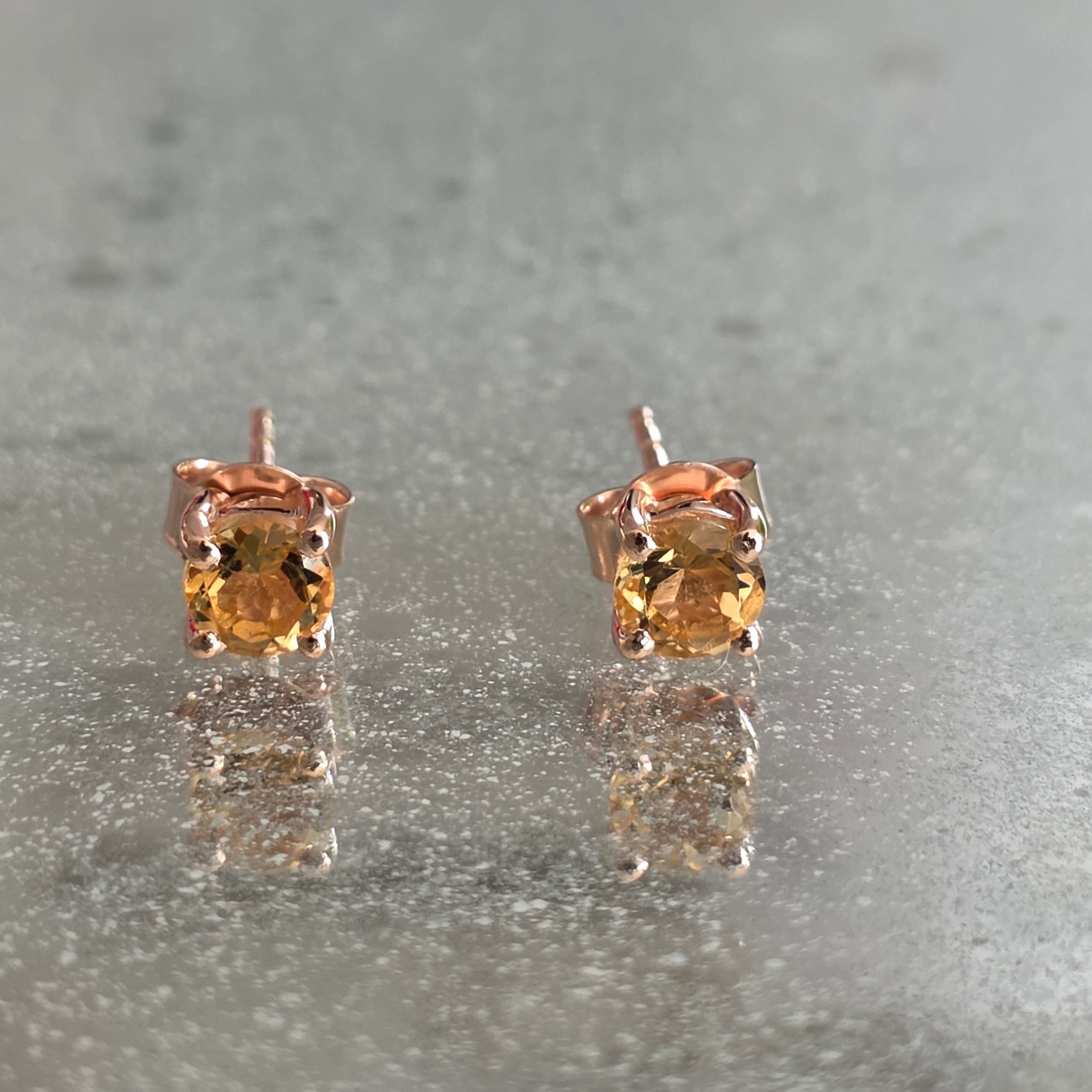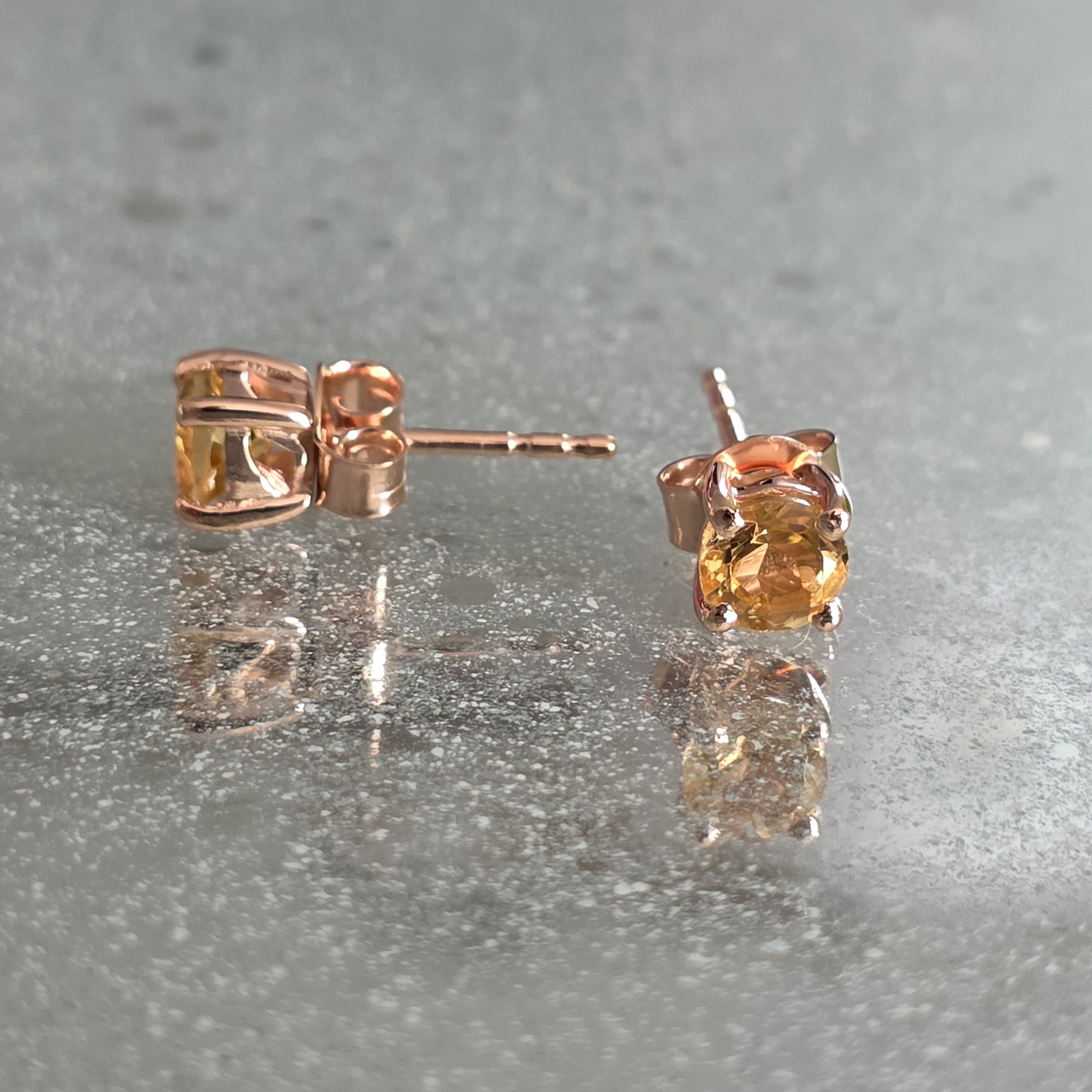 925 strieborných citrínových náušníc pokrytých ružovým zlatom