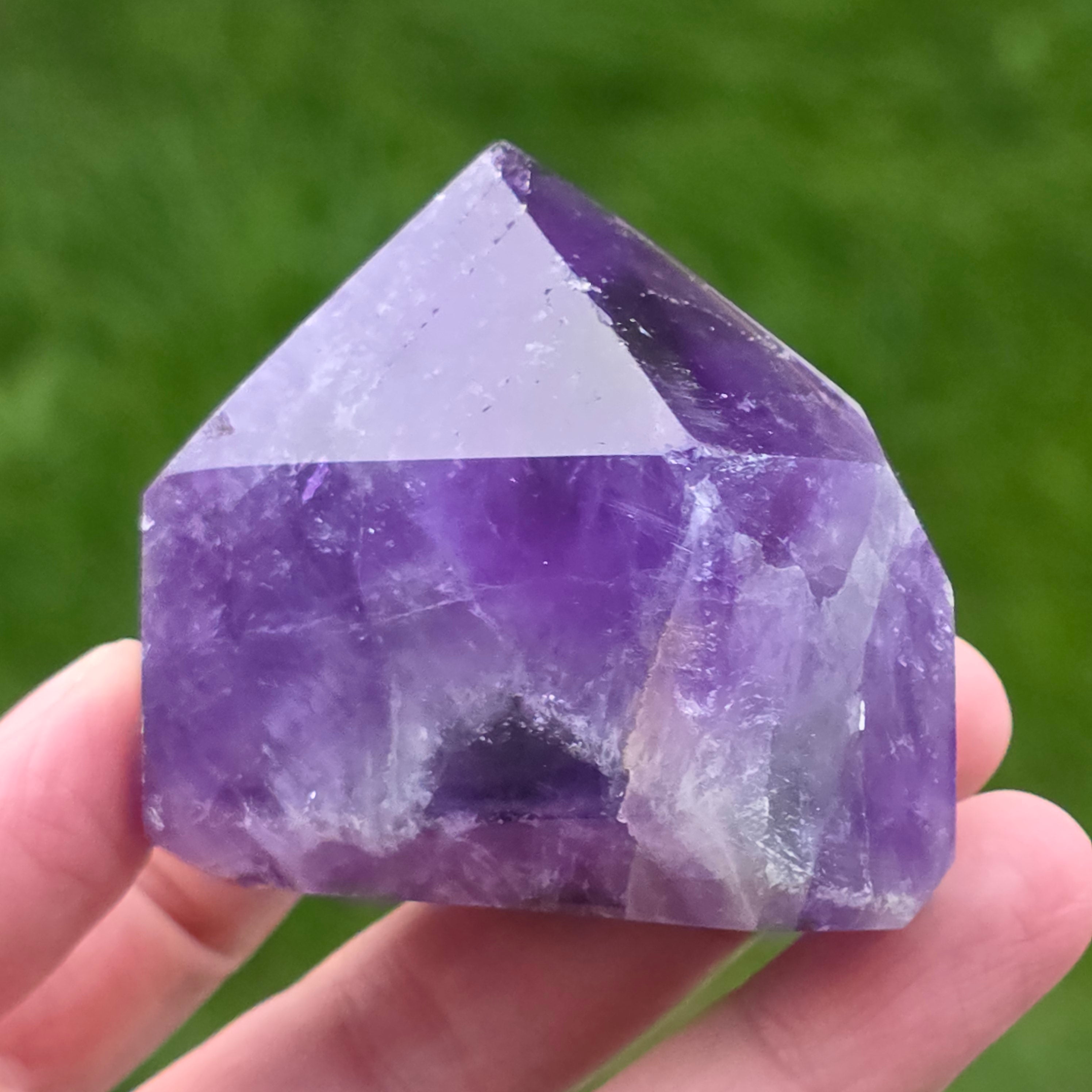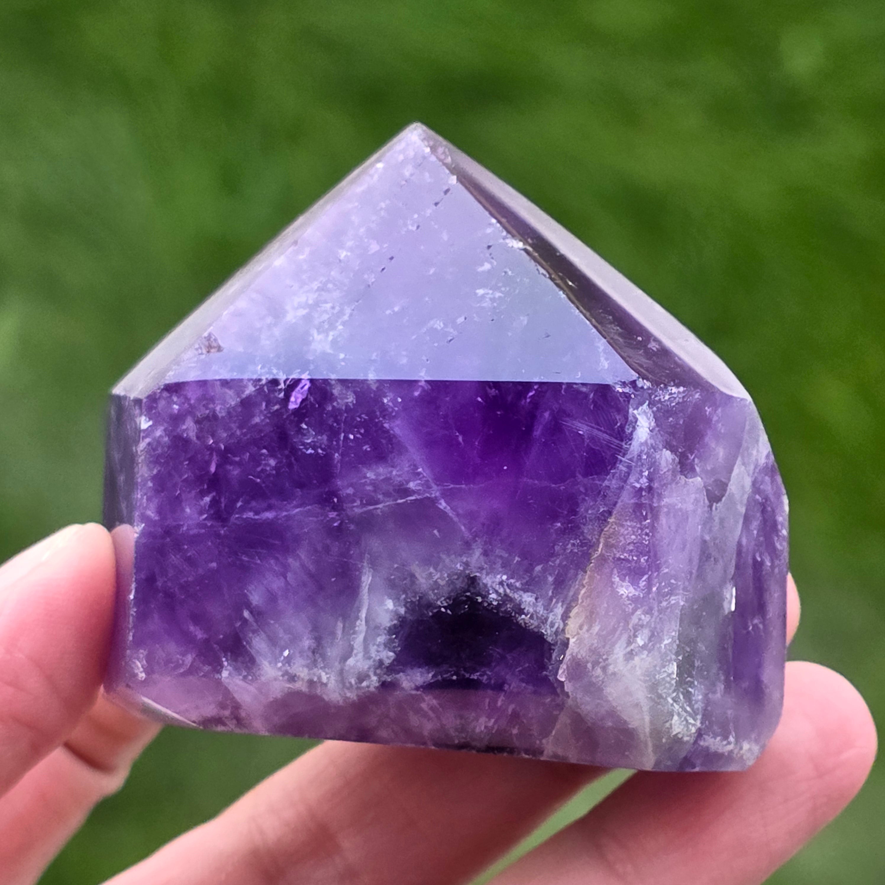 Chevron ametyst je známy pre svoje spojenie s korunnou a čakrou tretieho oka, zvyšuje intuíciu a schopnosť robiť rozhodnutia.