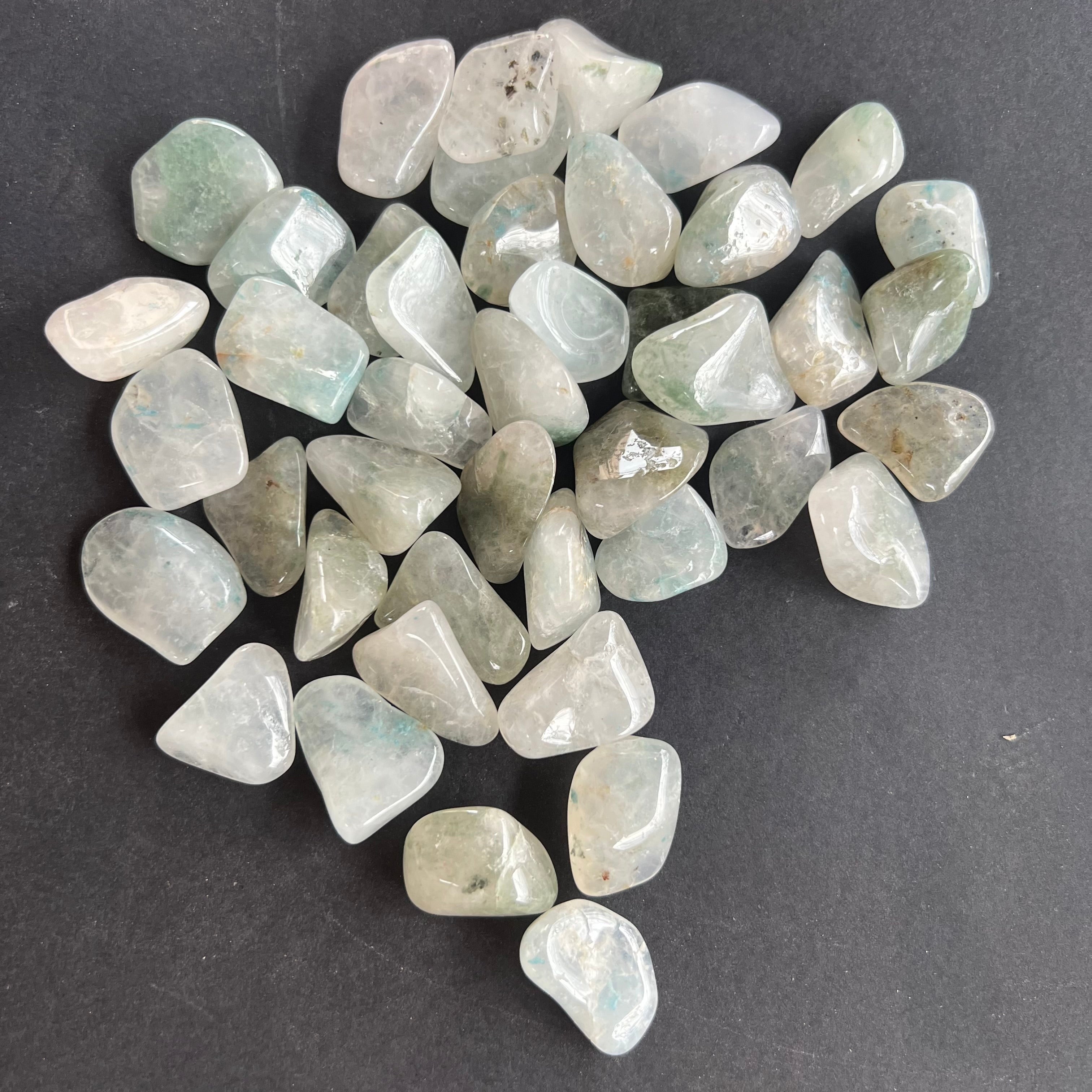 Kremeň Aqualit valcovaná mini kamienky, veľkosti od 1,5 do 4,5 cm. Cena sa líši podľa veľkosti kamienka, prosím vyberte požadovanú veľkosť. Cena sa vzťahuje na jeden kus.