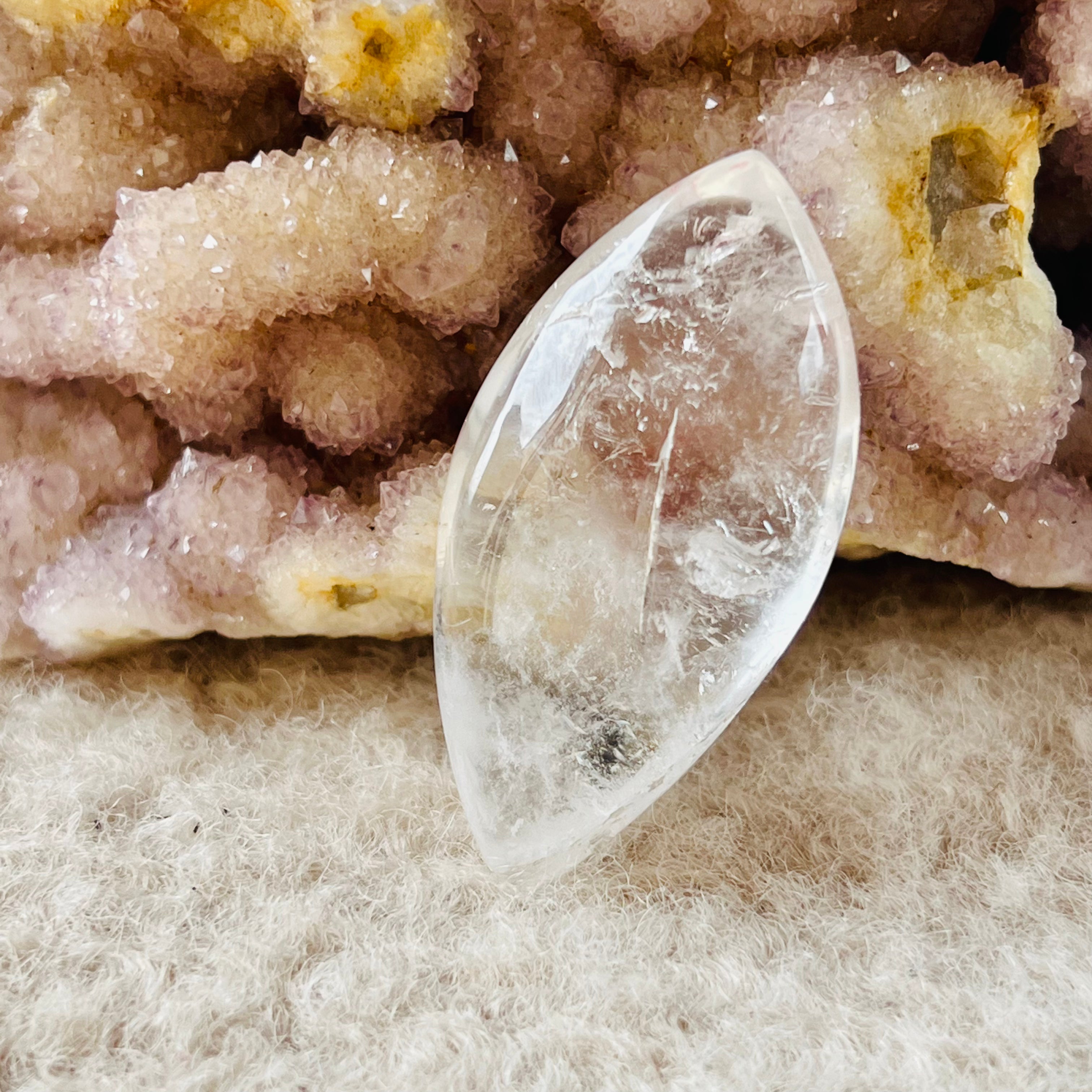 Bezfarebný kremeň je známy svojimi metafyzickými vlastnosťami a je považovaný za kryštál, ktorý prináša centrovanie, rovnováhu, jasnosť a pomáha zosilňovať pozitívne energie.