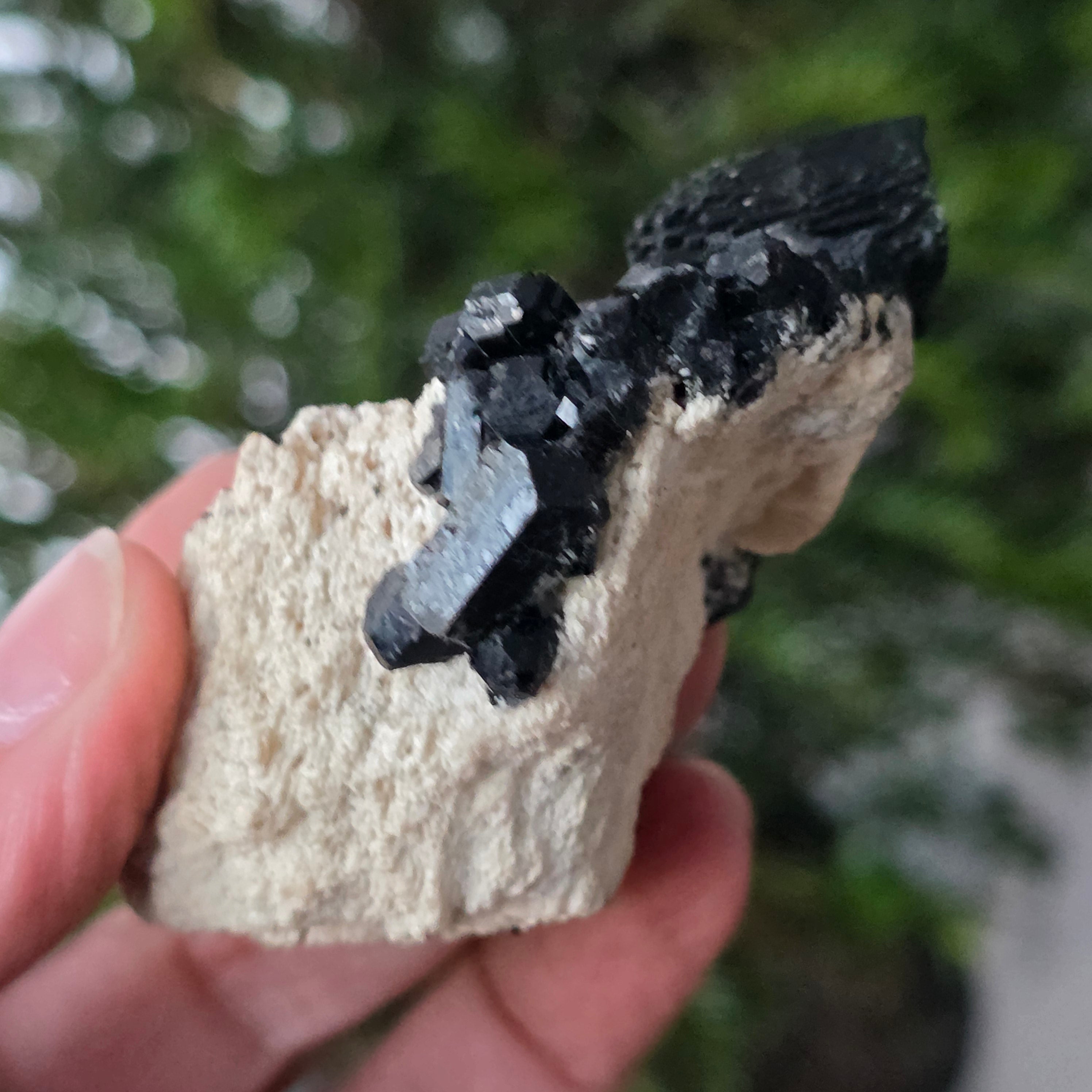 Čierny turmalín, známy aj ako schorl, je zložený zo zložitej zmesi borosilikátov a vyskytuje sa v rôznych kryštalických formách. Je to veľmi tvrdý minerál a má veľkú odolnosť voči škrabanom a opotrebeniu.
