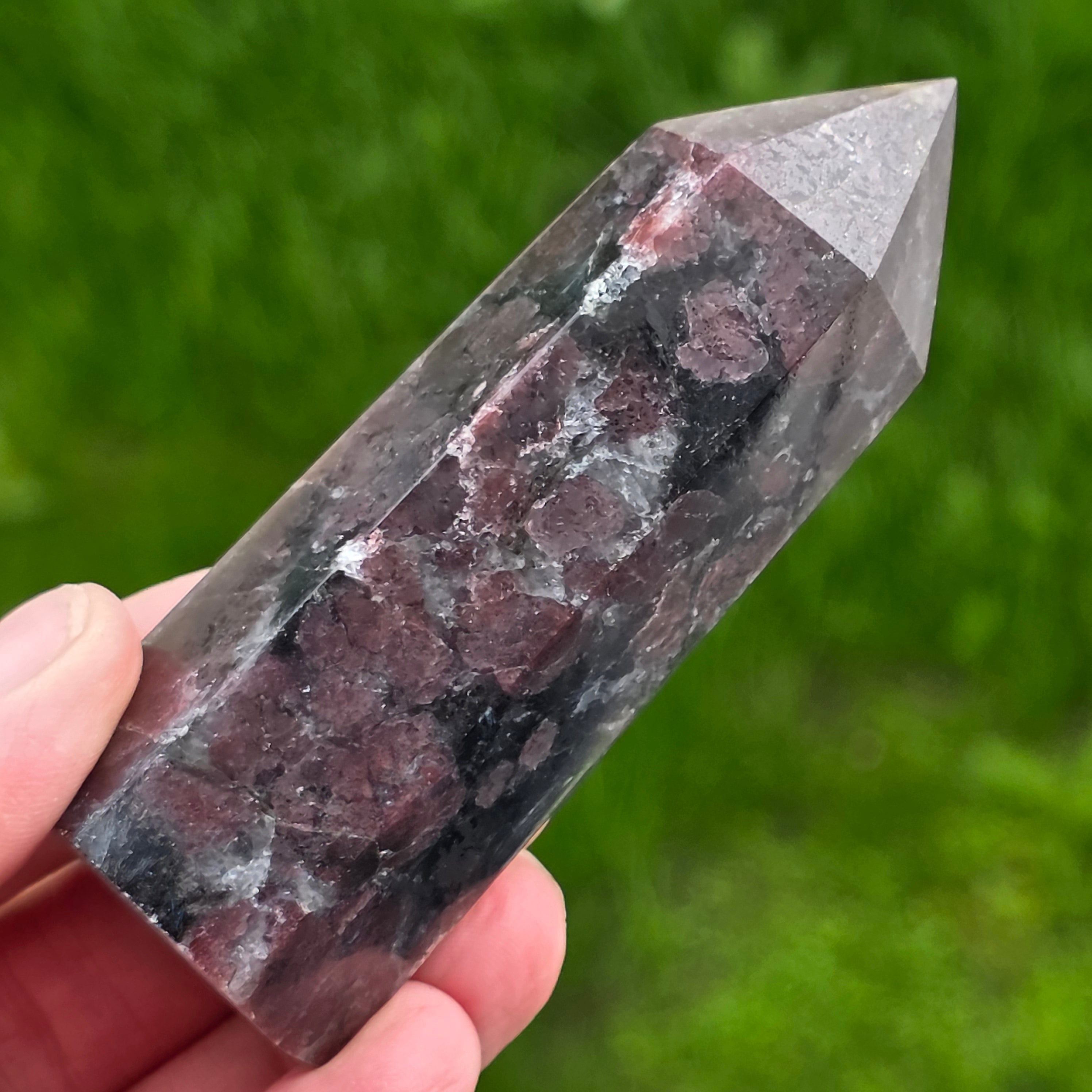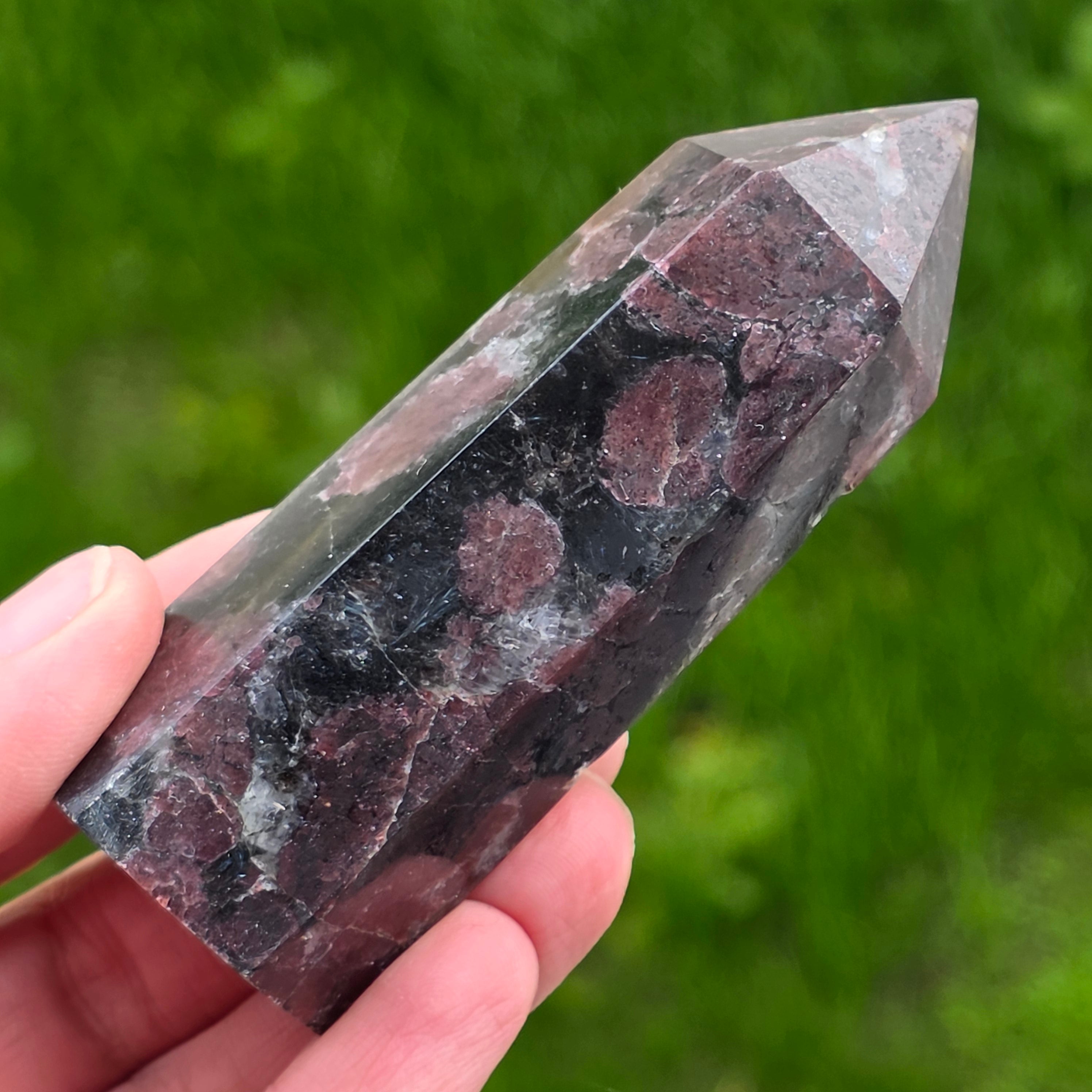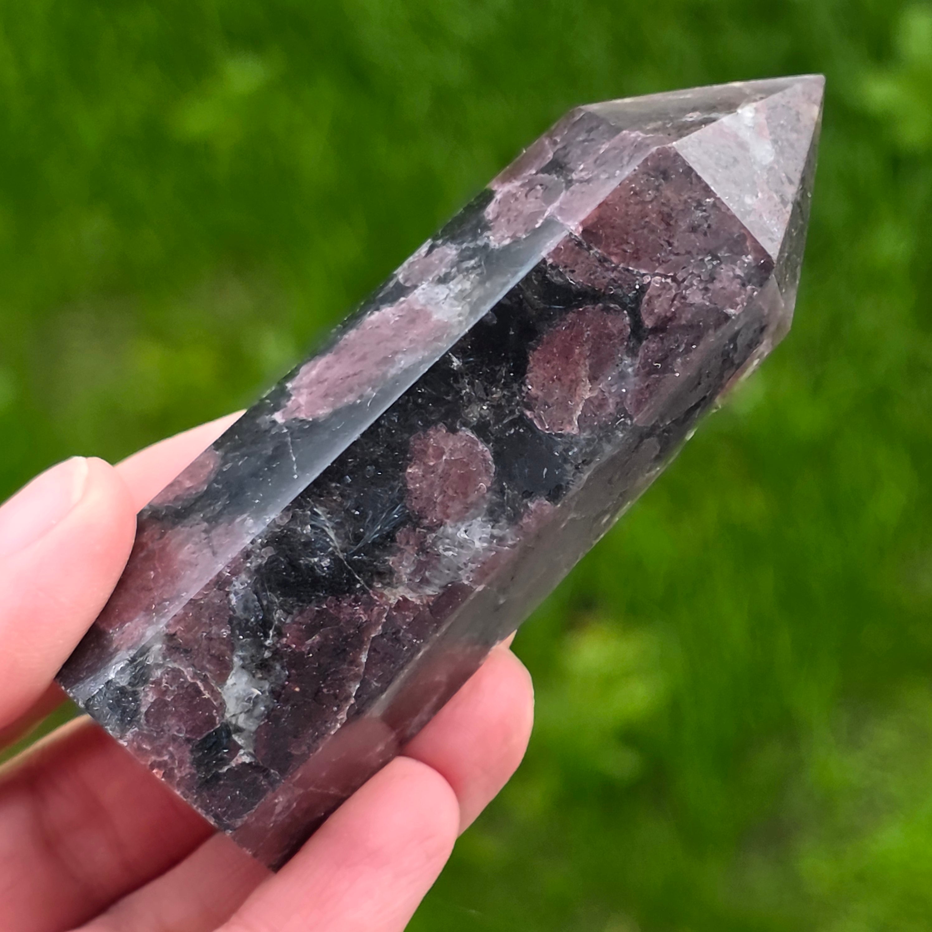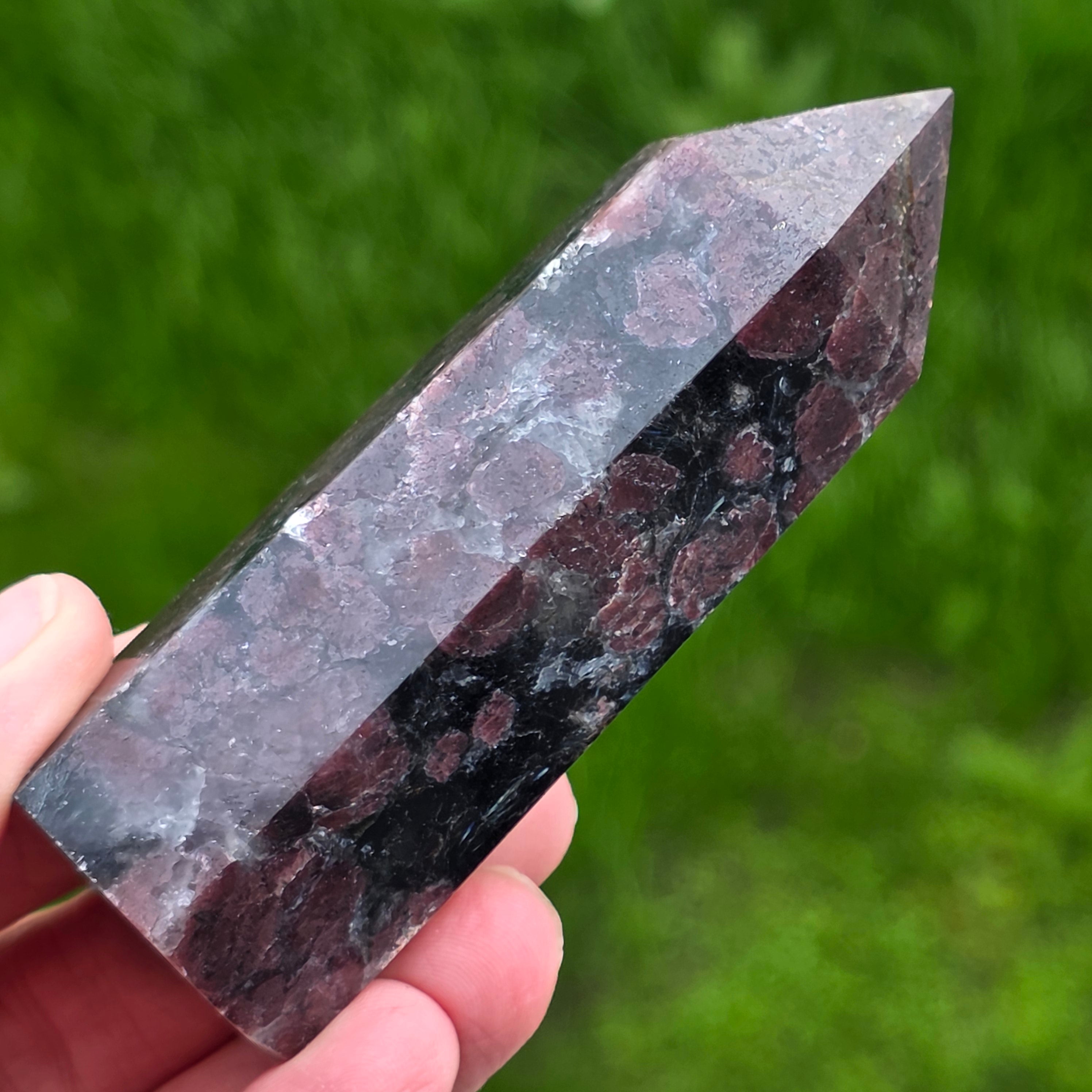 Čierny turmalínový obelisk s granátovým vzorom 20