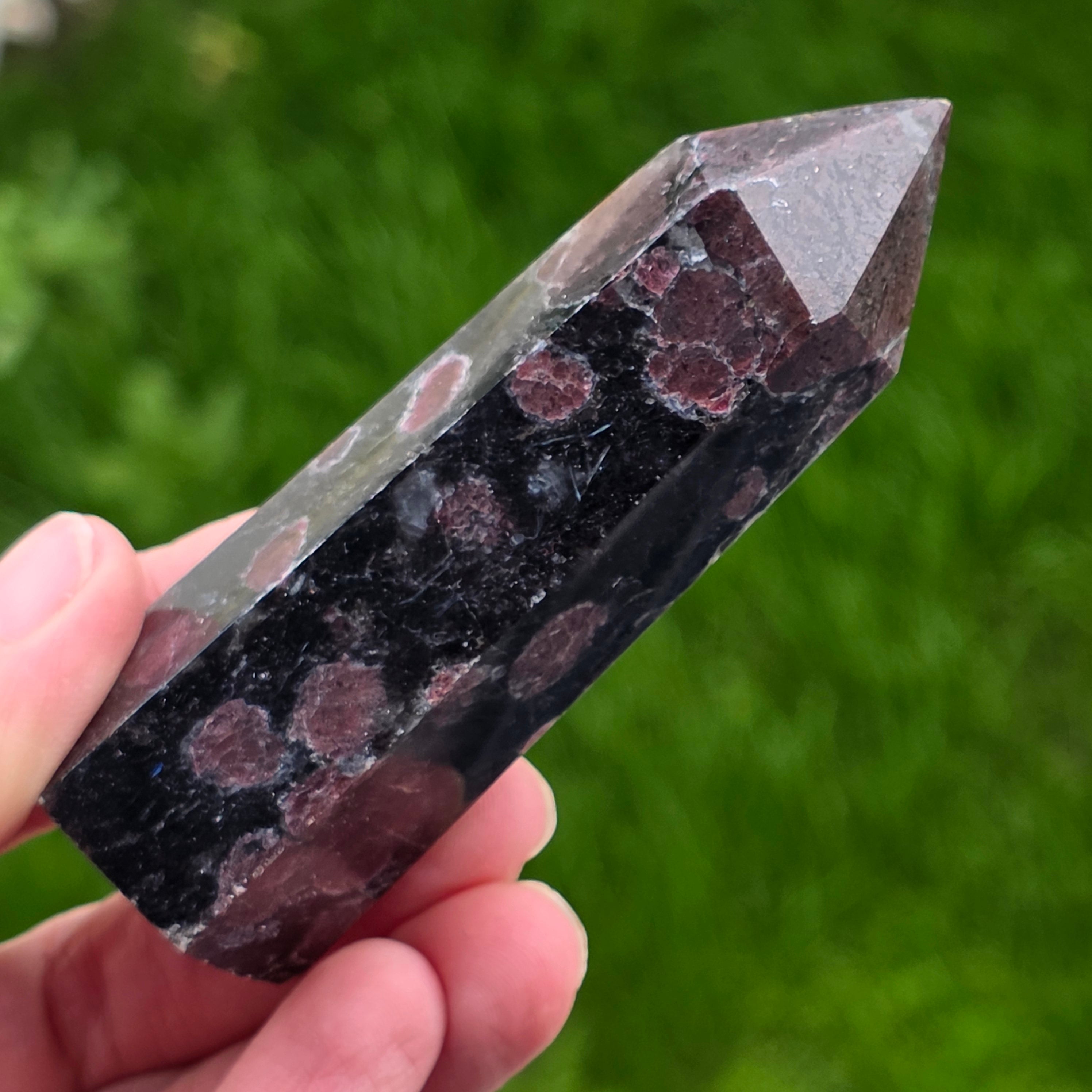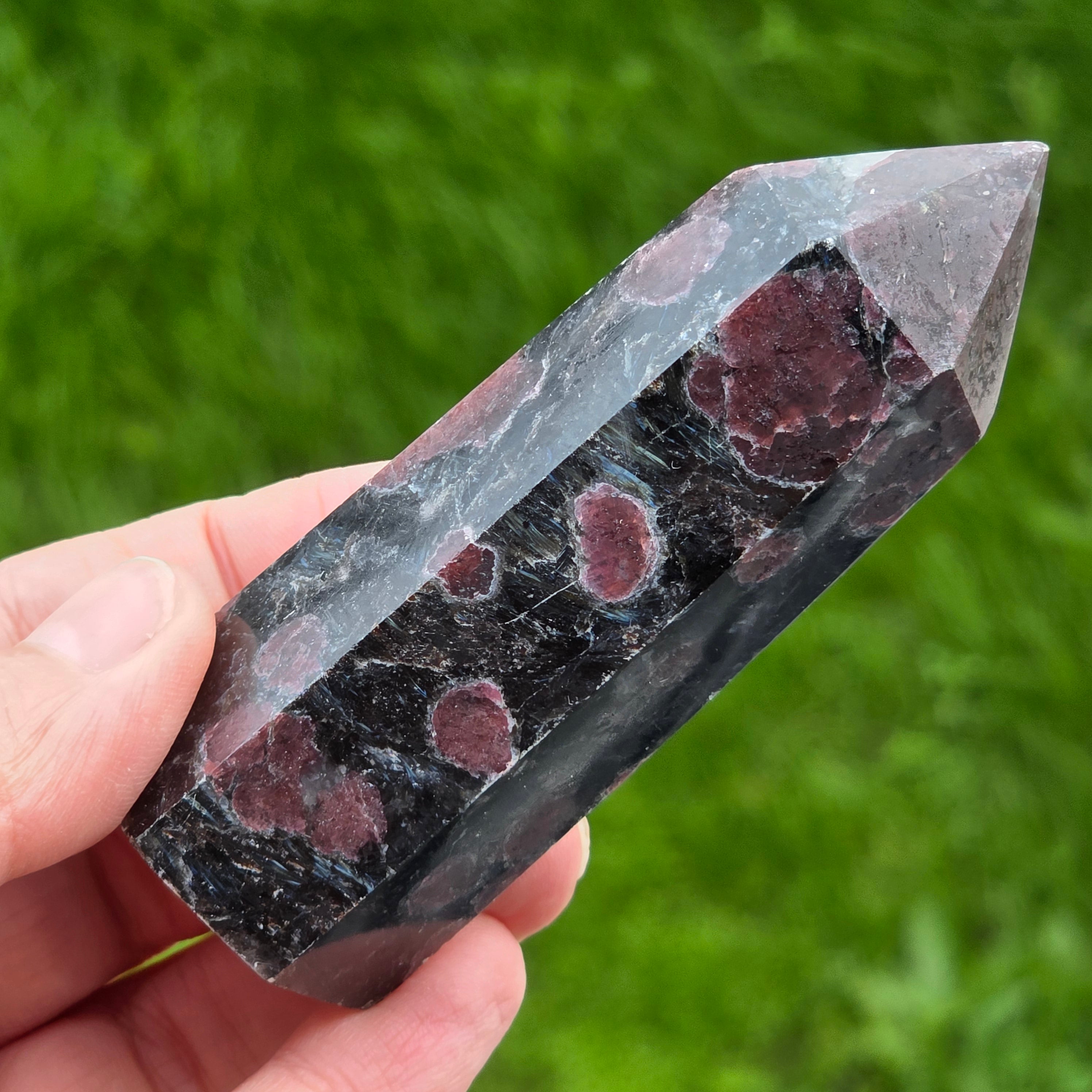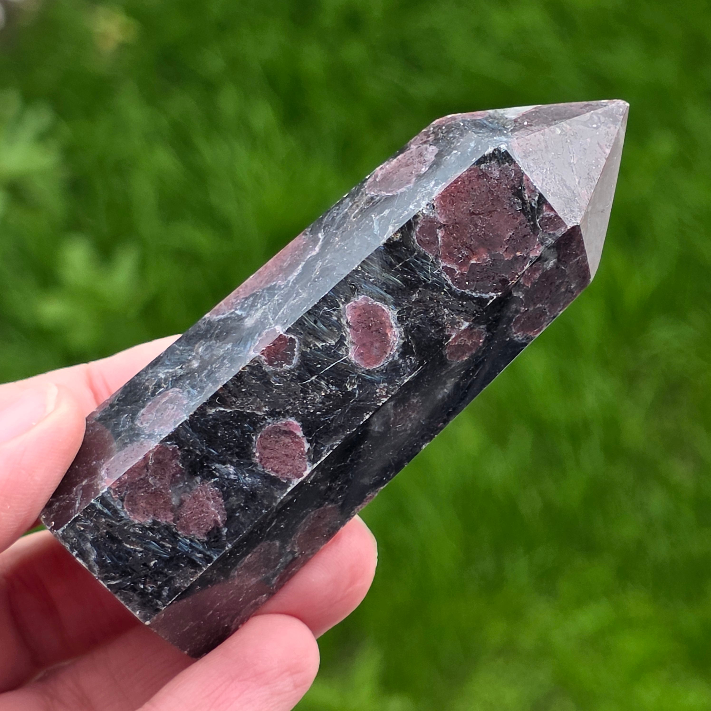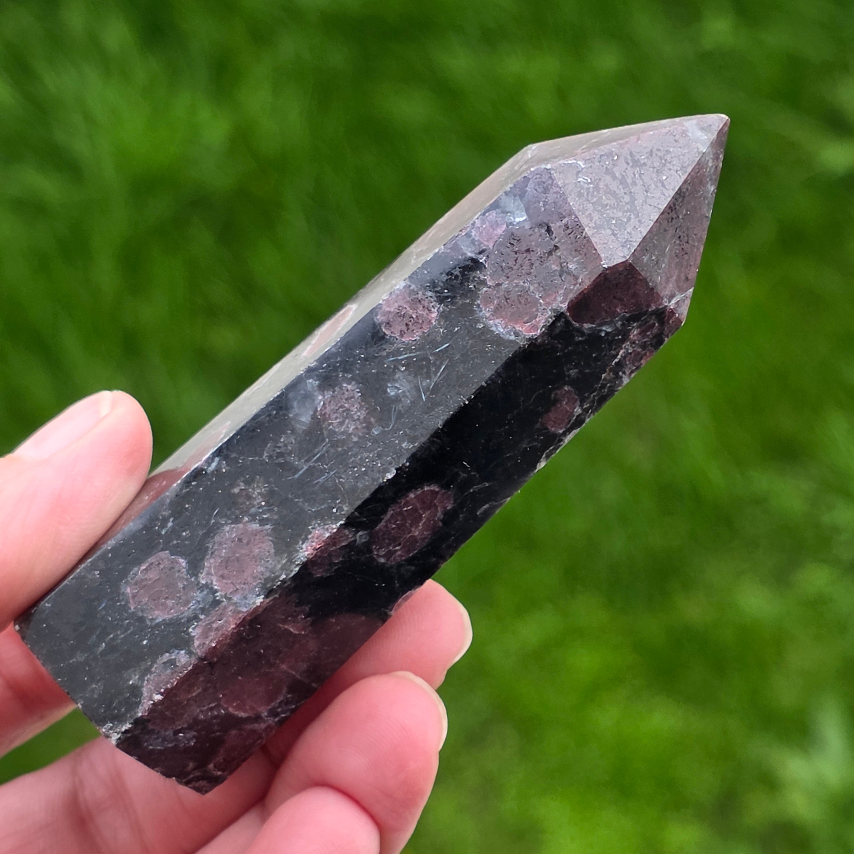 Čierny turmalínový obelisk s granátovým vzorom 21