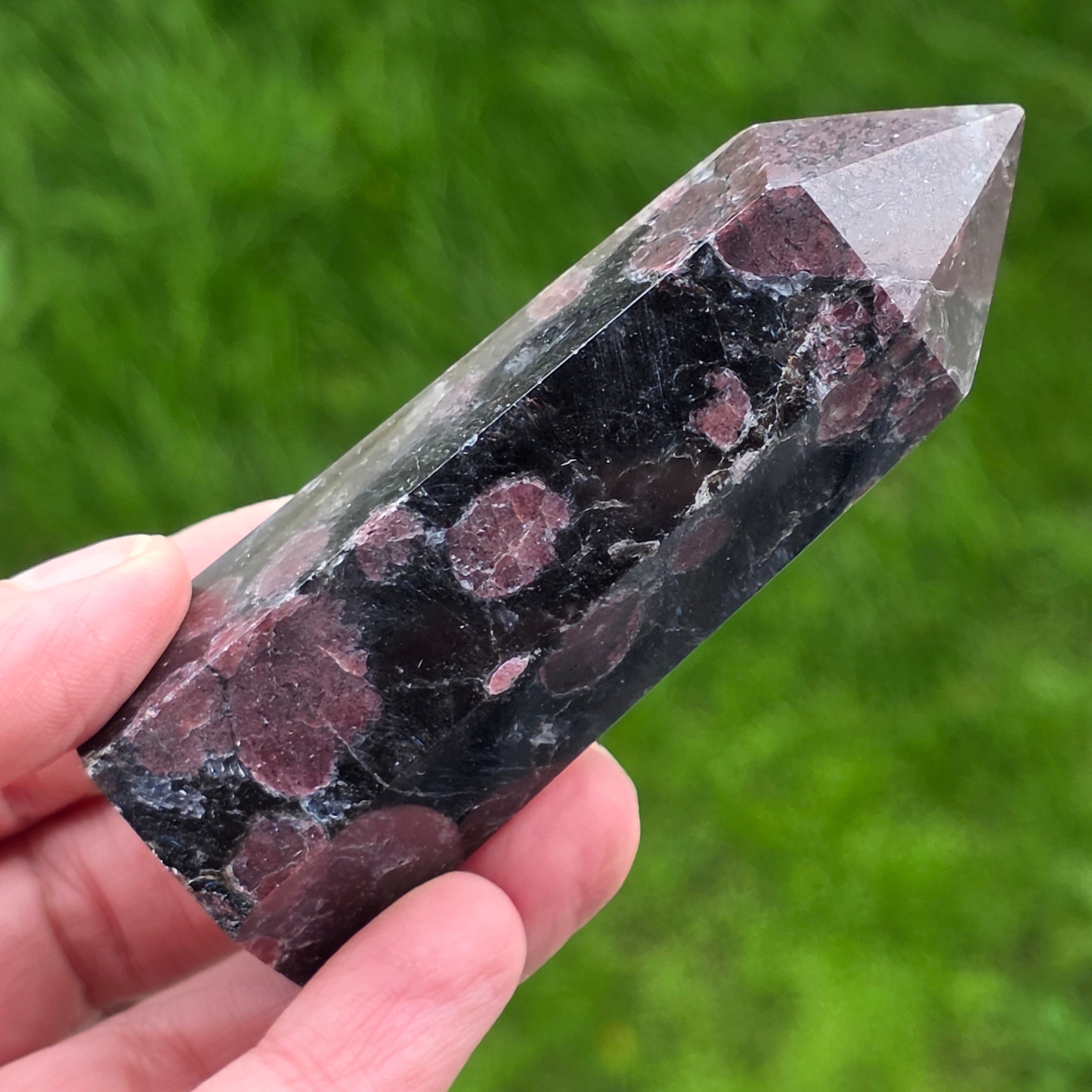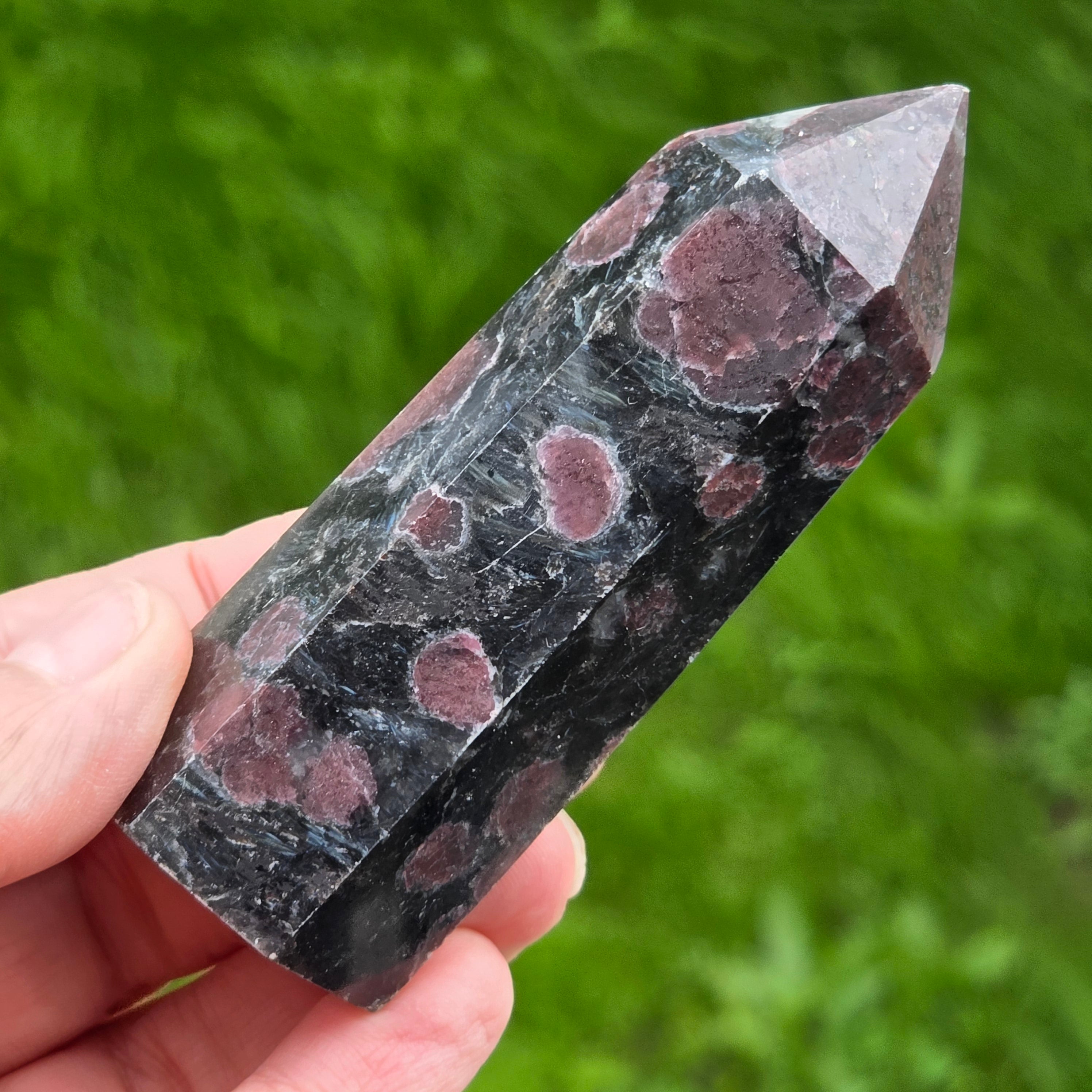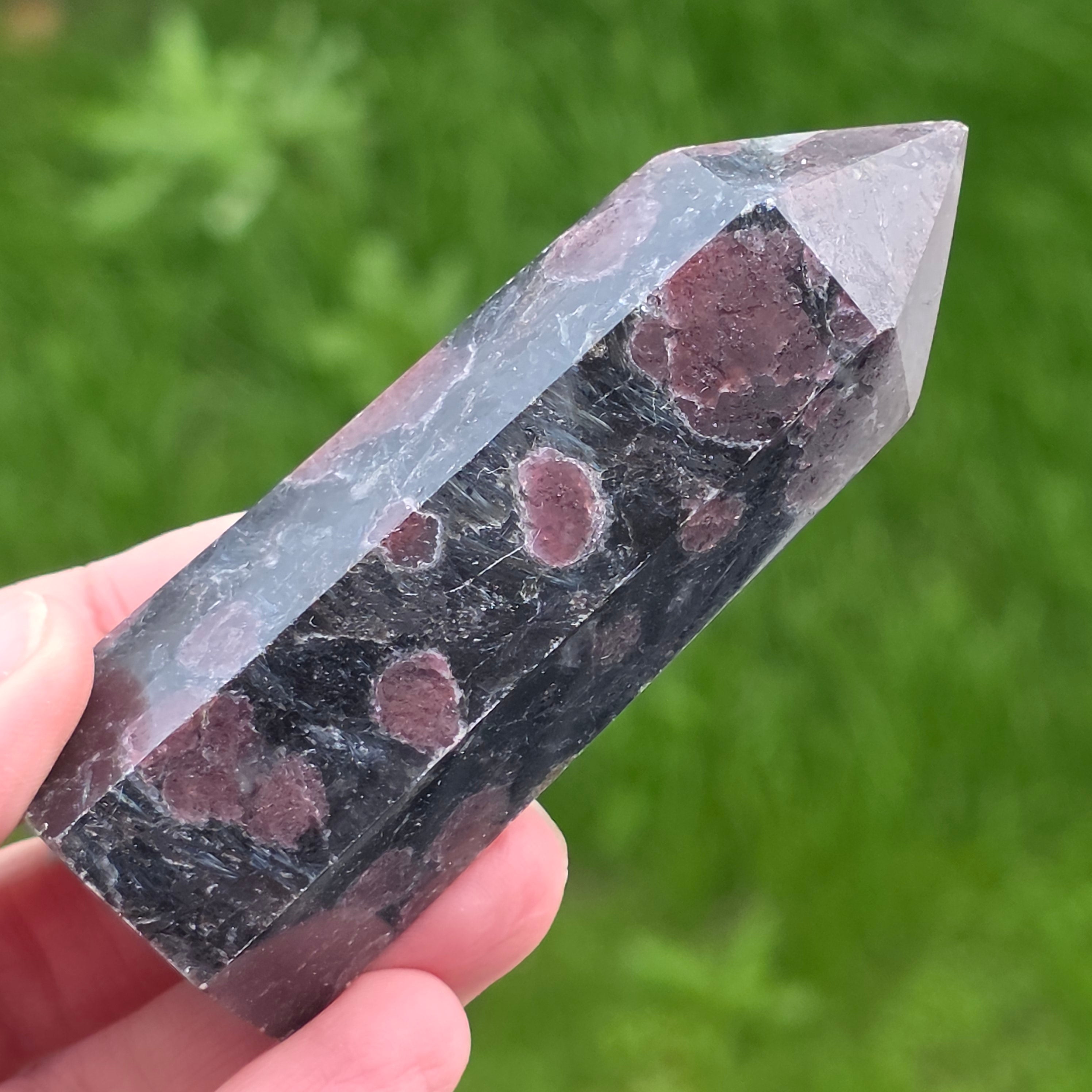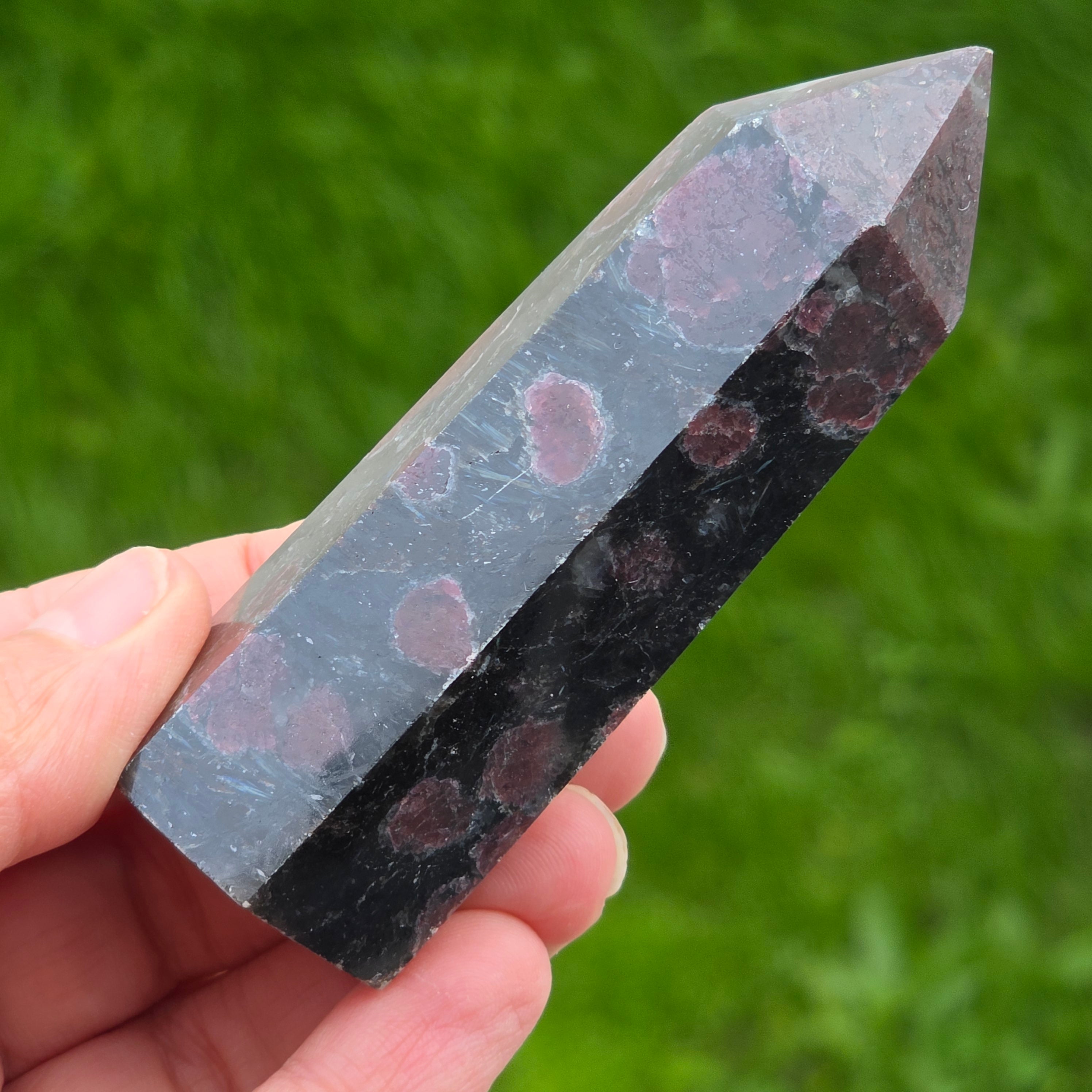 Čierny turmalínový obelisk s granátovým vzorom 21