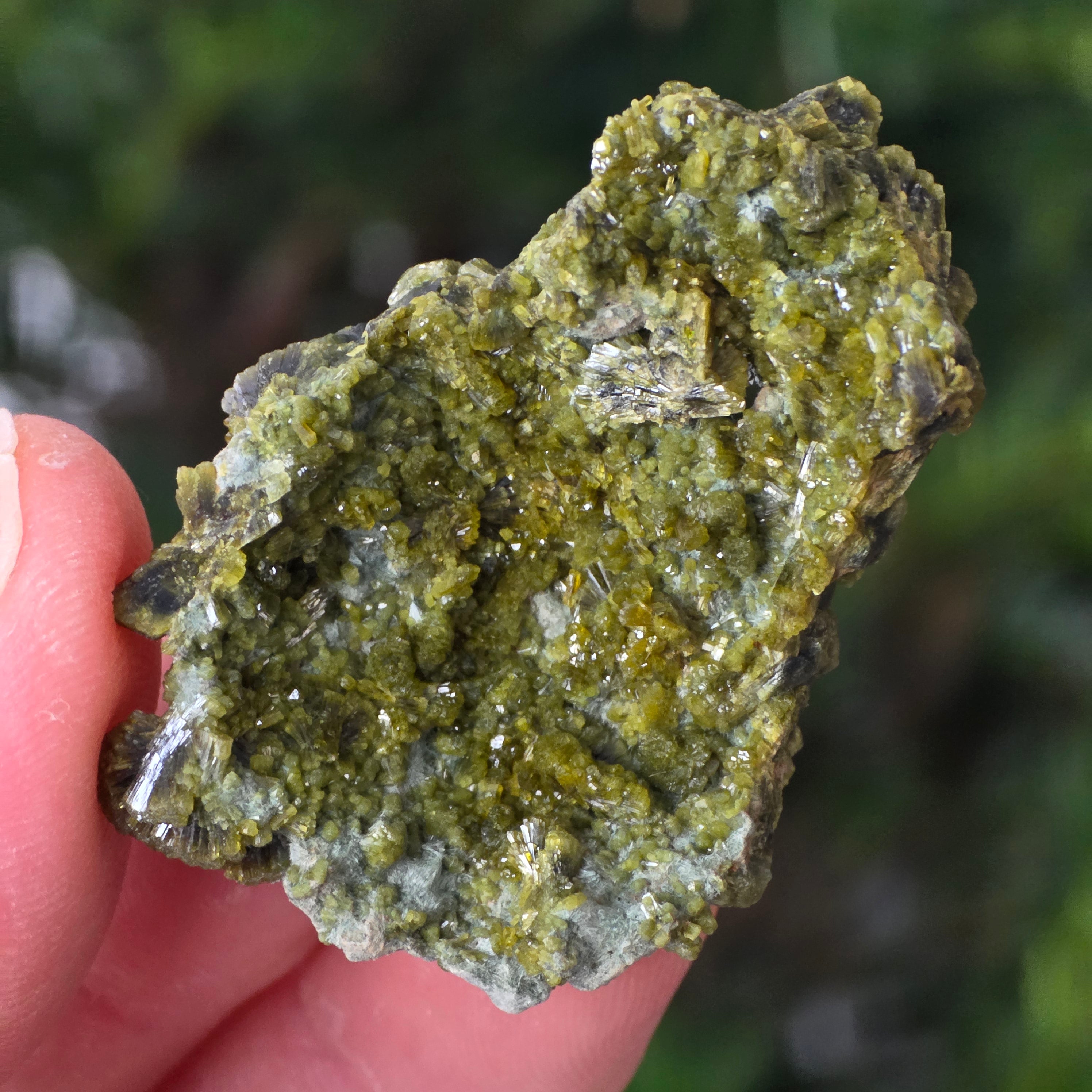 Epidot je kameň vnútorného znovuzrodenia – zelené okno k rovnováhe, odvahu a prijatiu. Jeho jemný lesk, niekedy so zlatými odleskami, akoby uchovával v sebe svetlo Zeme, ako pripomienku neustále sa obnovujúceho života.