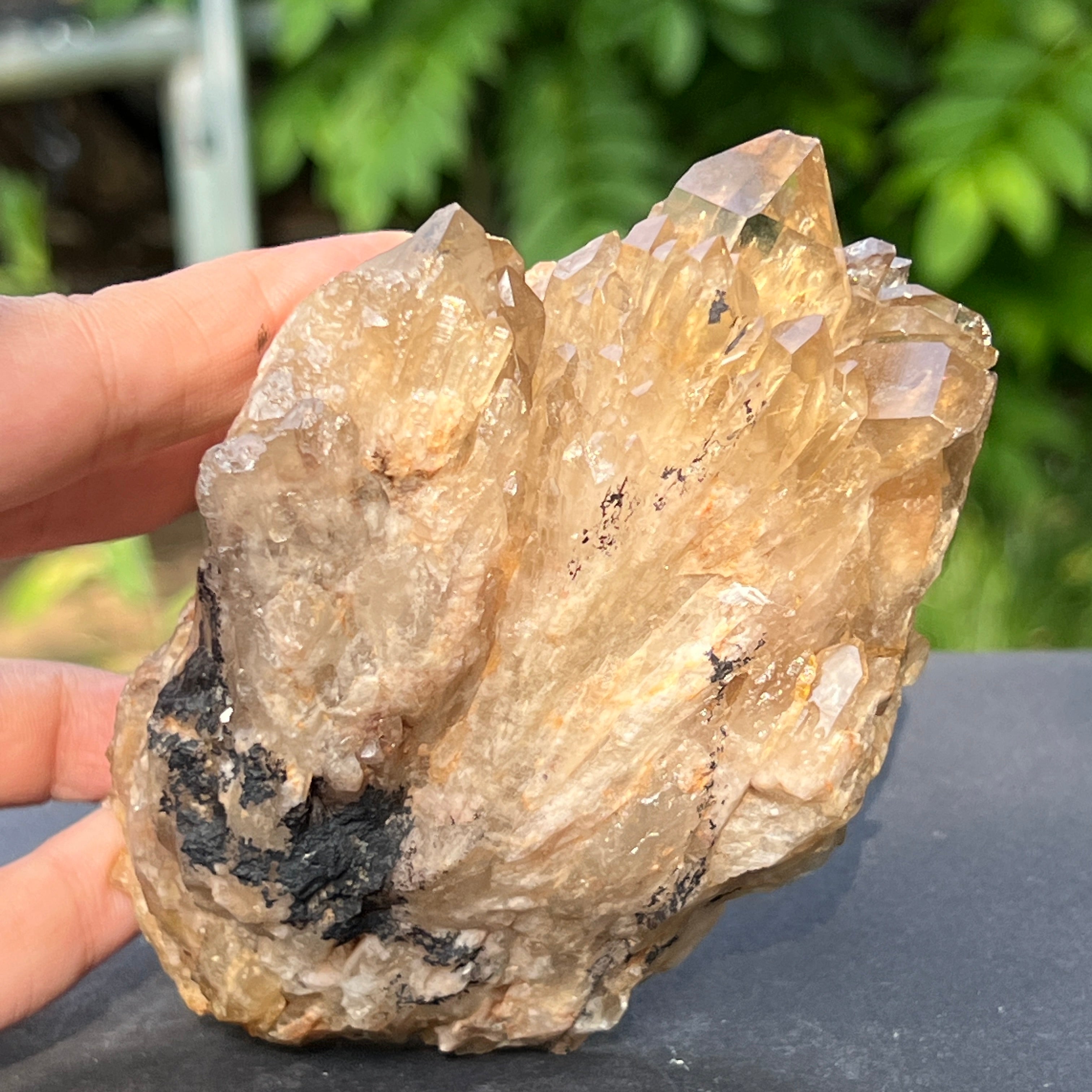 V hlbinách afrického kontinentu, tam, kde zem pulzuje prapôvodným životom, vznikol tento fajčiarsky citrín – vzácny a tajomný kameň vyťažený z bohatých pôd Konga. So svojimi teplými odtieňmi, ktoré sa pohybujú medzi zlatistožltou a jemnými dymovými tieňmi, tento prírodný exemplár nesie odtlačok času a pomalých premien Zeme.