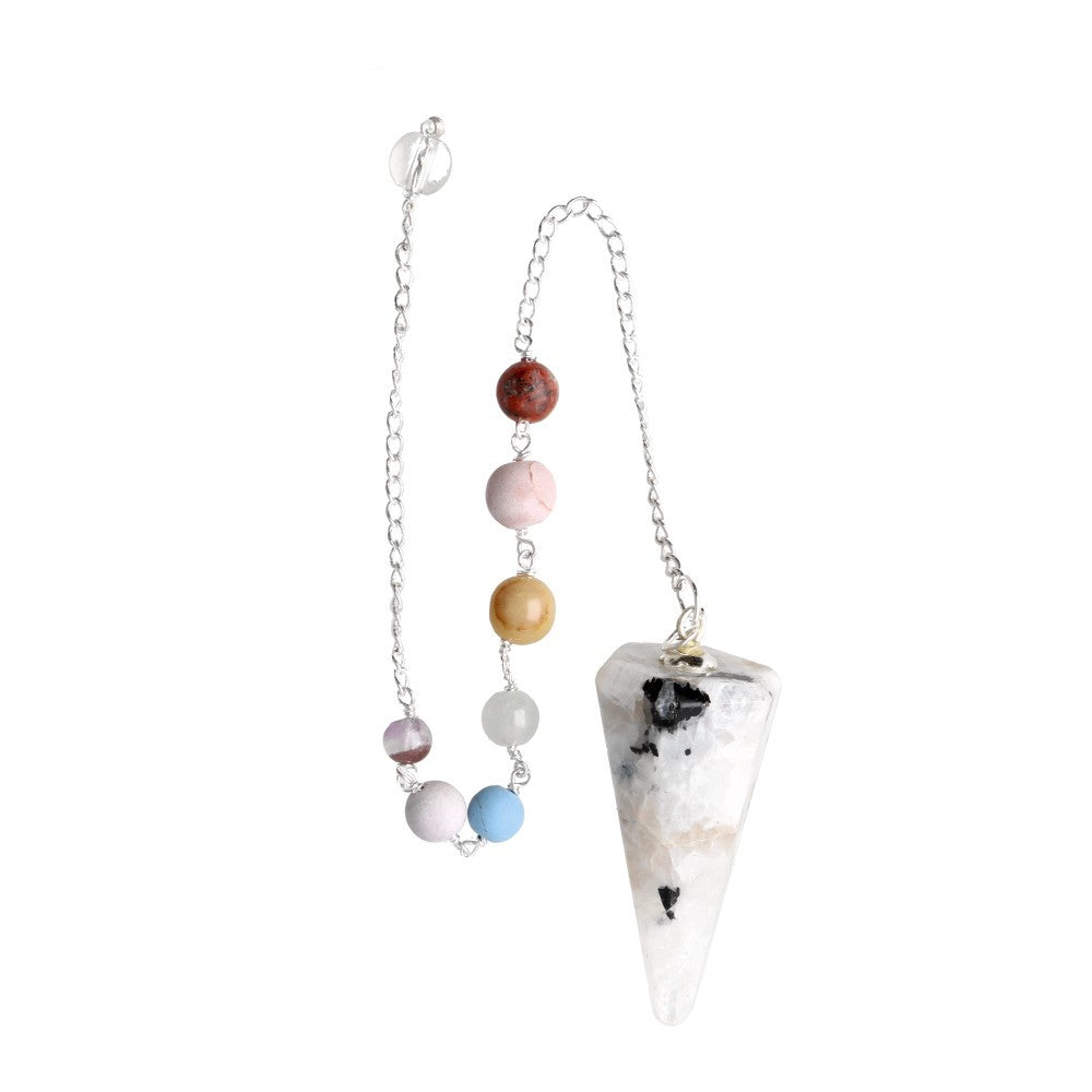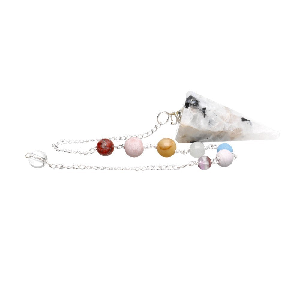 Descriere - Kyvadlo mesačného kameňa so šnúrkou, 7 čakier a kryštálovou guľou