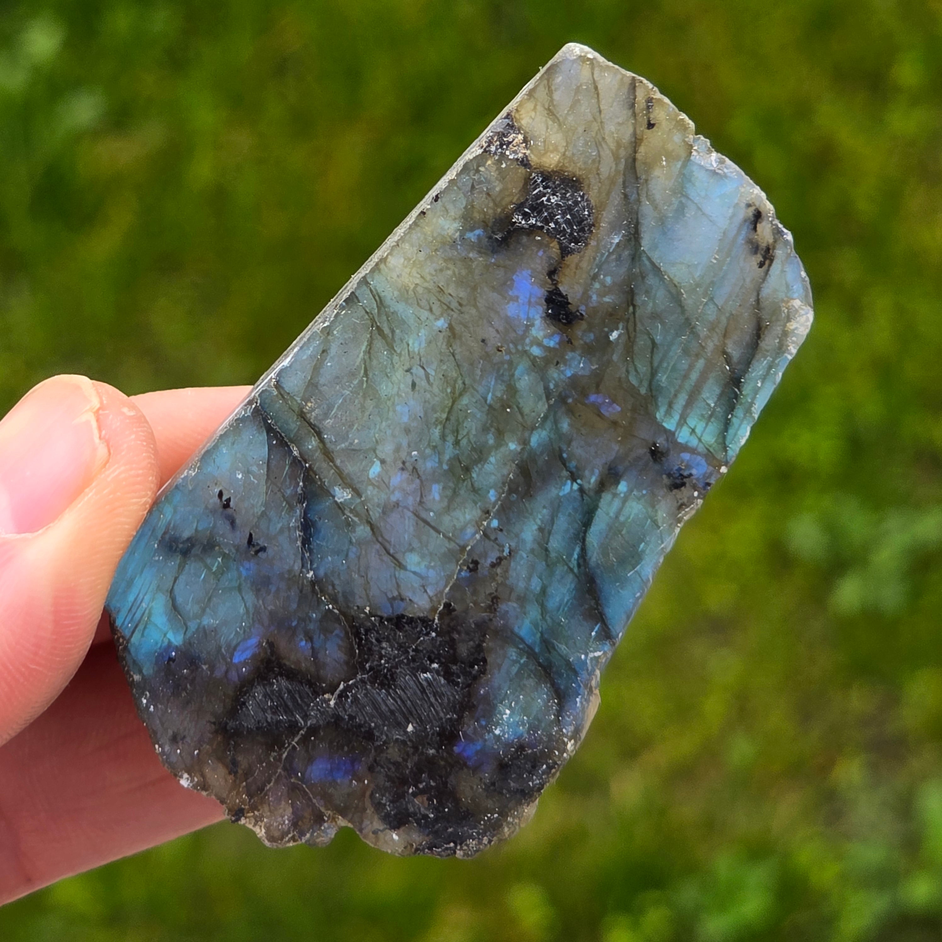 Popis - Labradorit hrubý kameň leštený na jednej strane m14