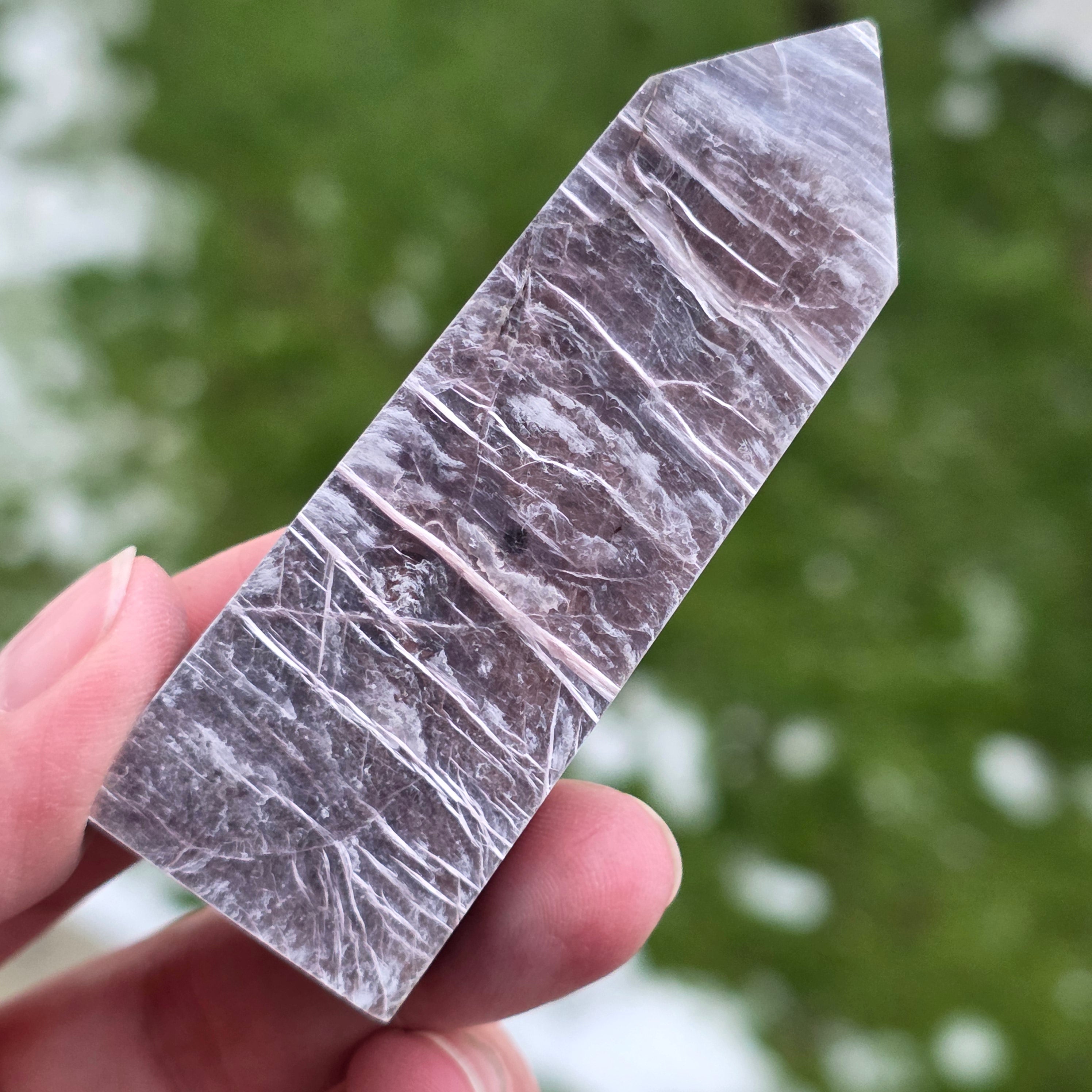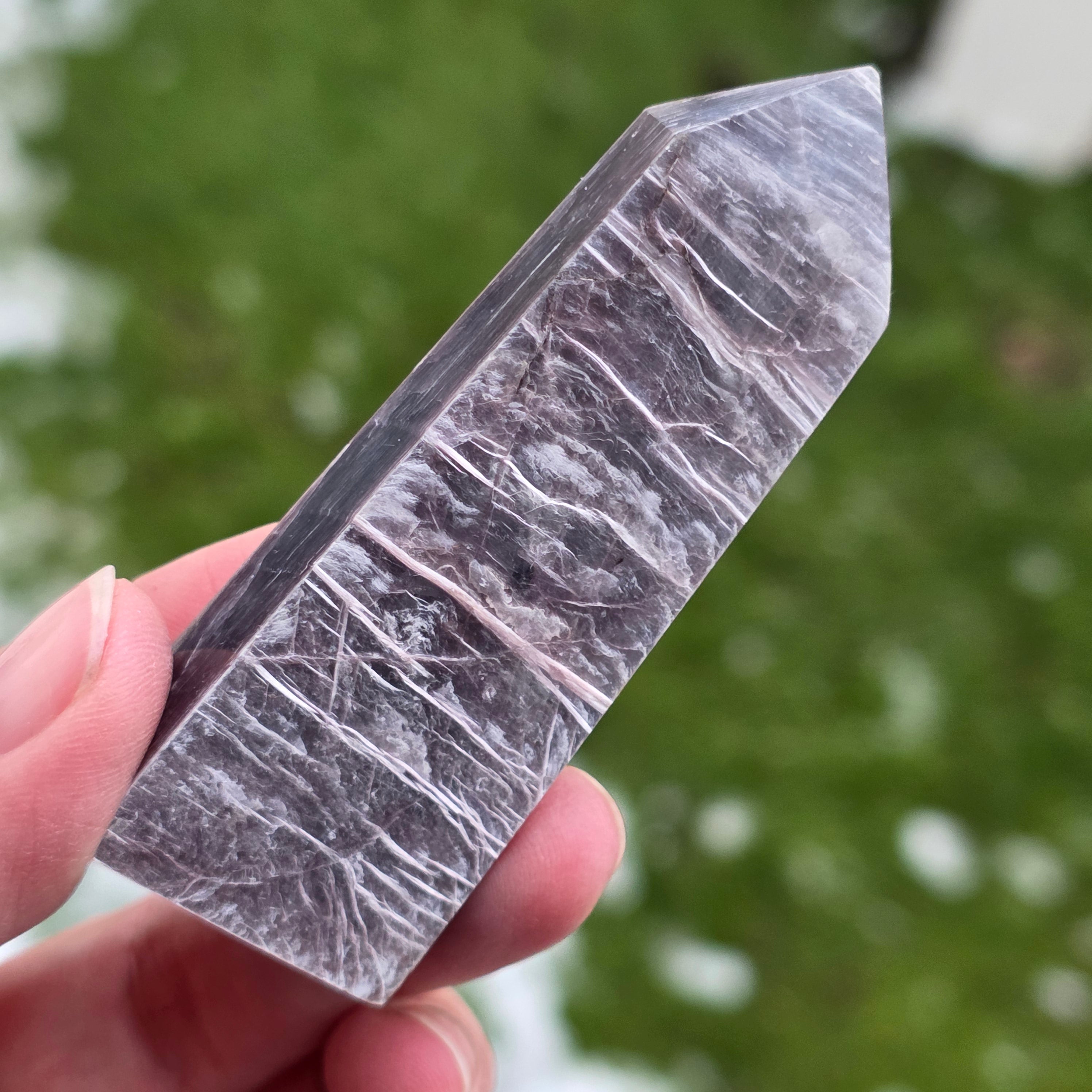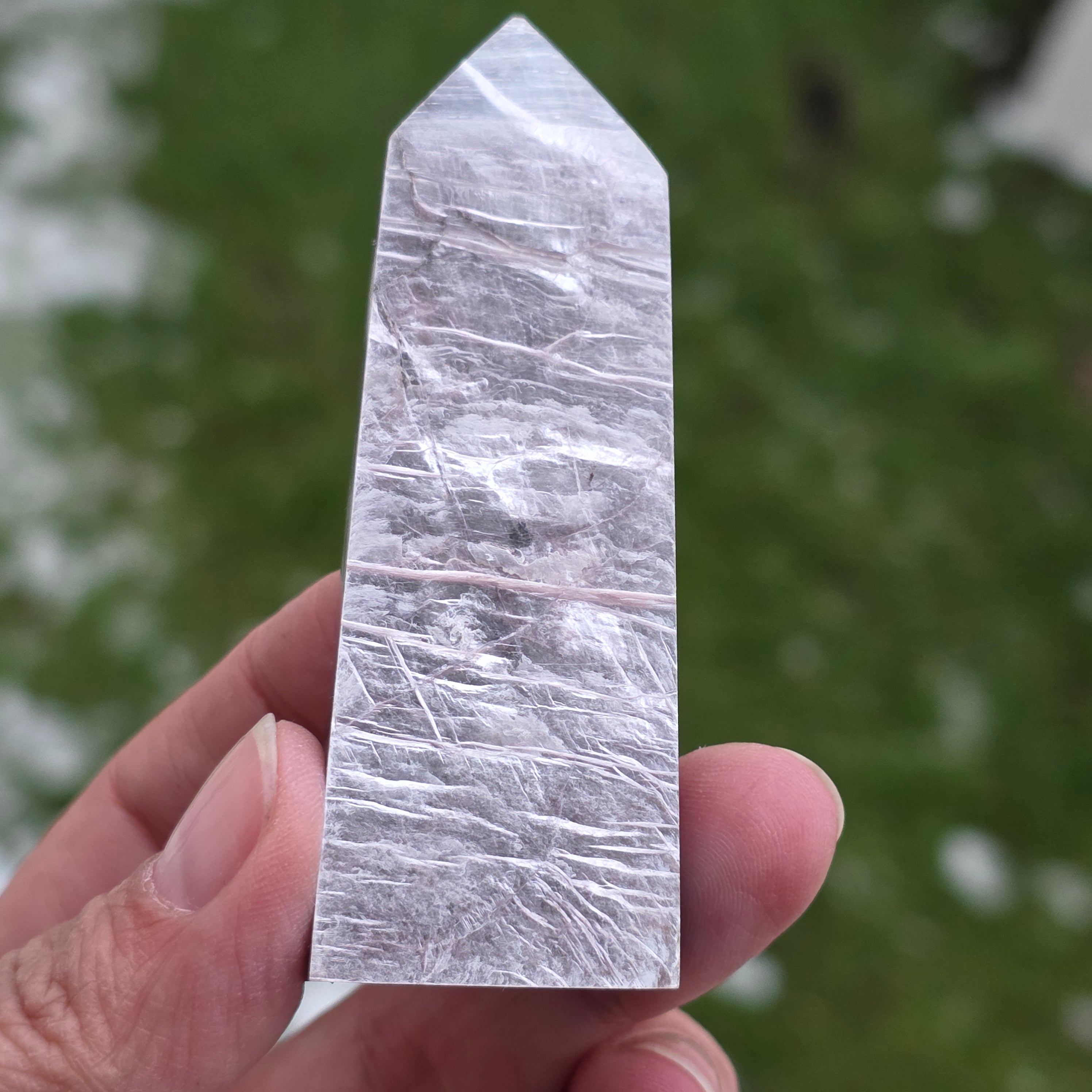 Tento obelisk z prírodného lepidolitu, s lesklou povrchovou úpravou, je to jemný a hlboko upokojujúci kúsok, vhodný do priestorov na relaxáciu, meditáciu alebo na držanie blízko v obdobiach emočného stresu. Lepidolit je známy svojím spojením s upokojovaním mysle, vyvážením emócií a podporou procesov uvoľňovania nahromadeného napätia. Tvar obelisku pomáha smerovať energiu harmonickým spôsobom, čím sa tento kúsok mení na jemnú podporu vnútorného jasného vnímania, odpočinku a emocionálnej stability.