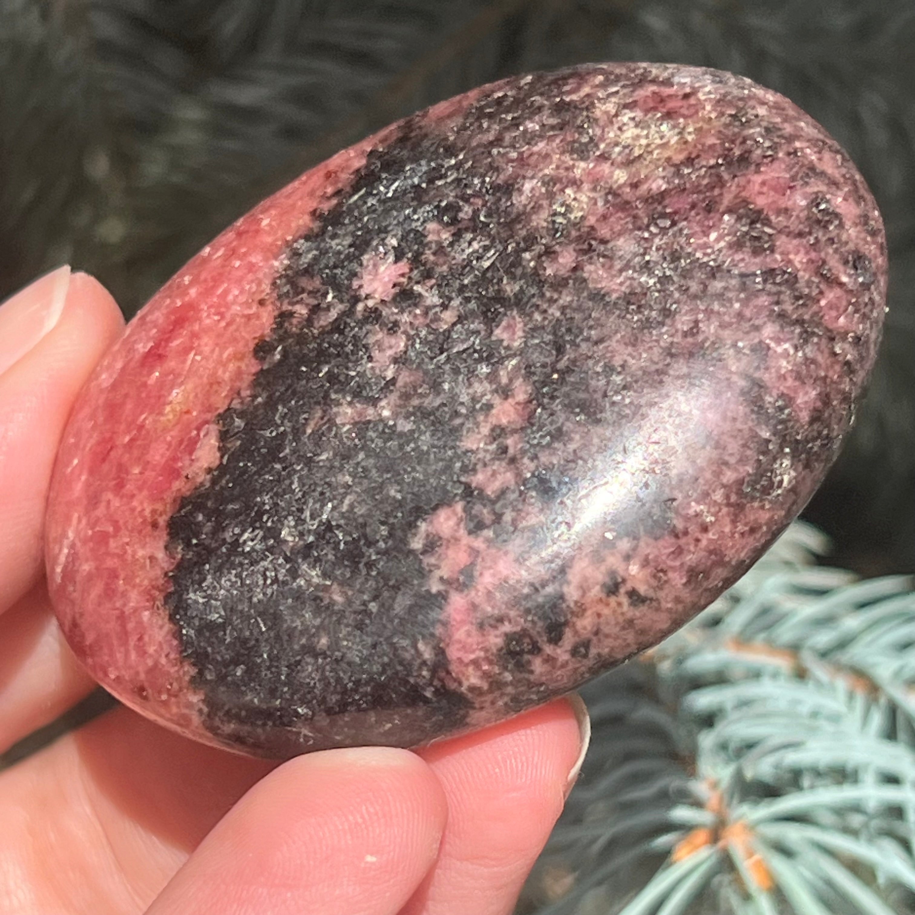 Popis - Madagaskarský rodonitový palmový kameň model 9