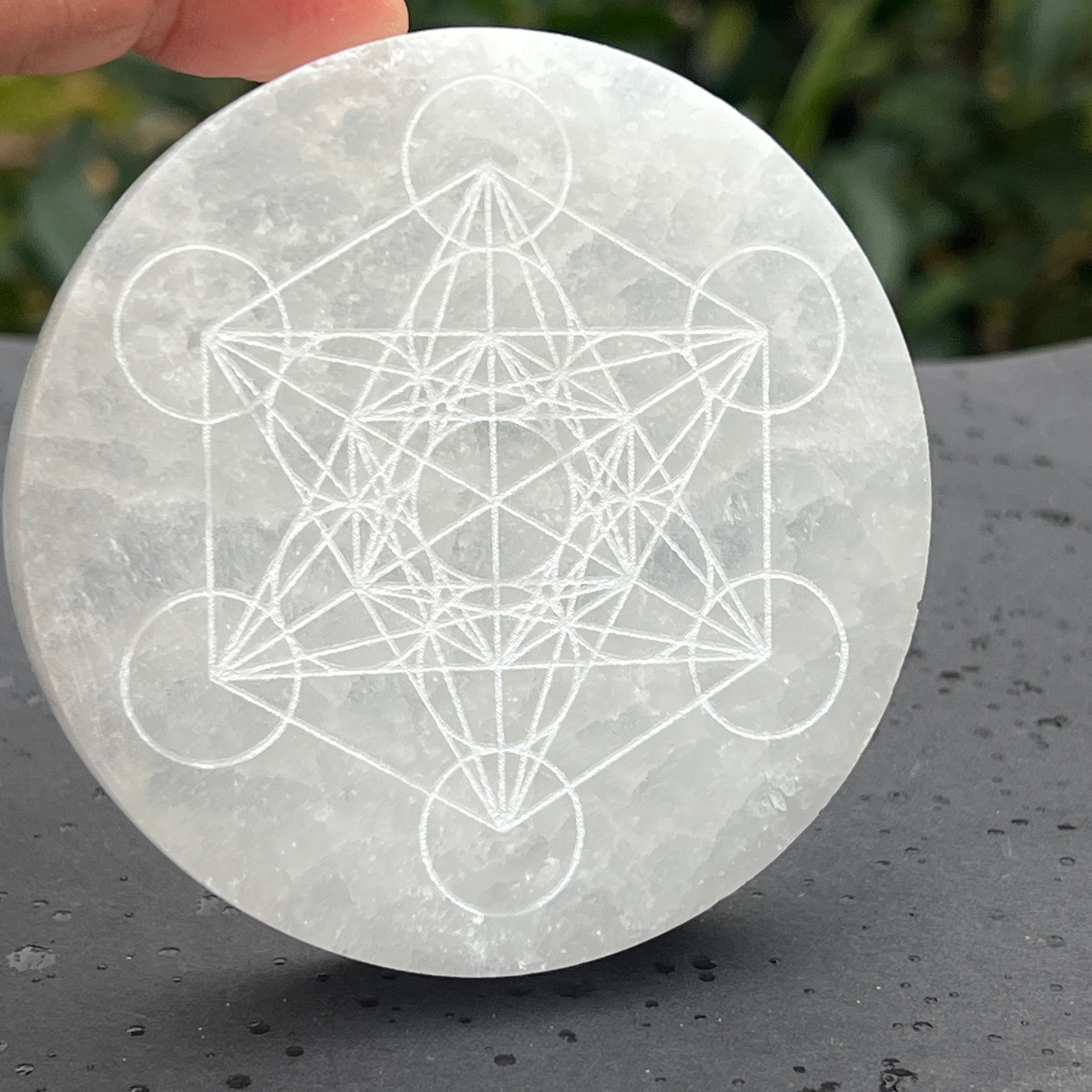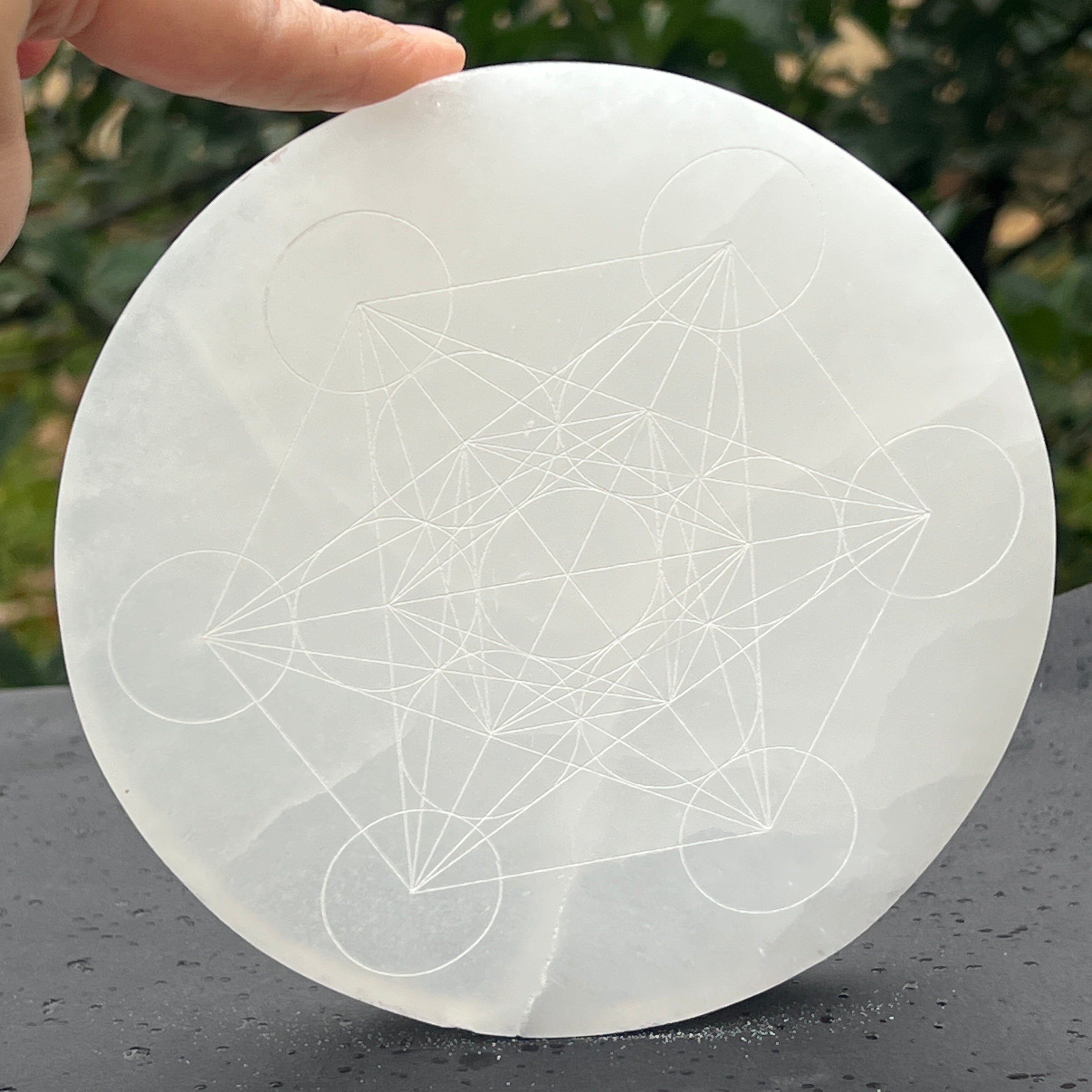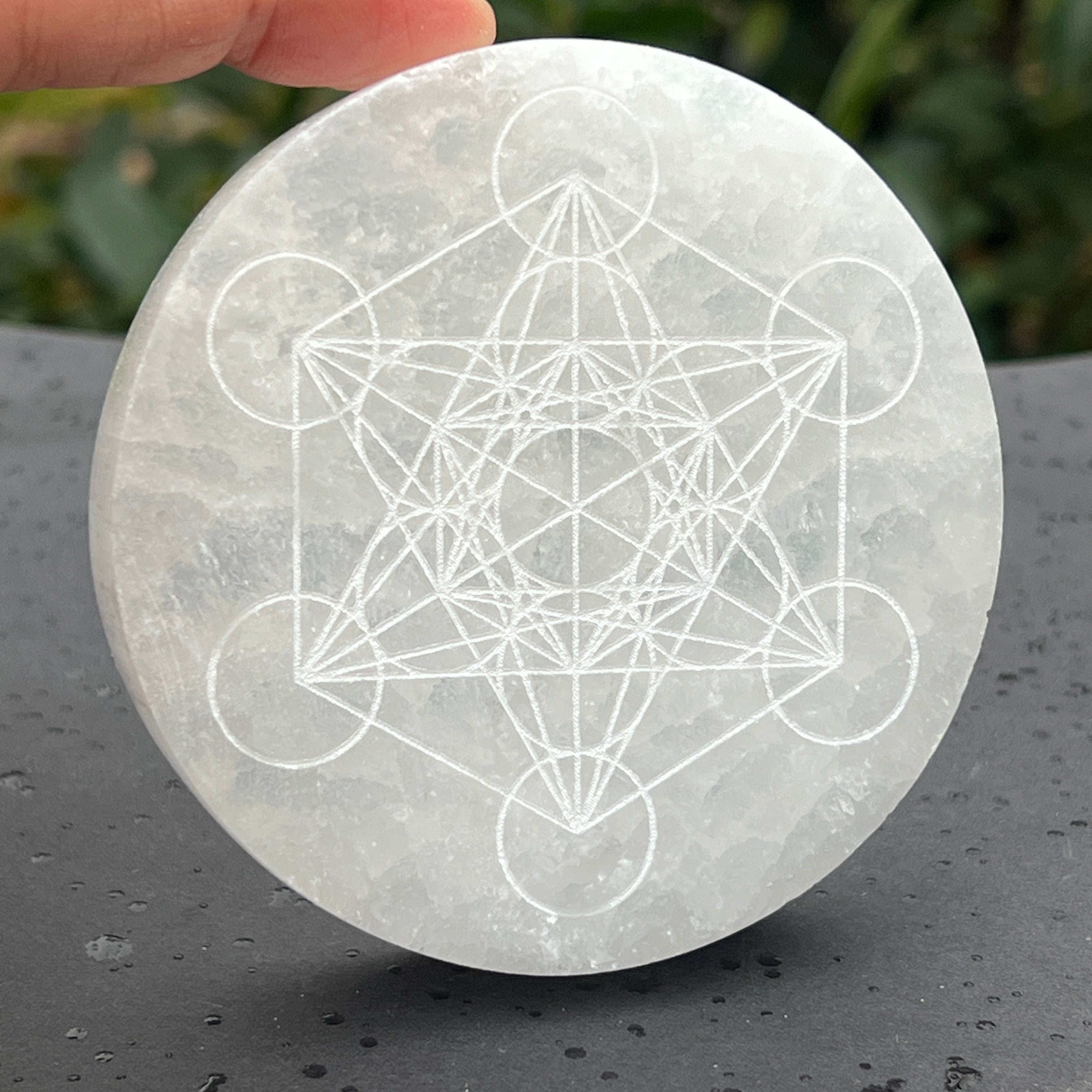 Descriere - Metatron Selenit Disk 8, 10, 14 cm, kryštálová mriežka