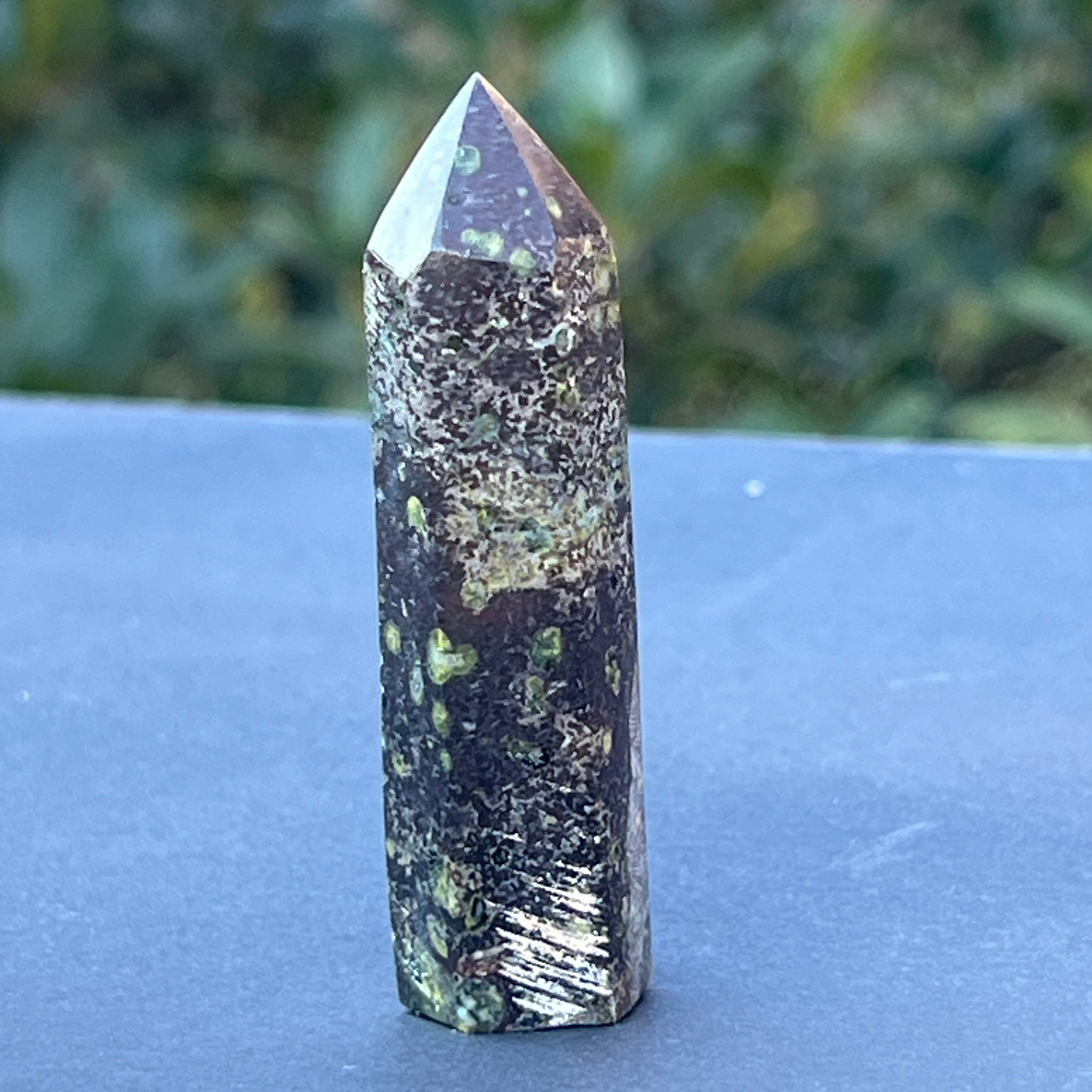 Mini obelisk krv draka kameň (epidót & piemontit) m2