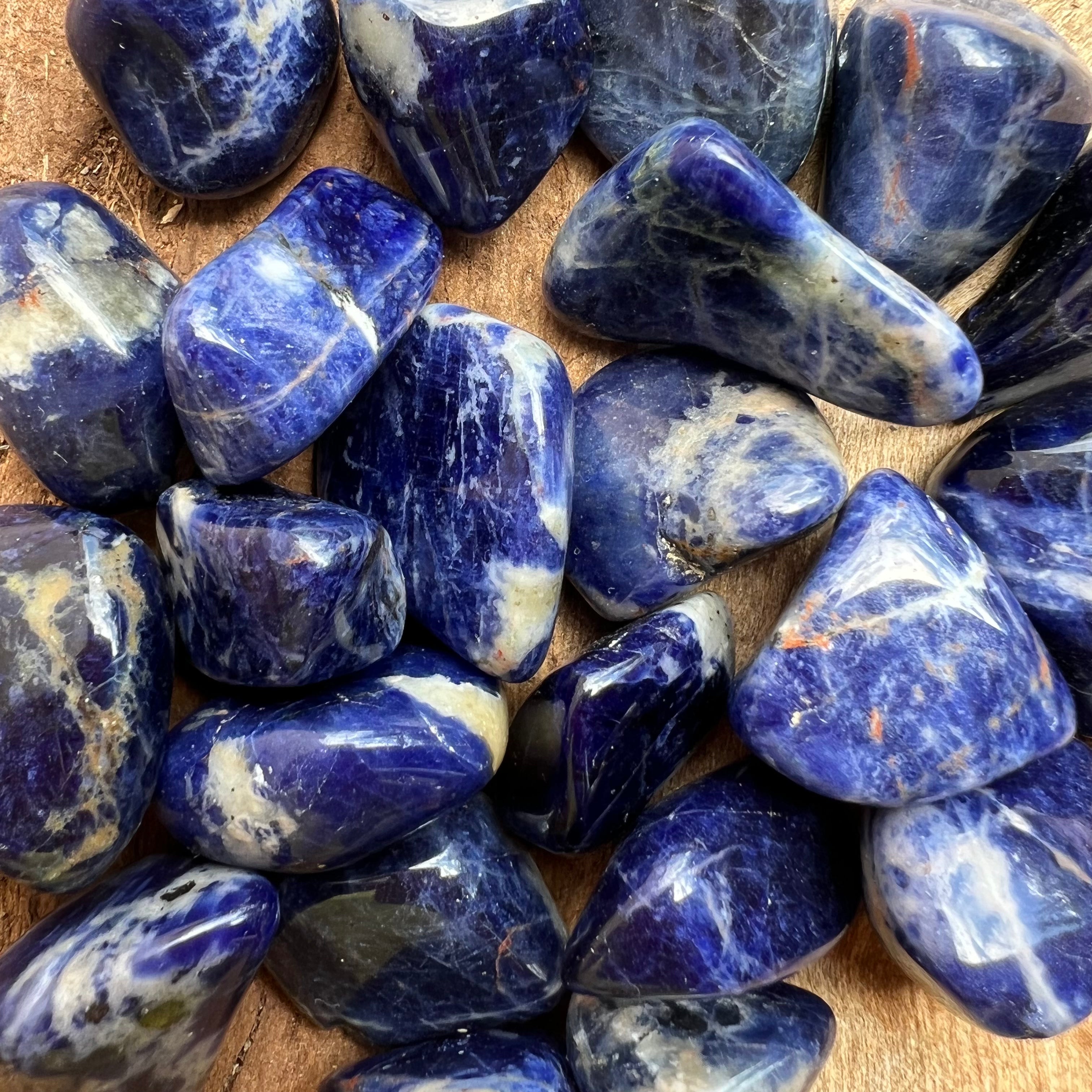 Mini sodalit valcovaný kameň, rozmery od 2,5 do 4 cm. Cena sa líši podľa veľkosti kameňa, prosím, vyberte požadovanú veľkosť. Cena je za jeden kus.