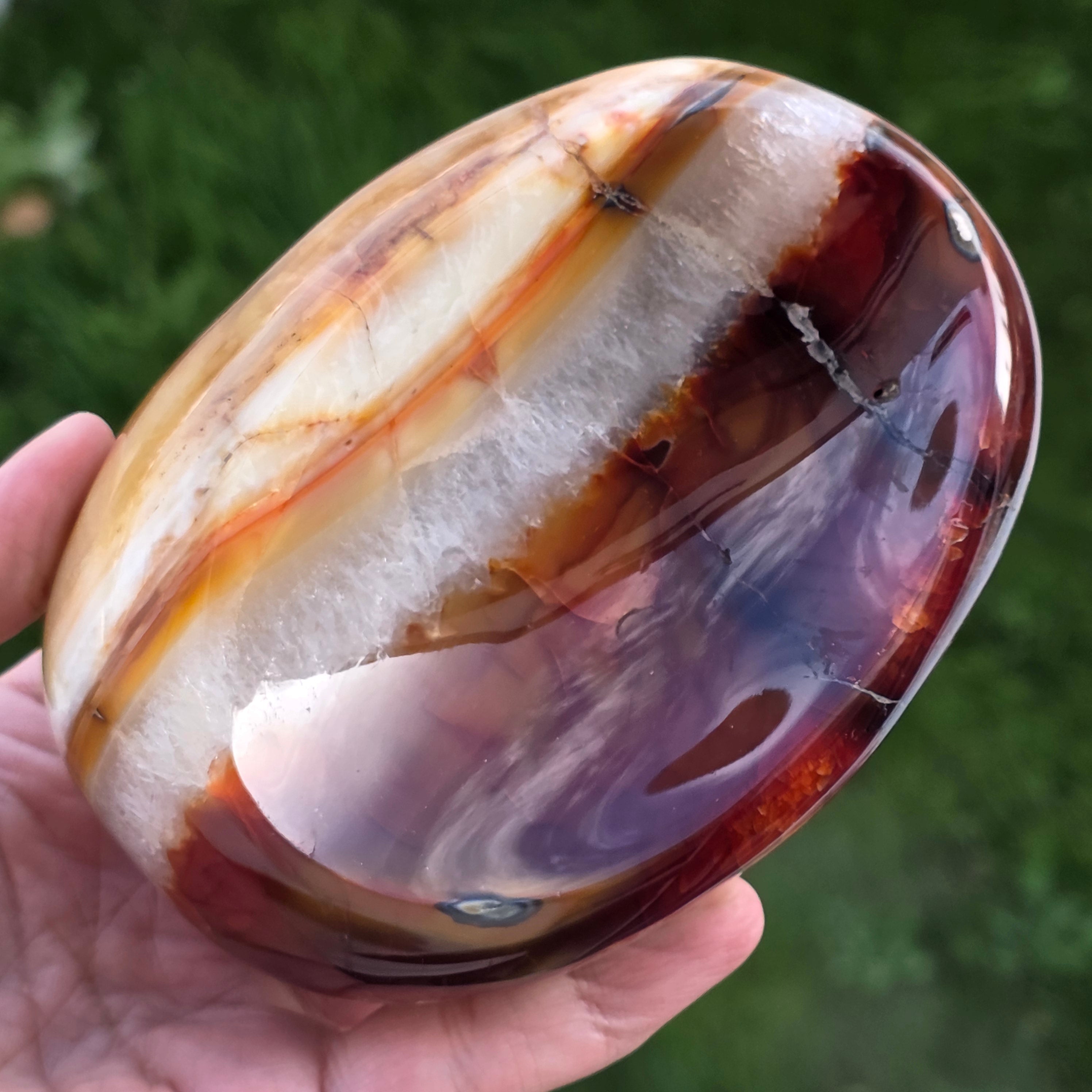 Miska z prírodného unikátneho karneoluz Madagaskaru, starostlivo vyrezávaná, aby zvýraznila prirodzenú krásu kameňa.