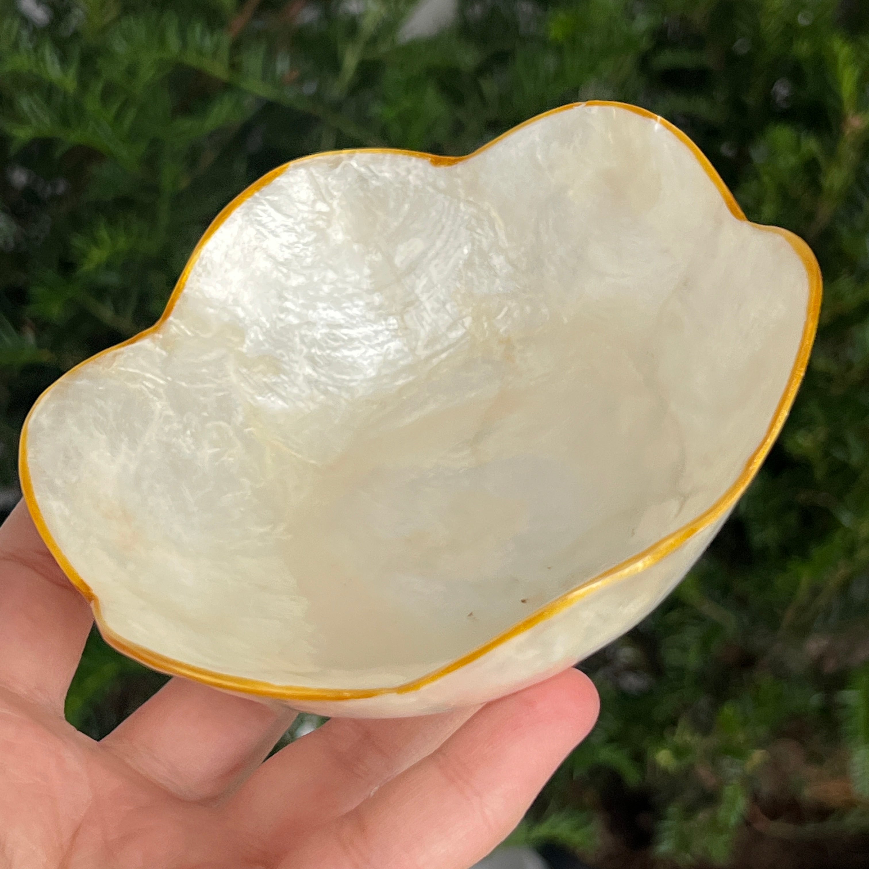 Miska z abalone mušle je prírodný dekoratívny kúsok, ktorý spája teplo zeme so žiariacim leskom mora. Perleťové odlesky pripomínajú hĺbky oceánu a prinášajú elegantný dotyk do každého priestoru. Ideálne pre zberateľov, na zdobenie osobného oltára alebo ako stojan na kryštály a šperky.