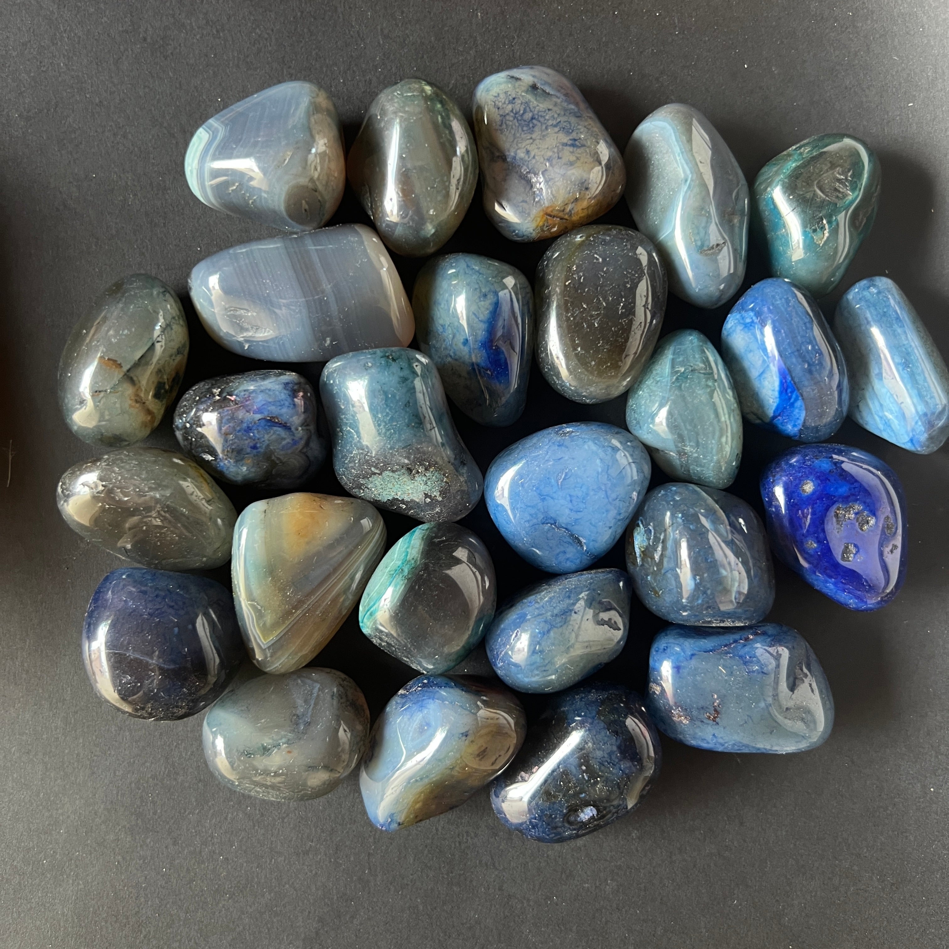 Modrý achát, malý valcovaný kameň
