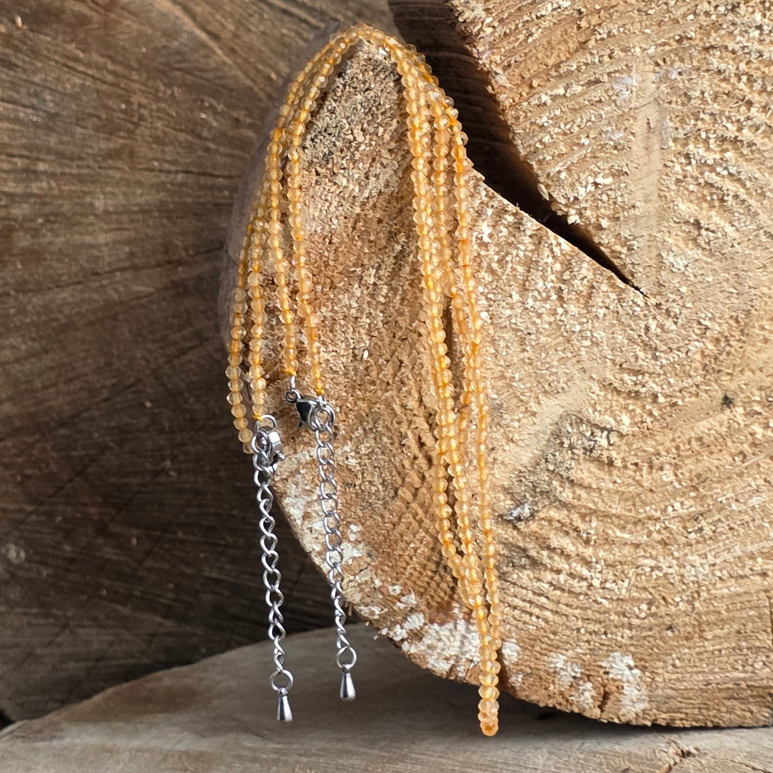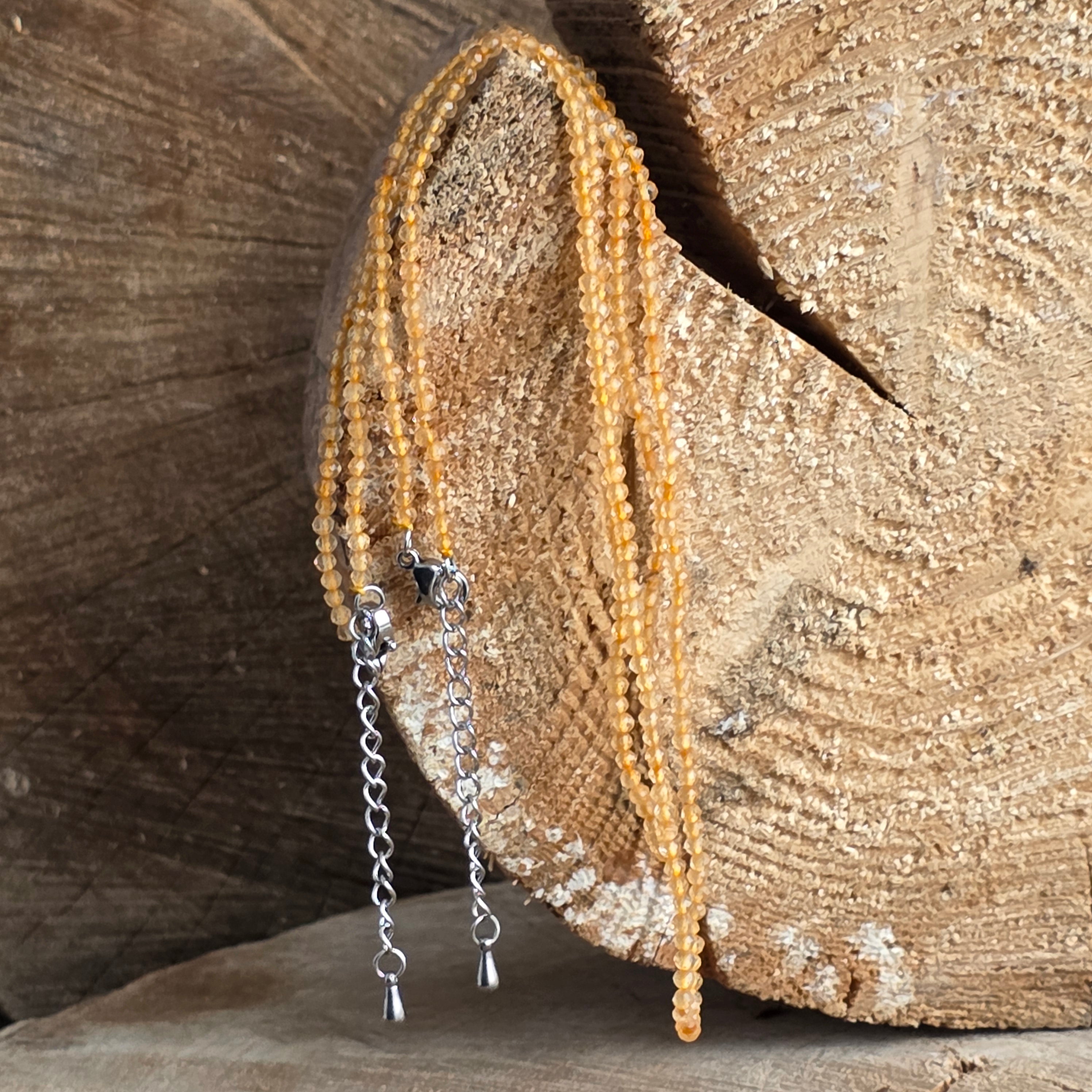 Náhrdelník Citrín guľôčky 2 mm, veľkosť: 38 + 5 cm (predlžovací reťaz)
