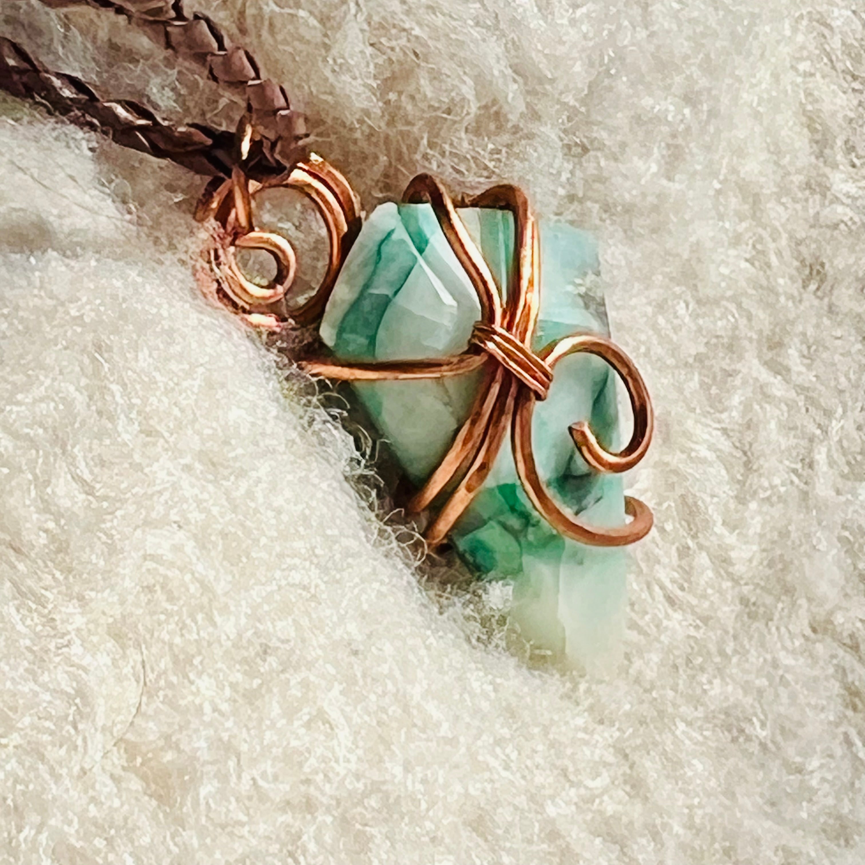 Náhrdelník s príveskom vyrobený z medeného/umeleckého drôtu m1