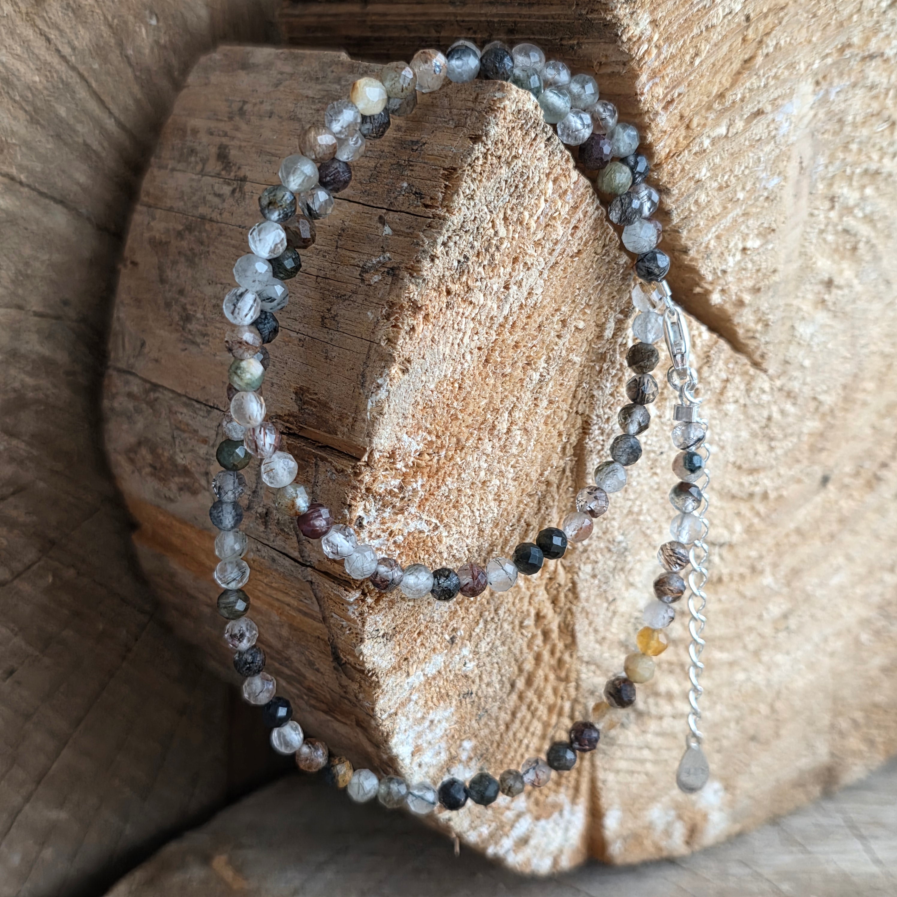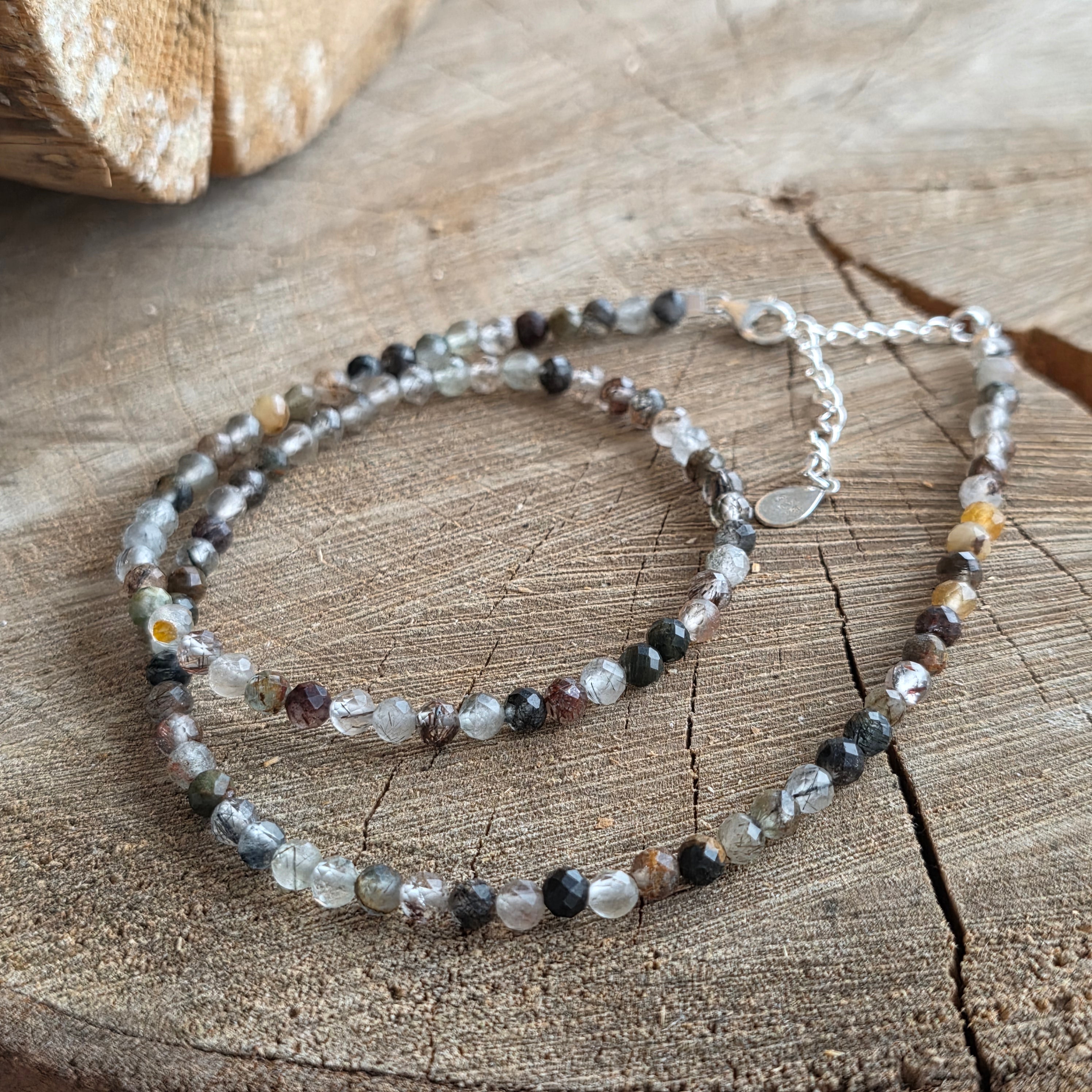 Jemný a svetlý náhrdelník vyrobený z 4 mm brúsených guľôčok tibetského kremeňa, ktoré zachytávajú a odrážajú svetlo s takmer éterickou jemnosťou. Priehľadnosť kameňa, prerušovaná jemnými inklúziami a nenápadnými odrazmi, vytvára dojem živej čistoty, akoby každý prvok uchovával kúsok neba alebo horského pokoja. Dizajn je minimalistický, ale hlboký, zdôrazňujúc prirodzenú krásu kremeňa bez akýchkoľvek artifícií.