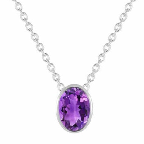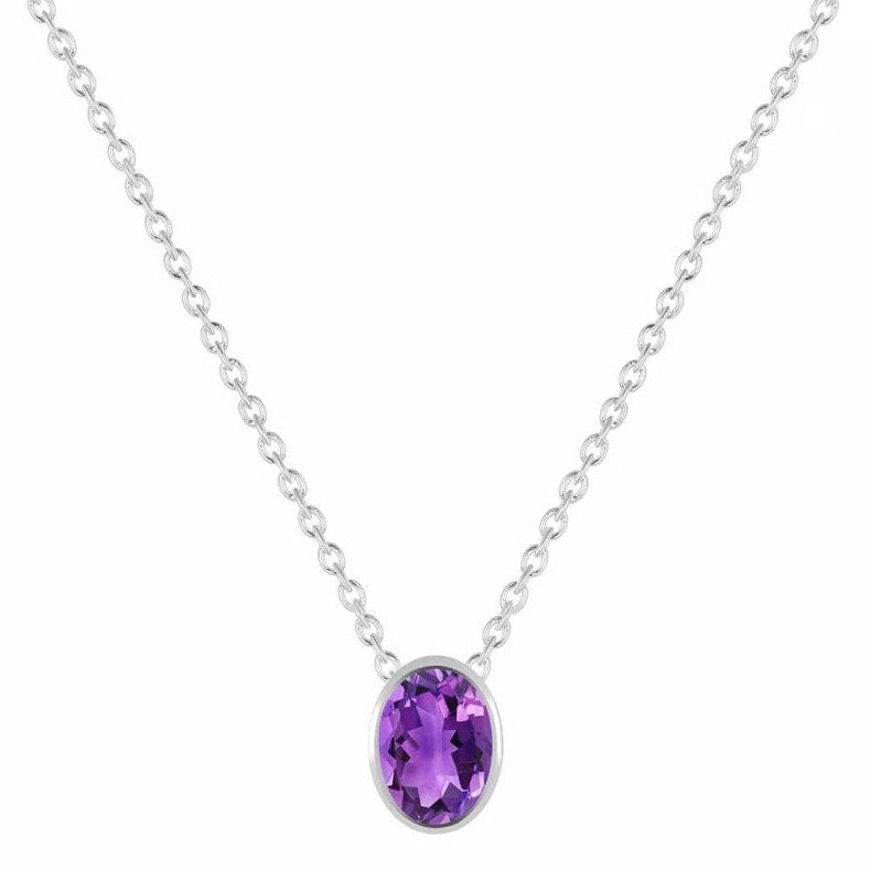 Recenzie - Náhrdelník z ametystu v striebre, oválny 8 mm