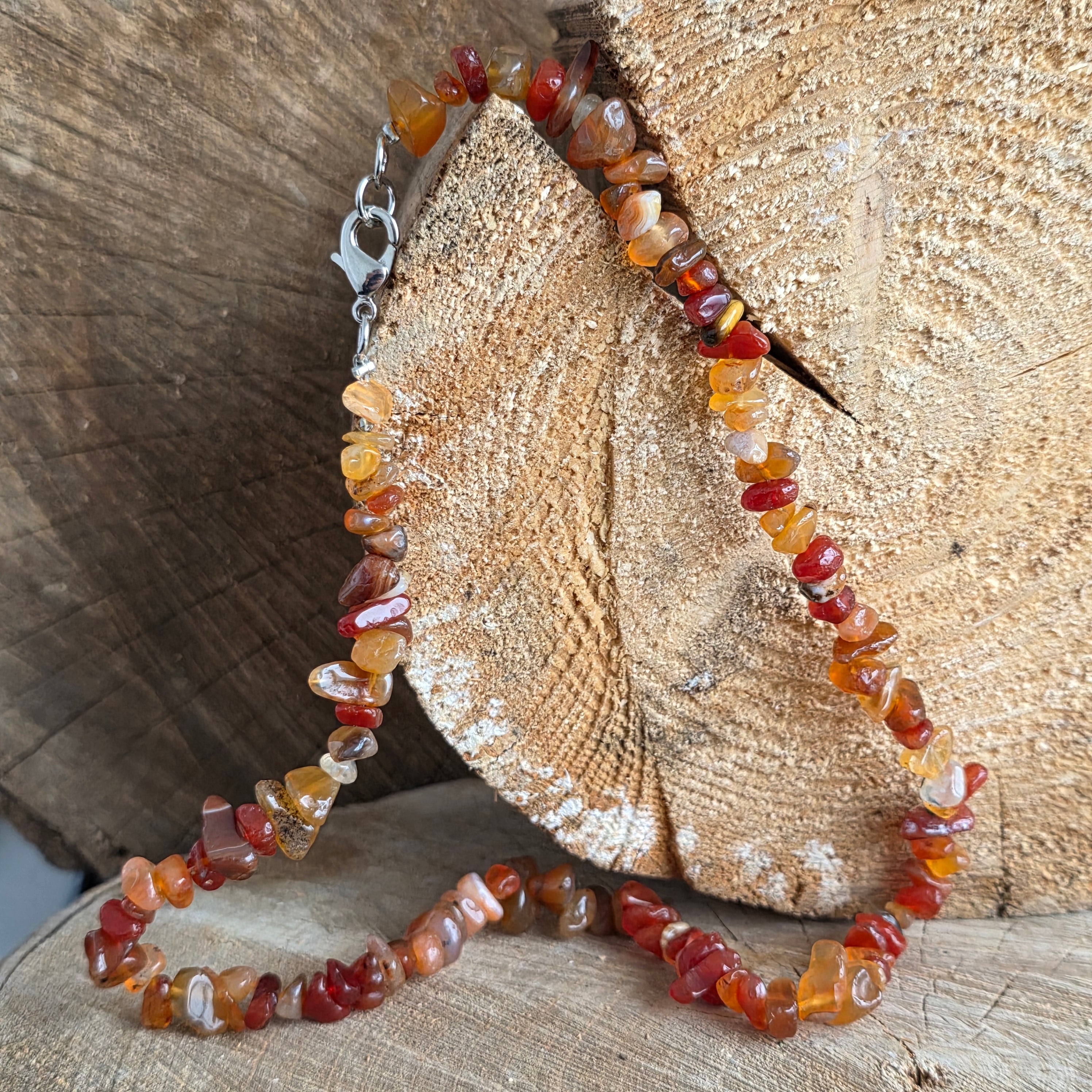 • Kameň: prírodný karneol (nerovnomerné, ručne brúsené štiepky)