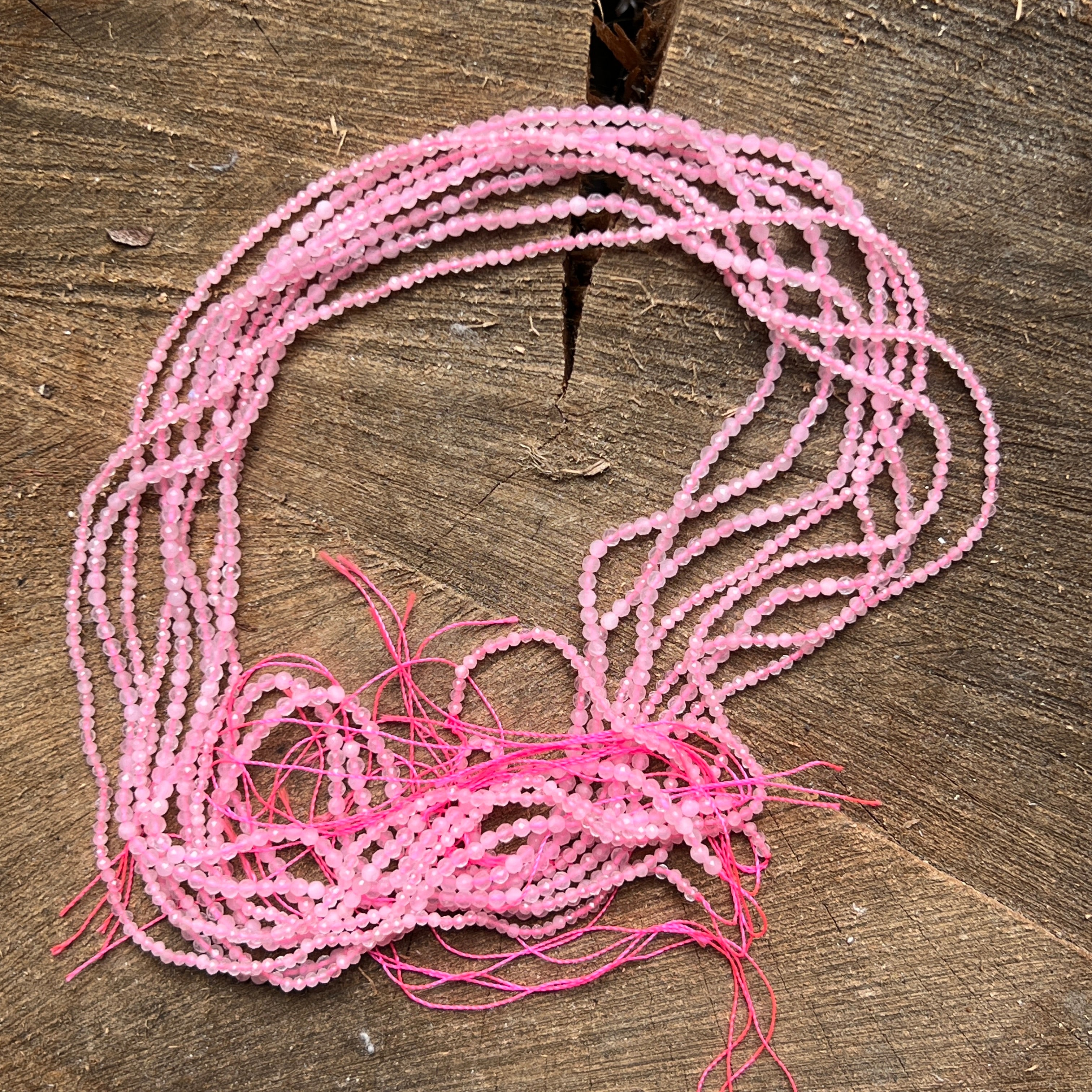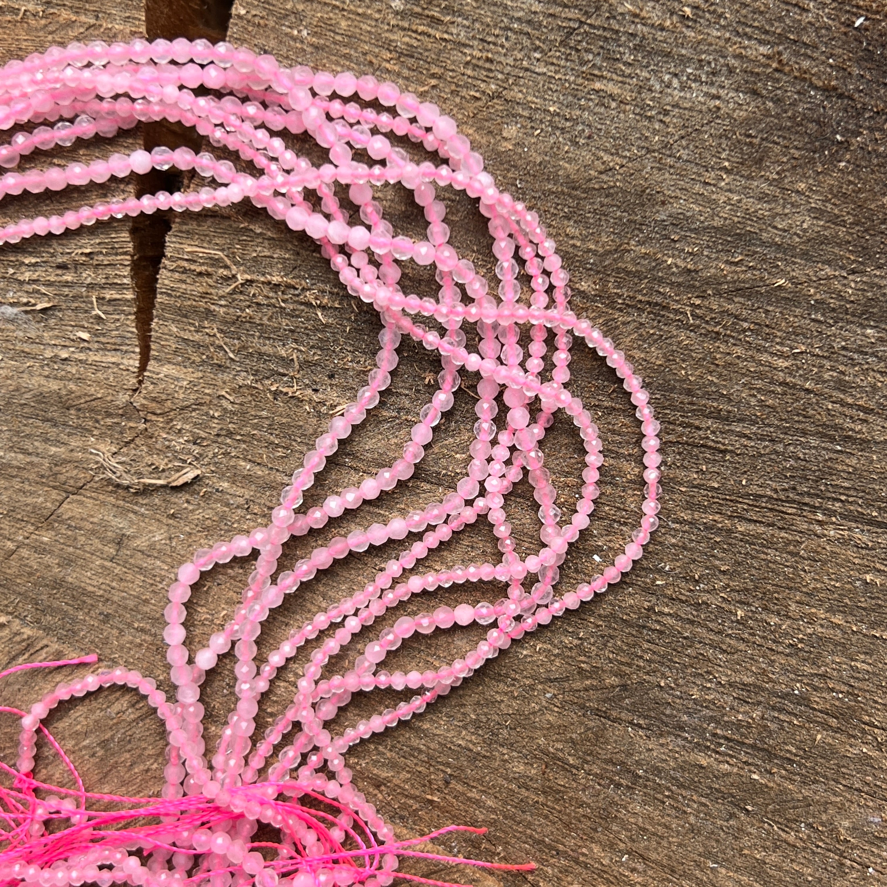 Náhrdelník z guličiek ružového kvarcu, zložený z prírodných guľatých korálok, ideálny na náhrdelníky, náramky alebo iné ručne vyrábané šperky.