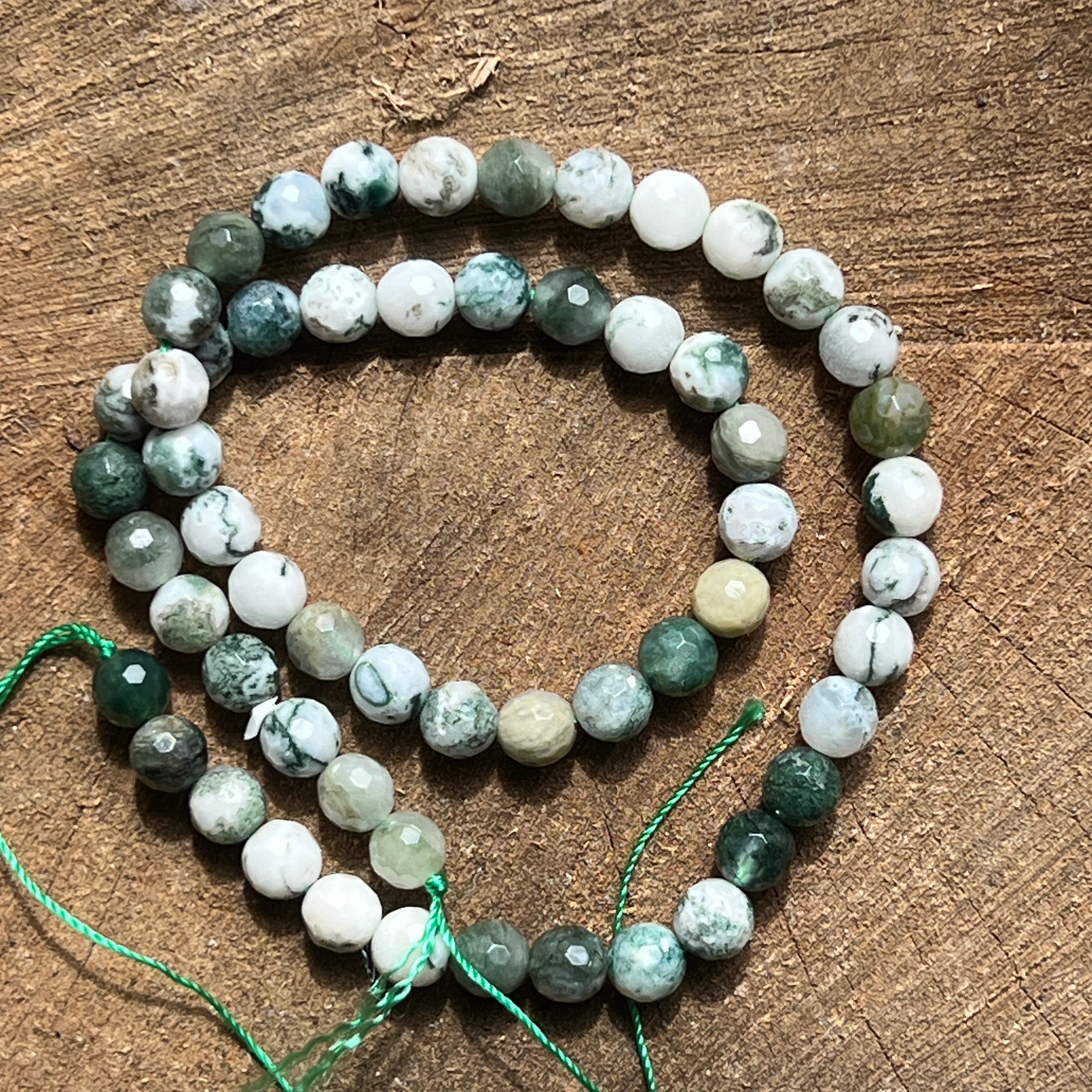 Náhrdelník z MACHOVÉHO ACHÁTU, zložený z prírodných fazetovaných gulôčok, ideálny na náhrdelníky, náramky alebo iné ručne vyrábané šperky.