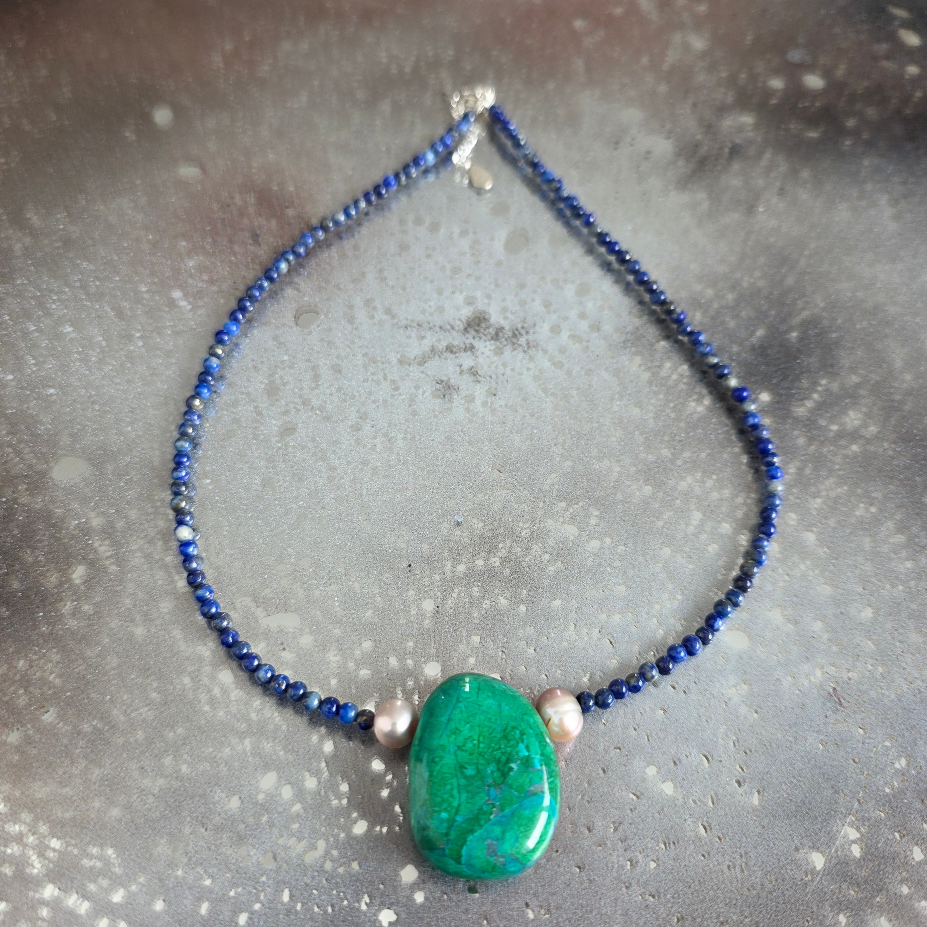 Náhrdelník z lapis lazuli, perál a howlitu Deep #99