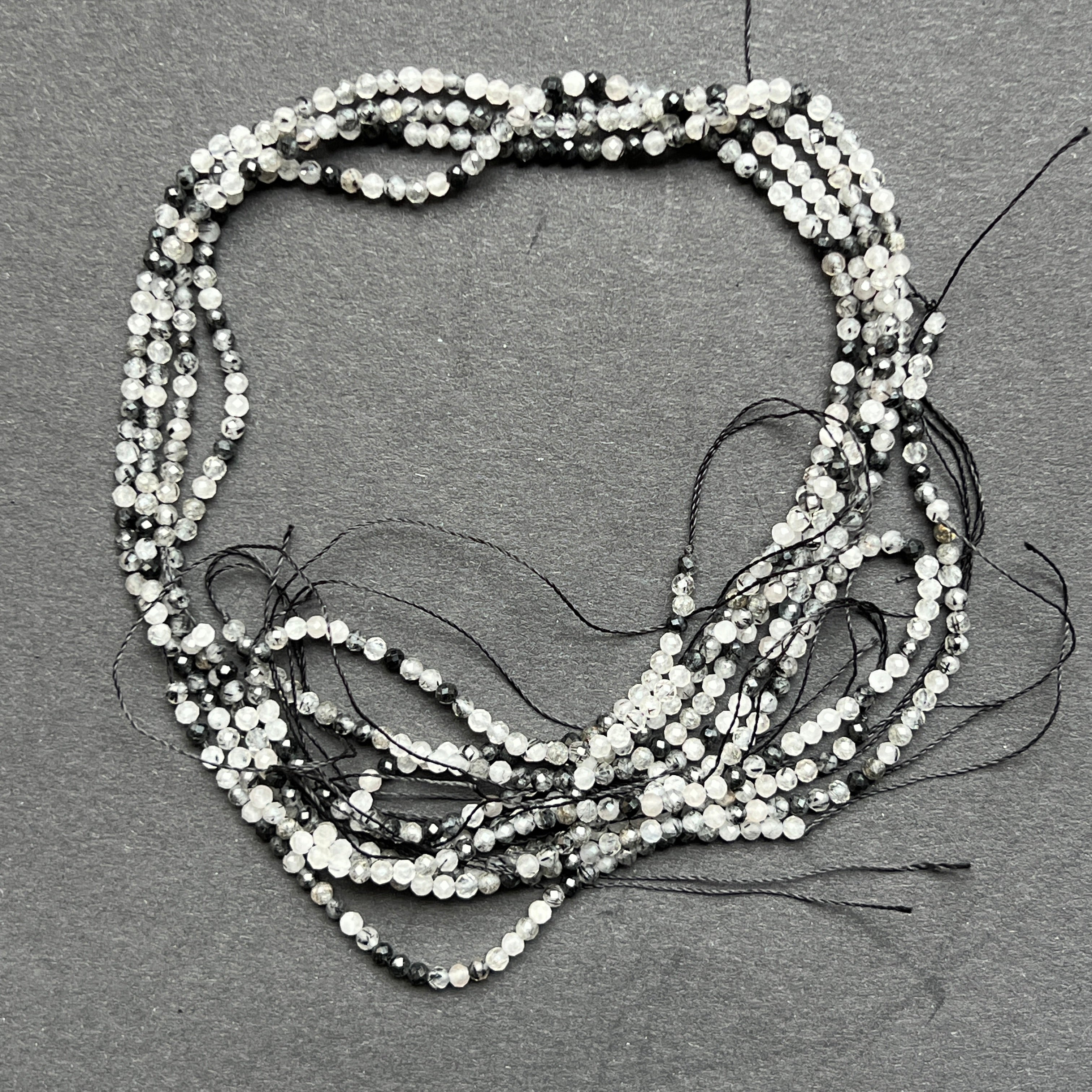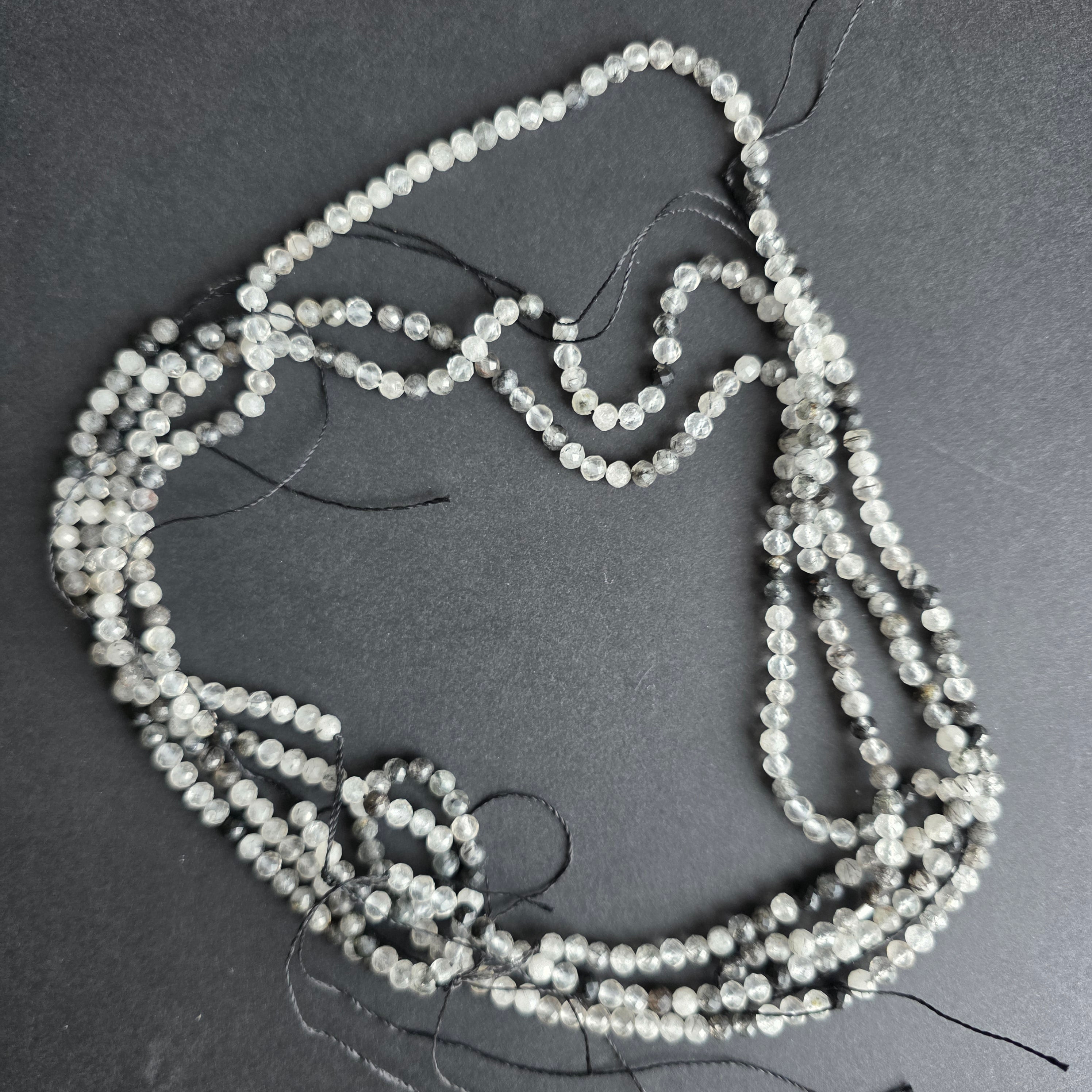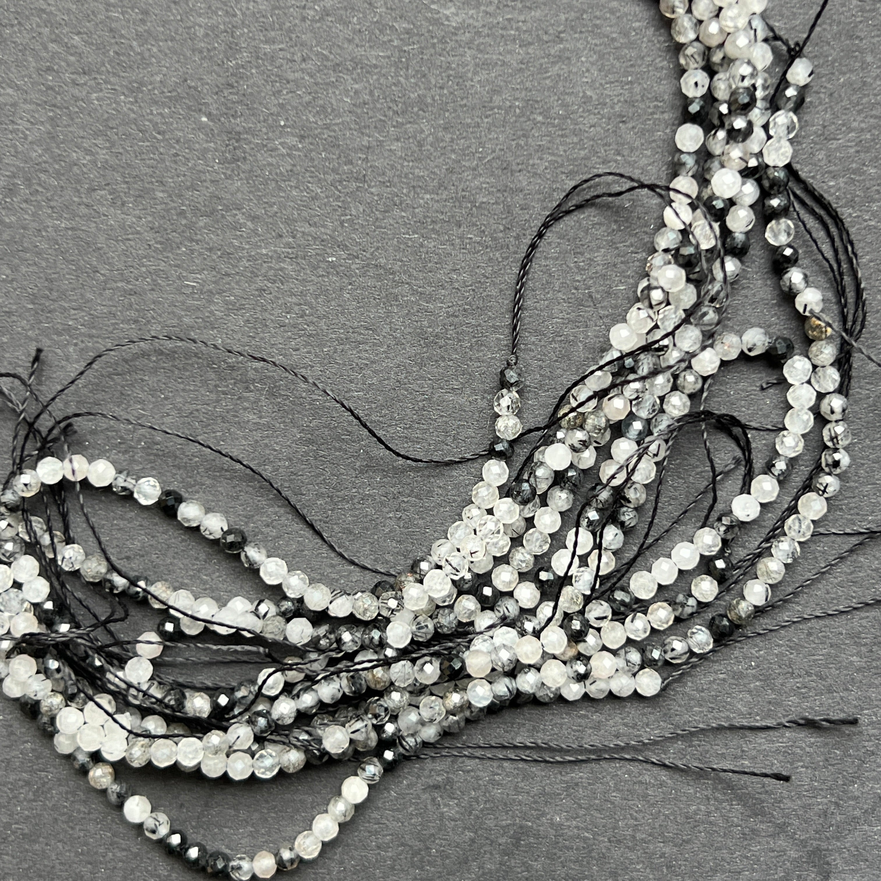 Náhrdelník z KVARCU S TURMALÍNOM, zložený z prírodných fazetovaných guľovitých korálok, ideálny na náhrdelníky, náramky alebo iné ručne vyrábané šperky.
