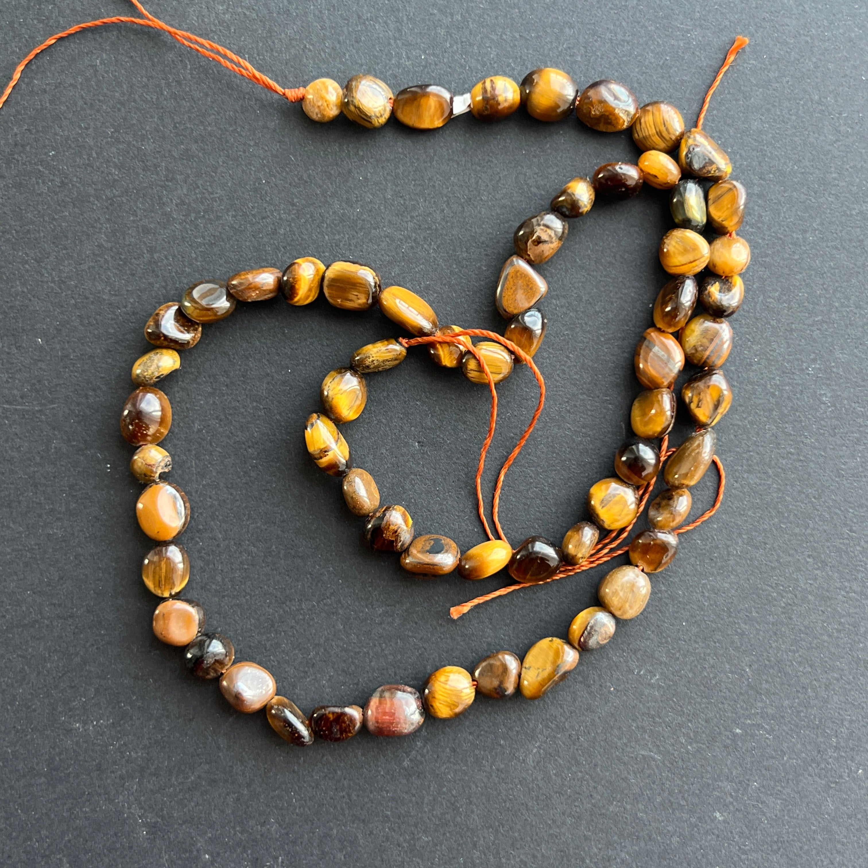 Náhrdelník z tigrieho oka, zložený z prírodných valcovaných surových kameňov, ideálny na náhrdelníky, náramky alebo iné ručne vyrábané šperky.