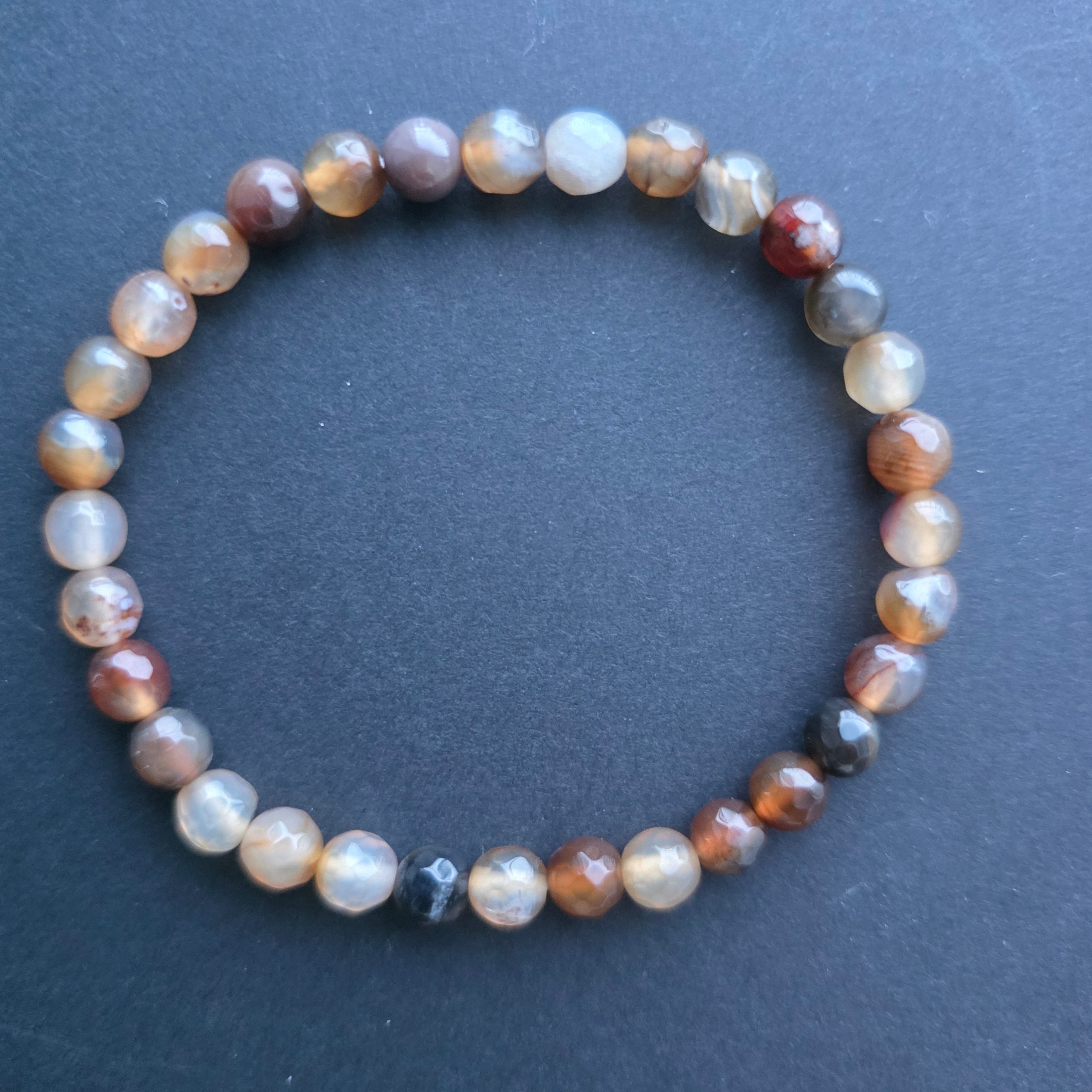 • Textúra: lesklý povrch, masívne korálky s prírodnými vzormi a pásmi špecifickými pre achát