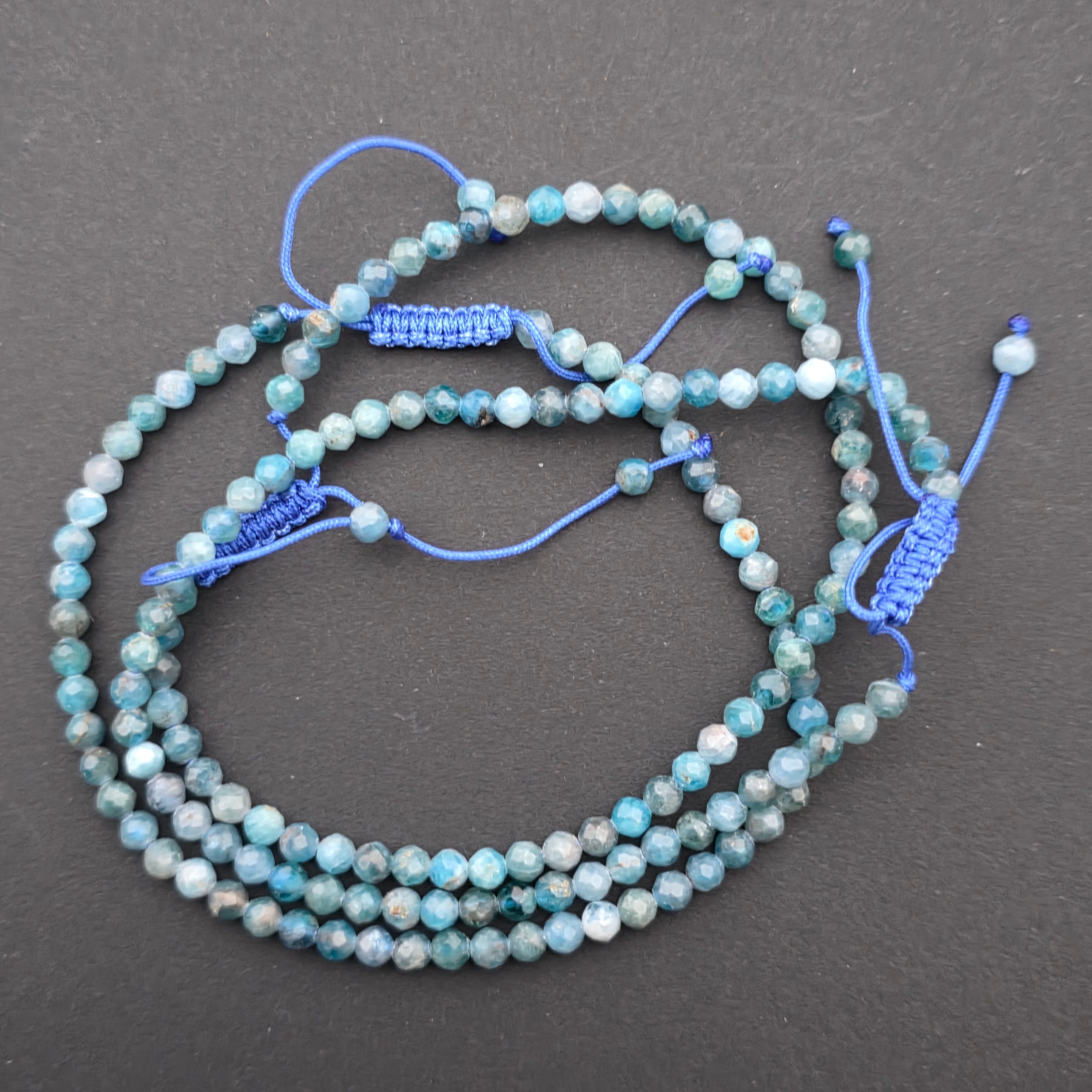 Náramok s fazetovaným apatitu 3 mm s nastaviteľným šnúrkou