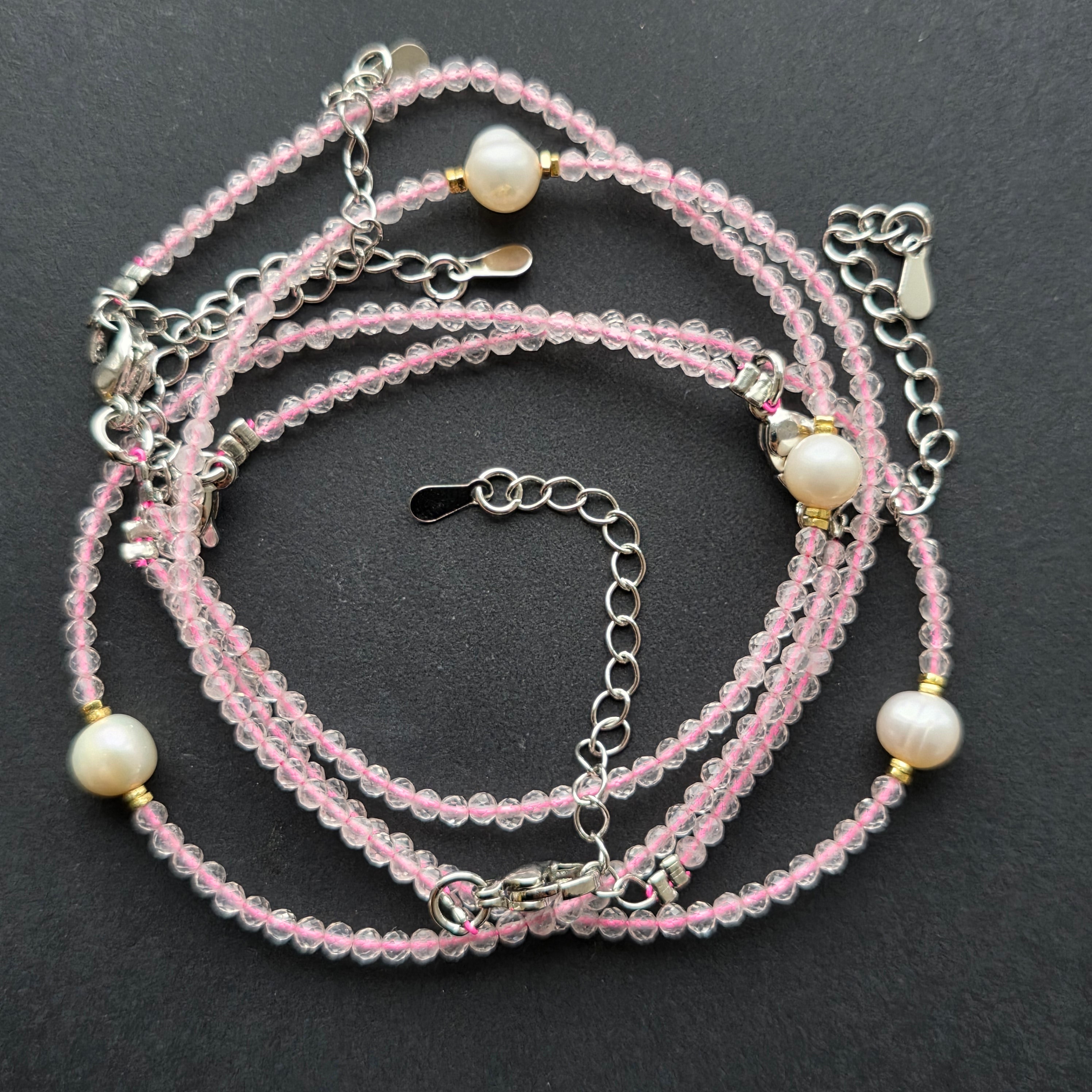• Kamene: brúsený prírodný ruženín 2 mm + prírodná perla