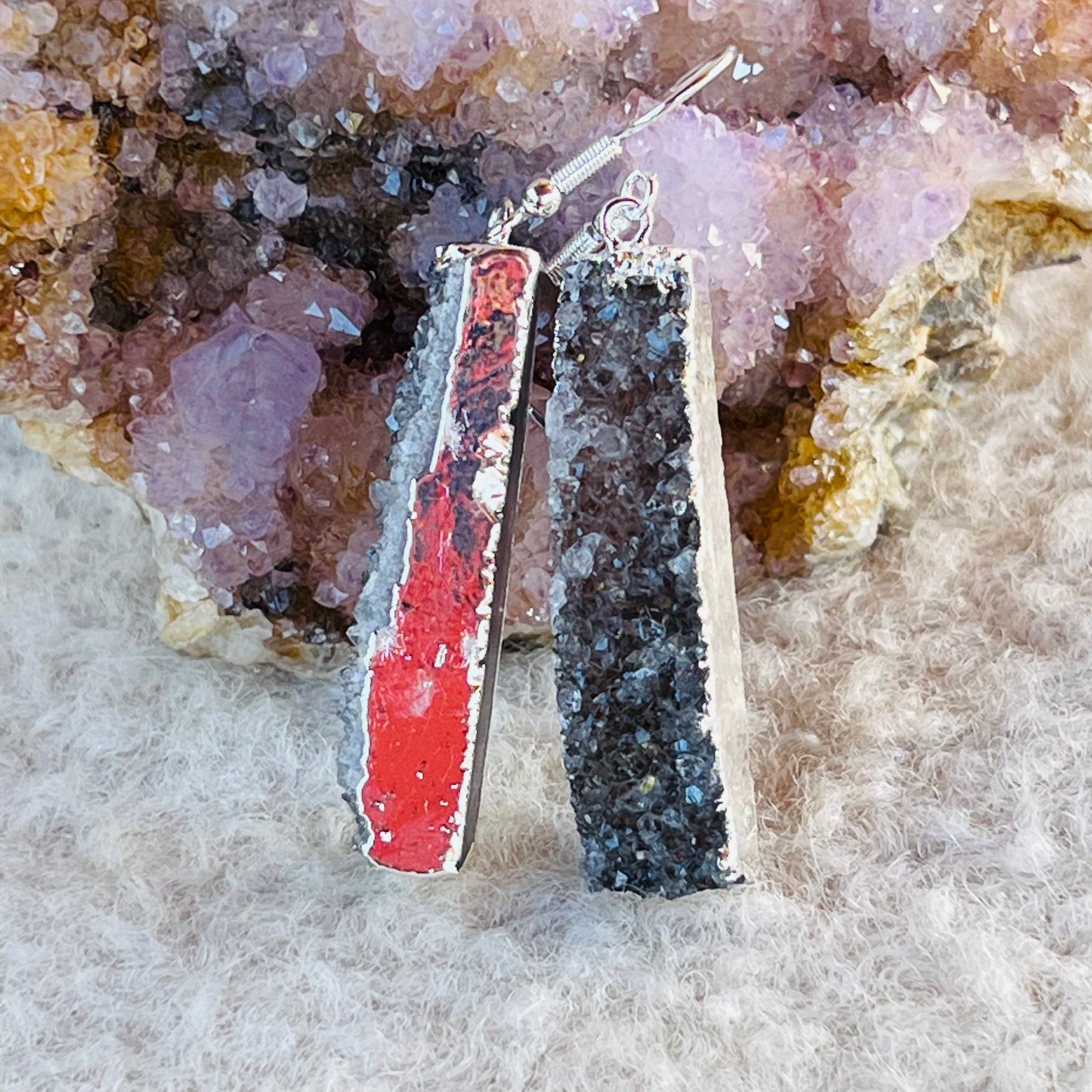 Descriere - Náušnice plátky drahého kamene druzy pokovené striebrom z Brazílie model 1