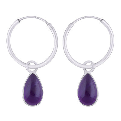 Tieto náušnice zo striebra 925 prinášajú moderný nádych jemného luxusu, vďaka kombinácii jednoduchosti tenkých kruhov a hypnotickej intenzity prírodného ametystu.