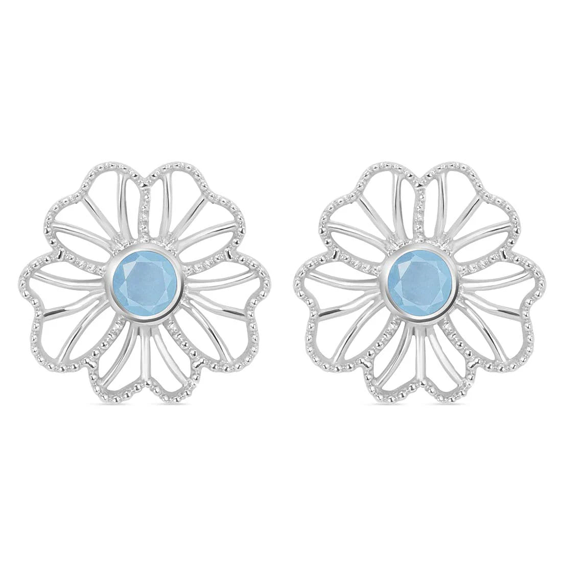 Jemné a žiarivé, náušnice „Flower“ zachytávajú krásu prírody v jemnom kvetinovom dizajne, kde sa akvamarín stáva stredobodom elegantnej kompozície.