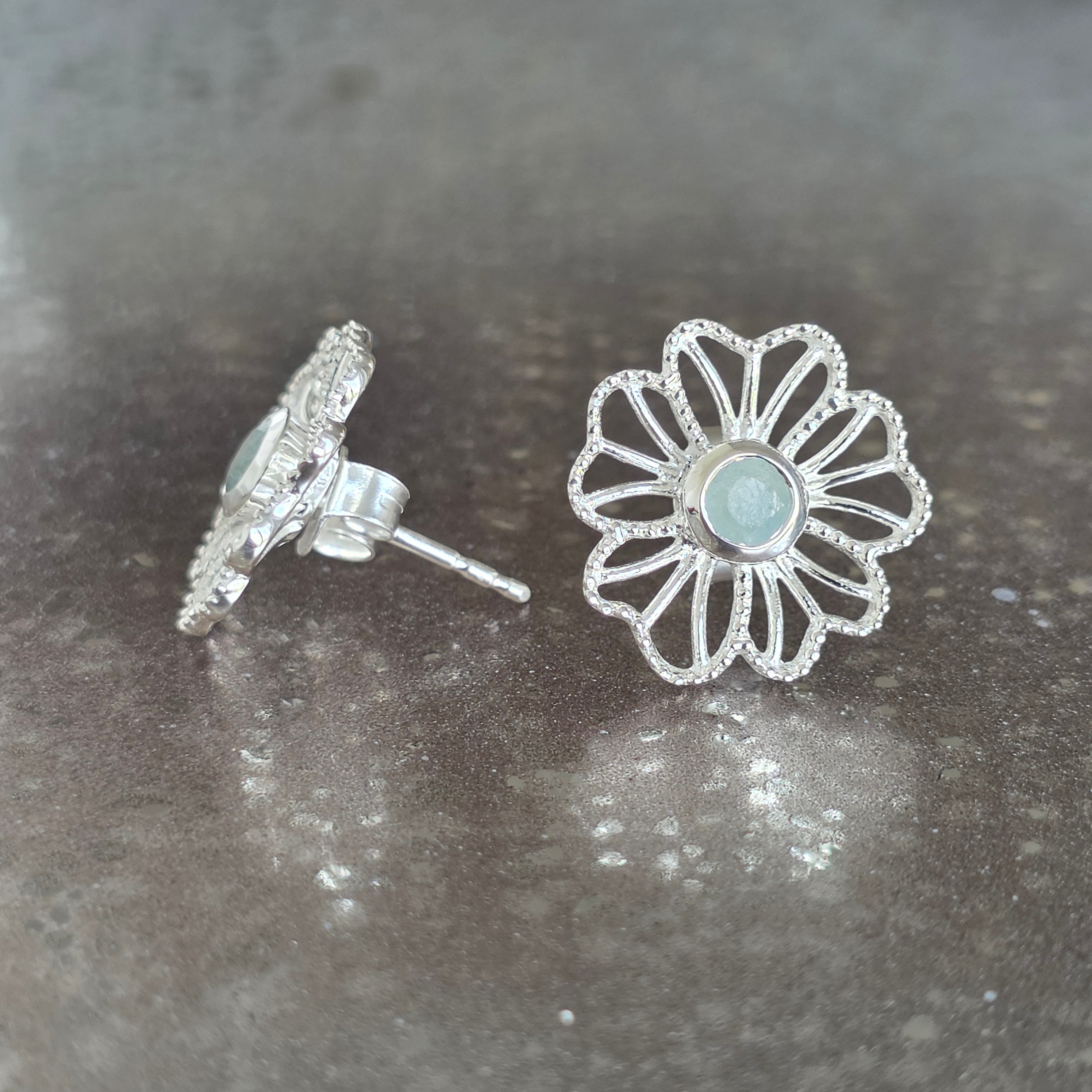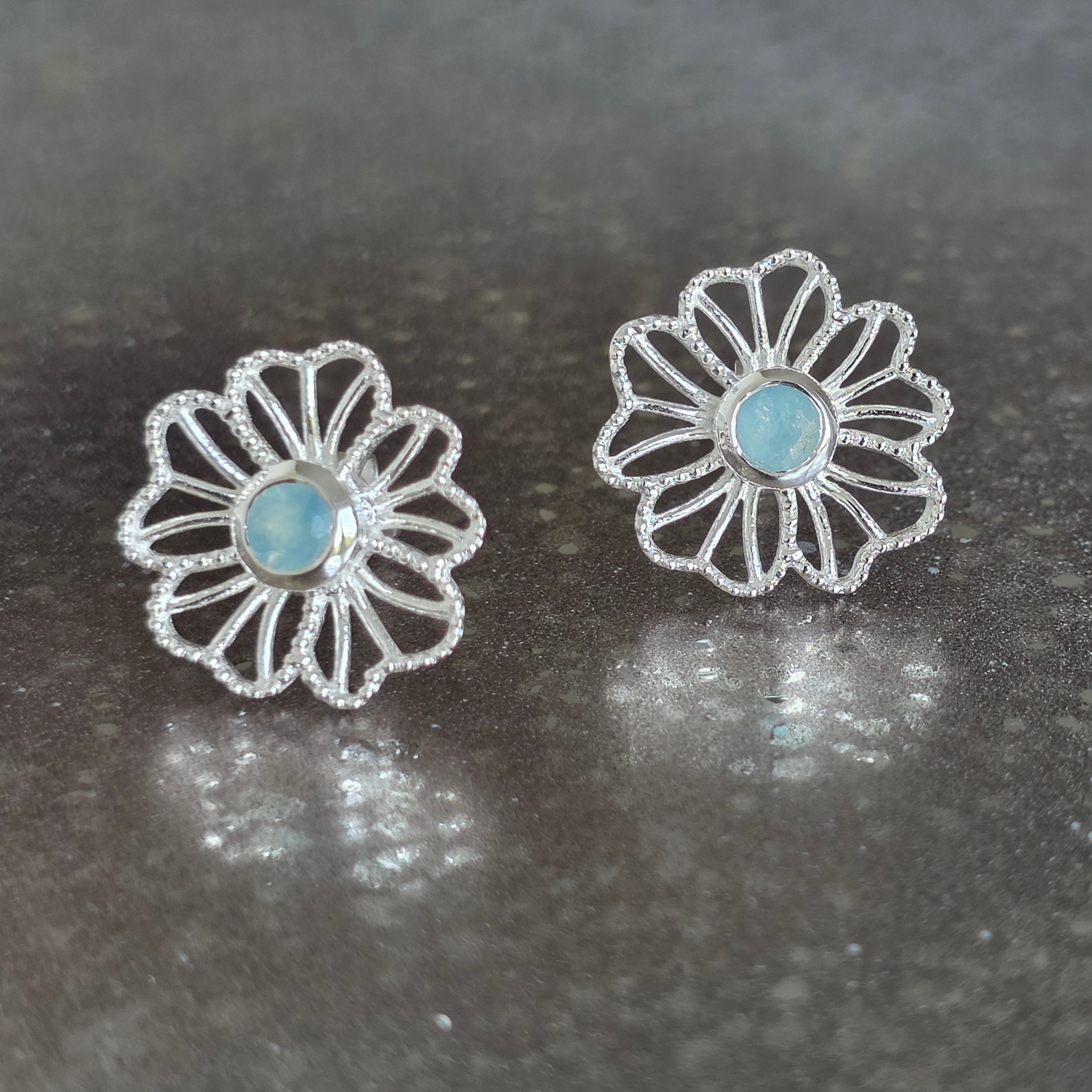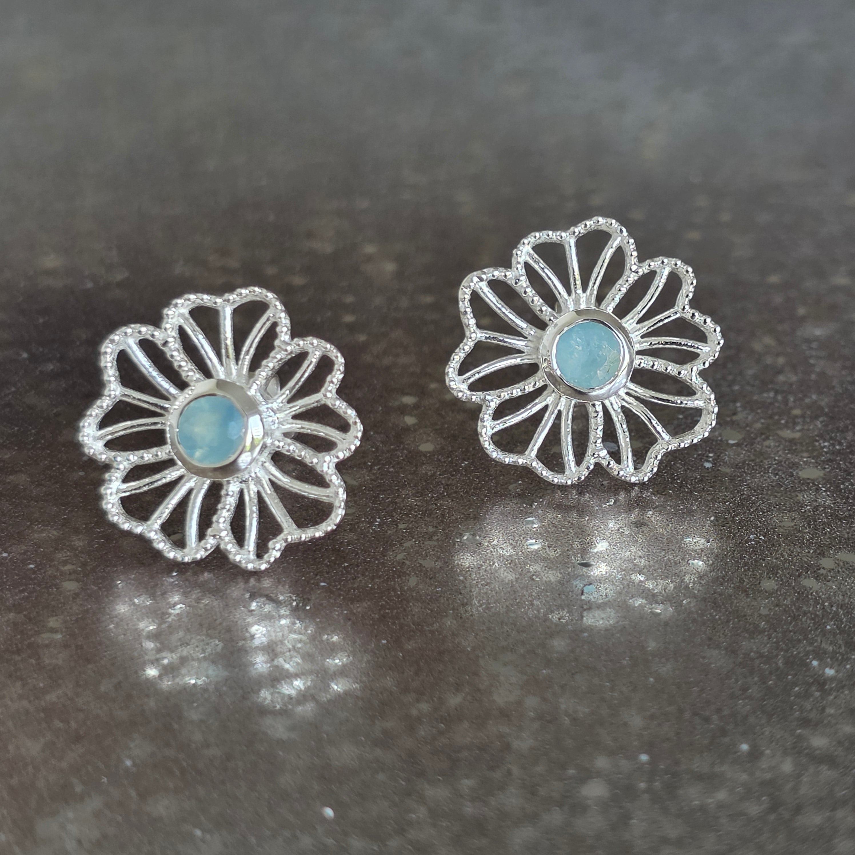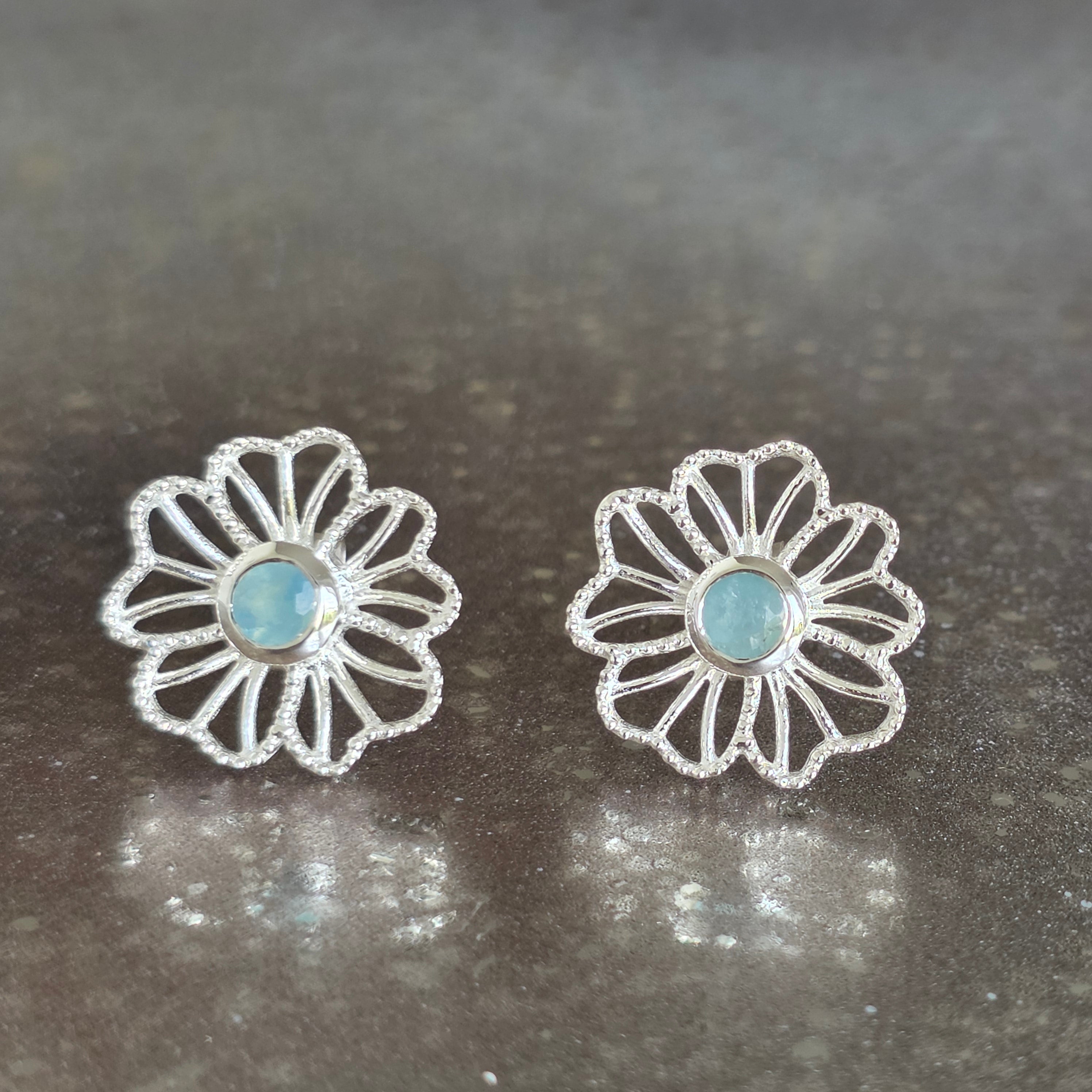 Náušnice striebro 925 akvamarín| Flower