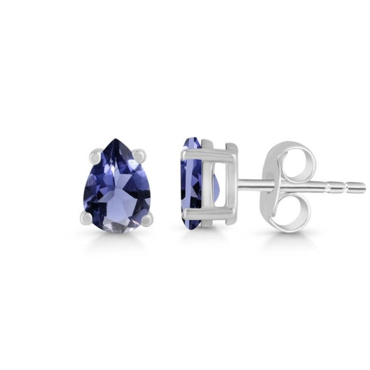 Náušnice z bieleho striebra s iolitom 6 mm Pear