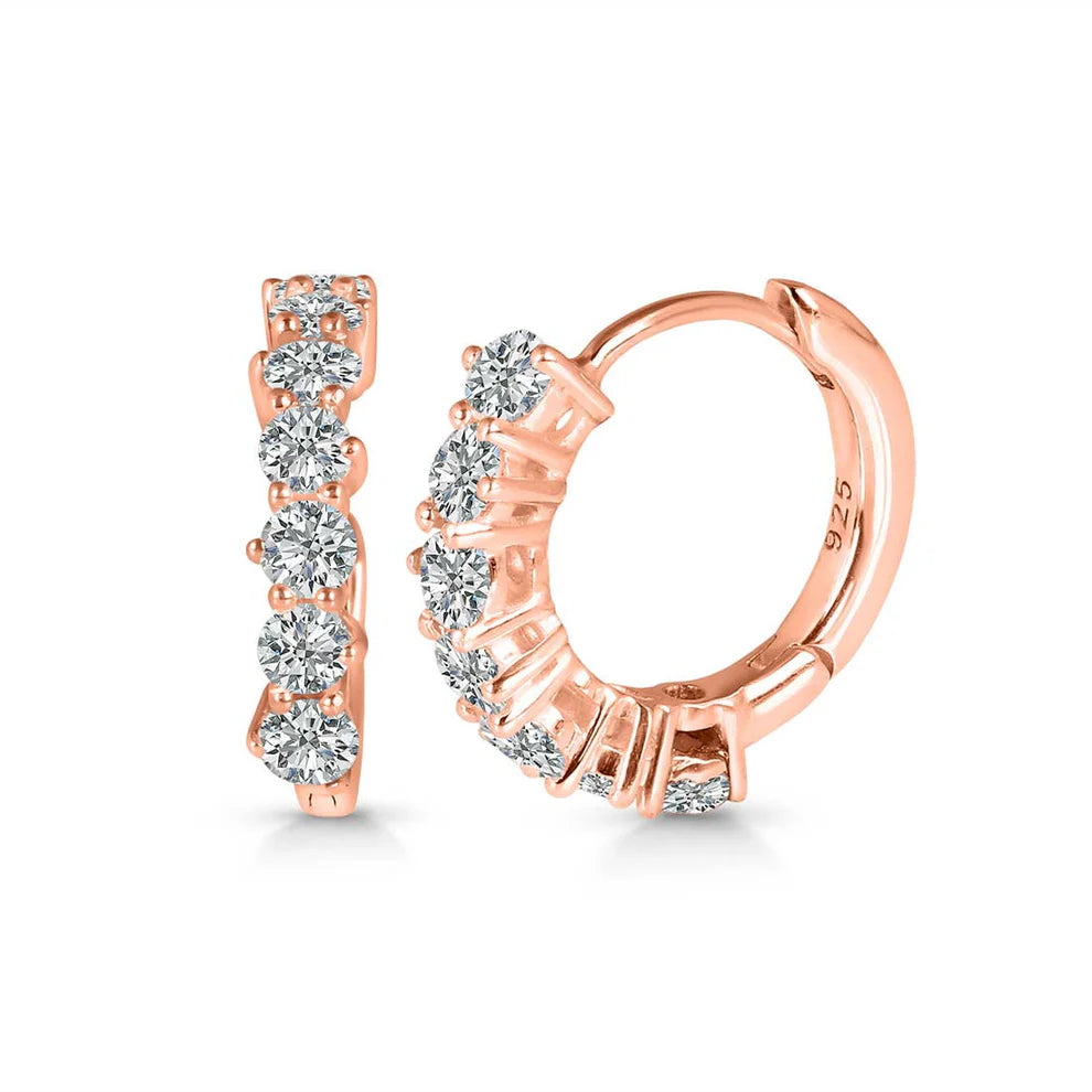Náušnice „Hoop Rose“ prinášajú elegantnú kombináciu klasického kruhového dizajnu a jemného tepla ružového zlata. Číry kremeň, diskrétny a žiarivý, je zvýraznený jemným tónom osadenia, čím vzniká rafinovaný a ľahko nositeľný kúsok.