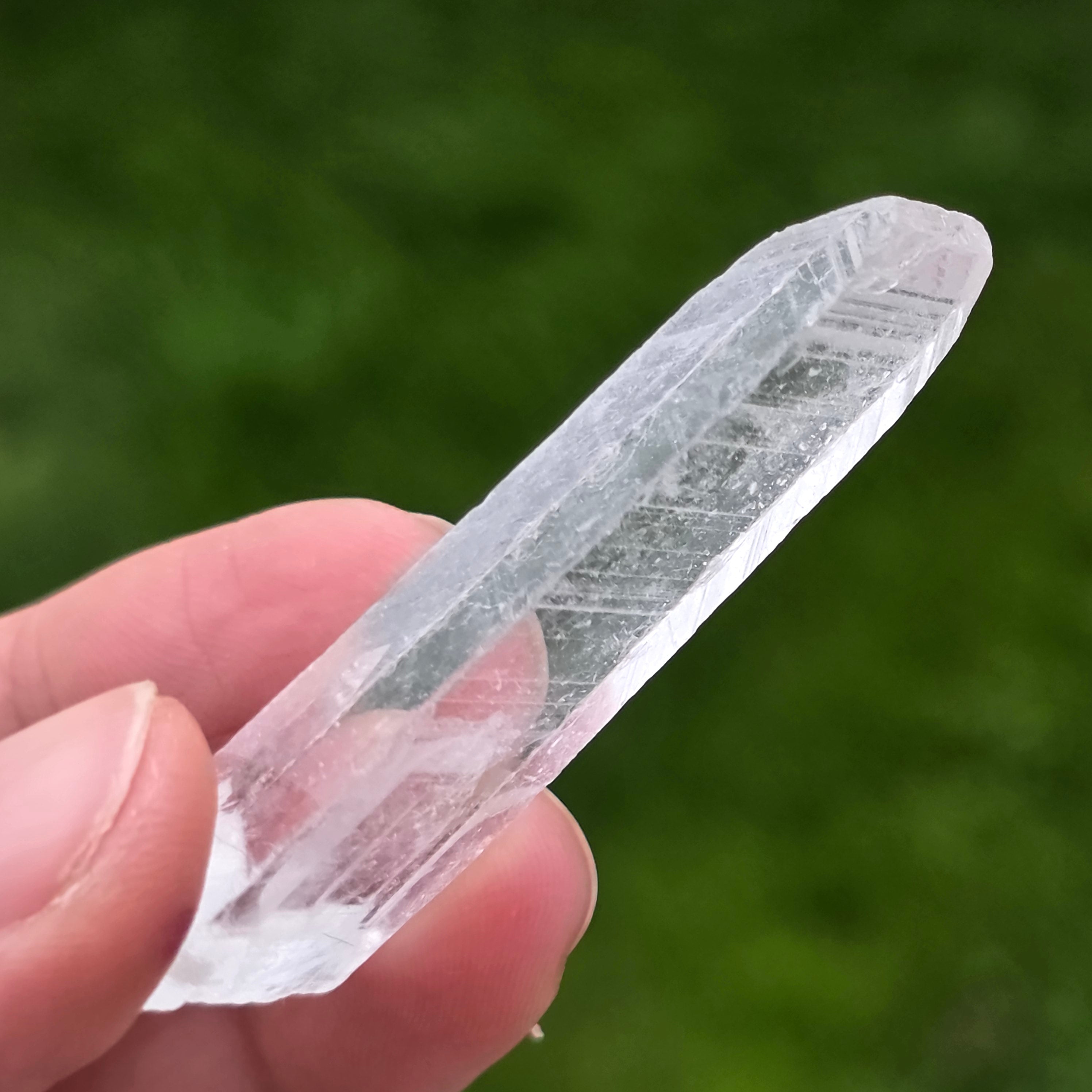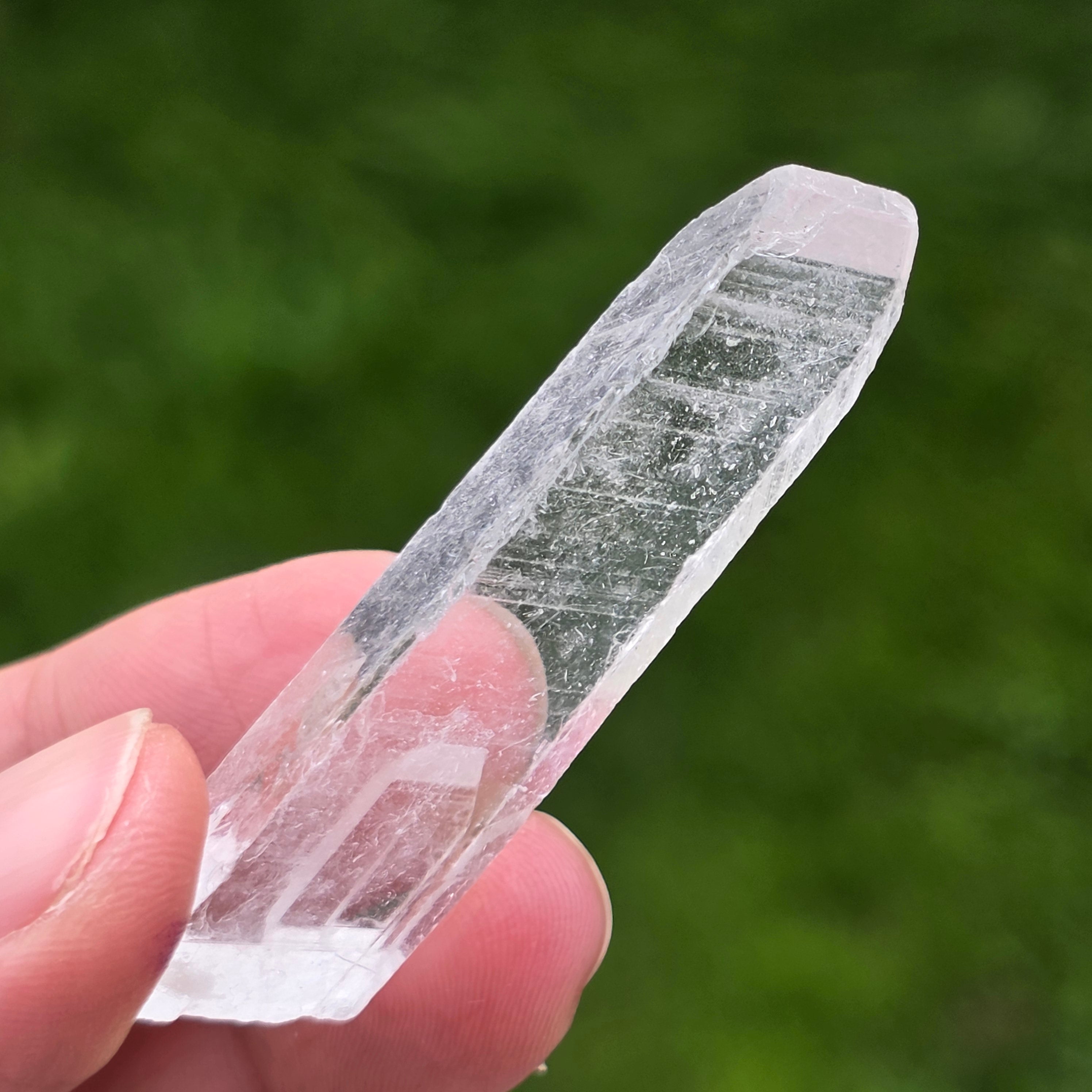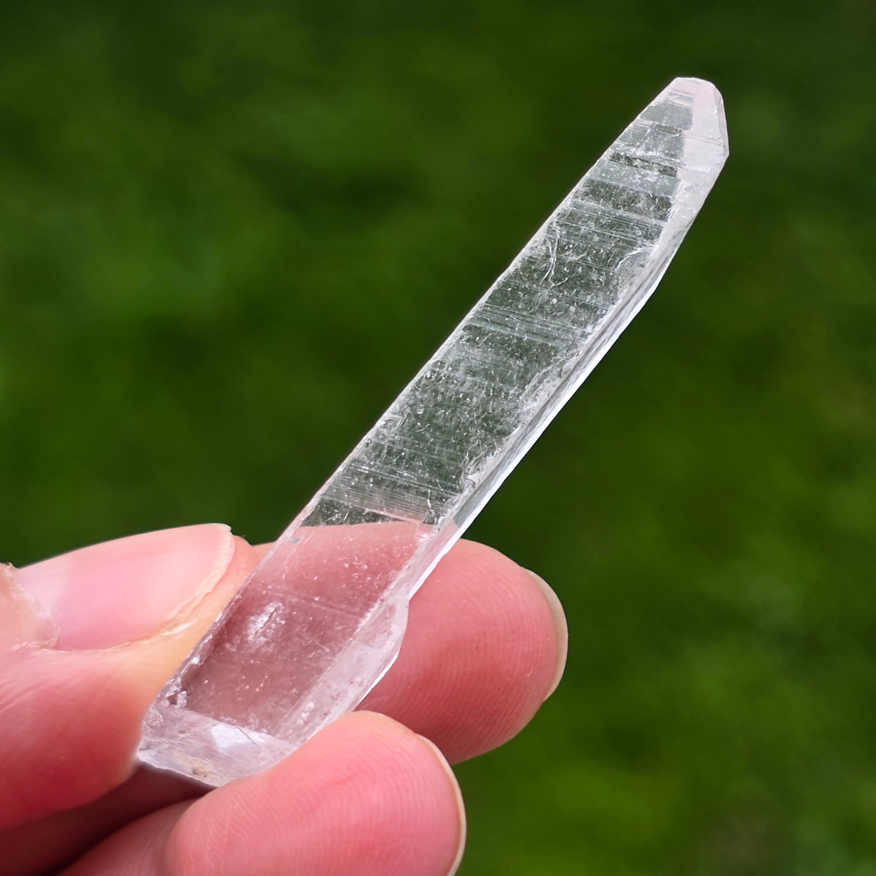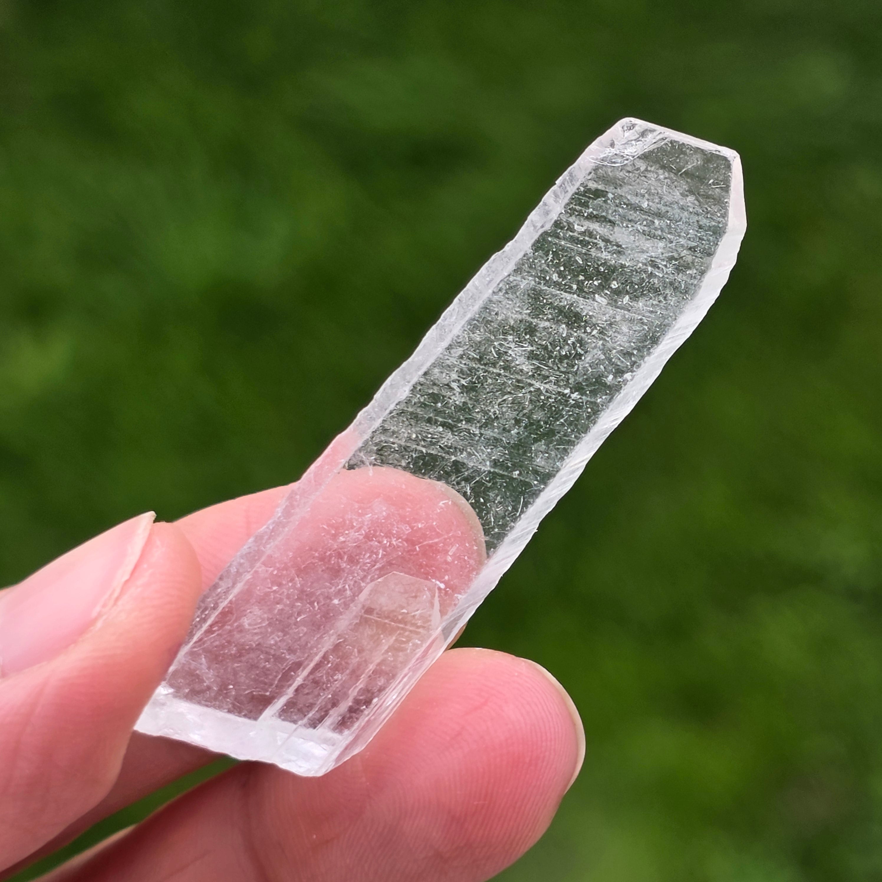 Kryštály sa prezentujú vo štíhlom prizmickom tvare s jasnými zakončeniami, majú vysokú priehľadnosť a jemný, takmer sklenný lesk. Ich predĺžený tvar a spôsob rastu dávajú každému exempláru vzdušný charakter, vizuálne krehký, ale mineralogicky dobre definovaný. Čistý a jednotný vzhľad robí tieto kusy mimoriadne cenené v zbierkových vitrínach.