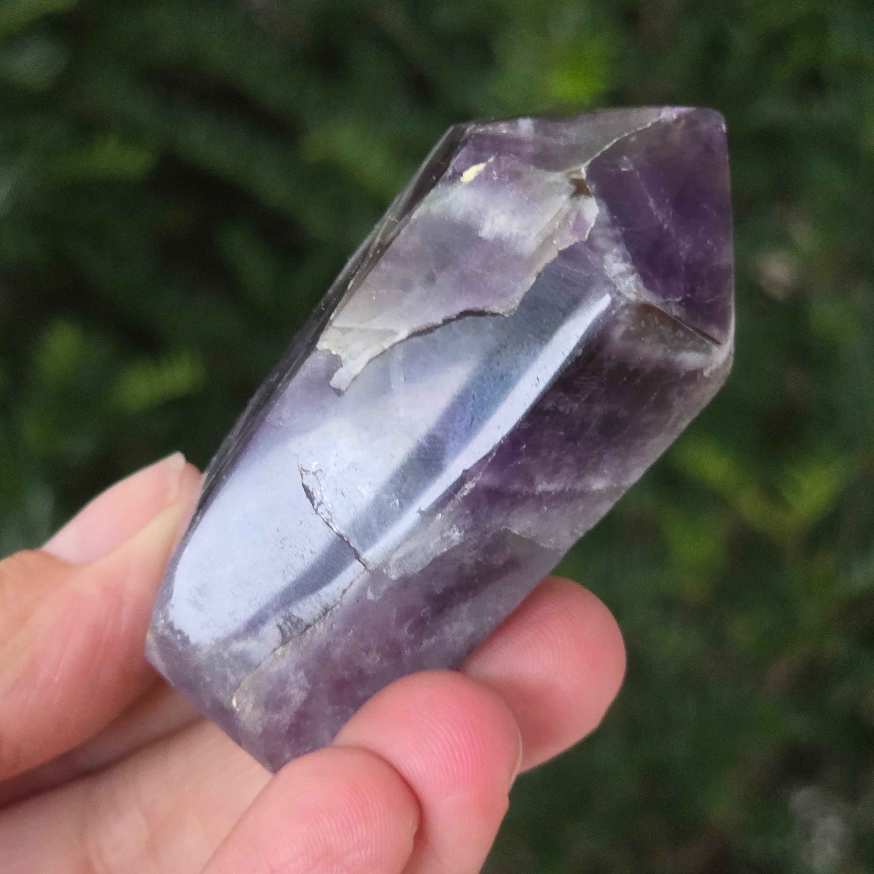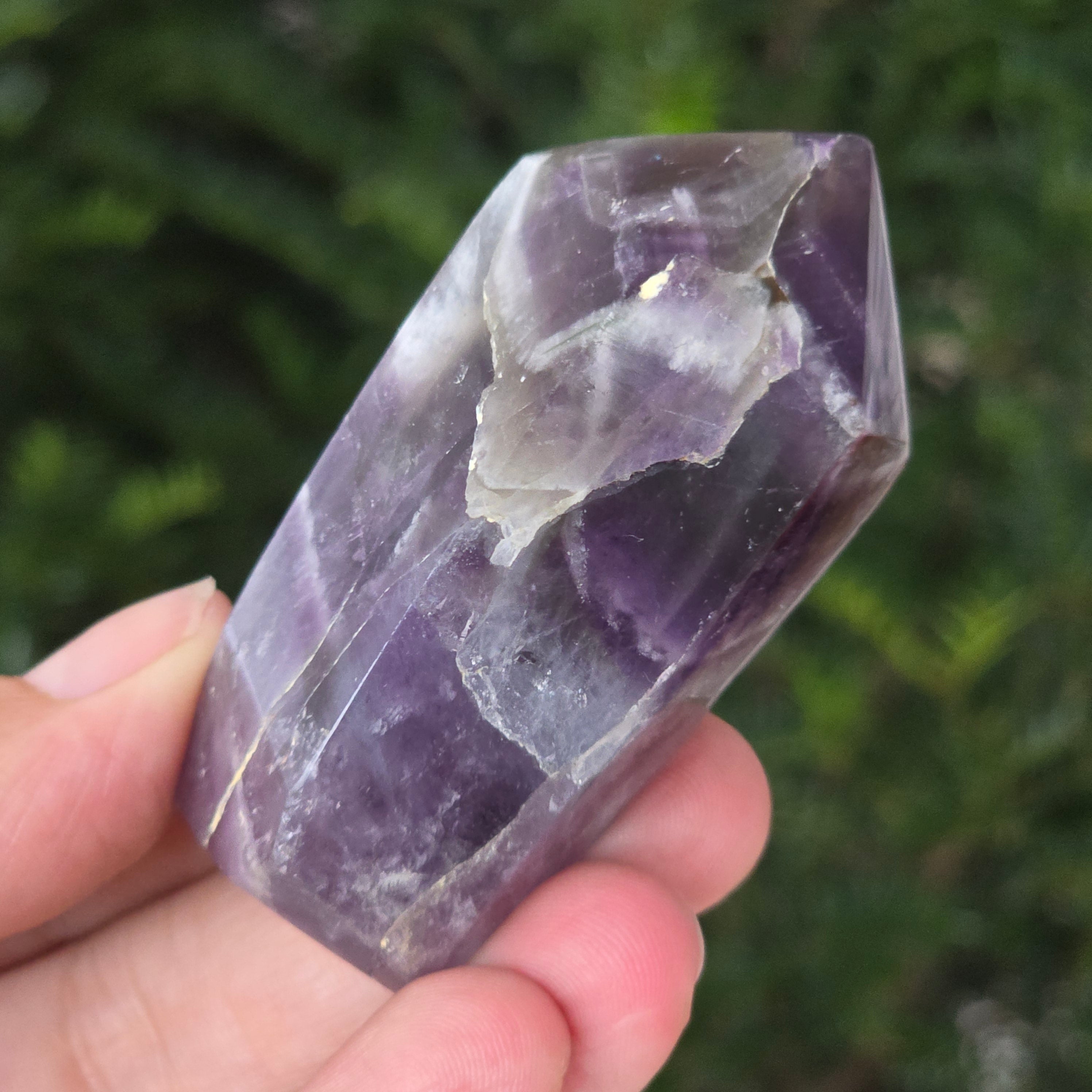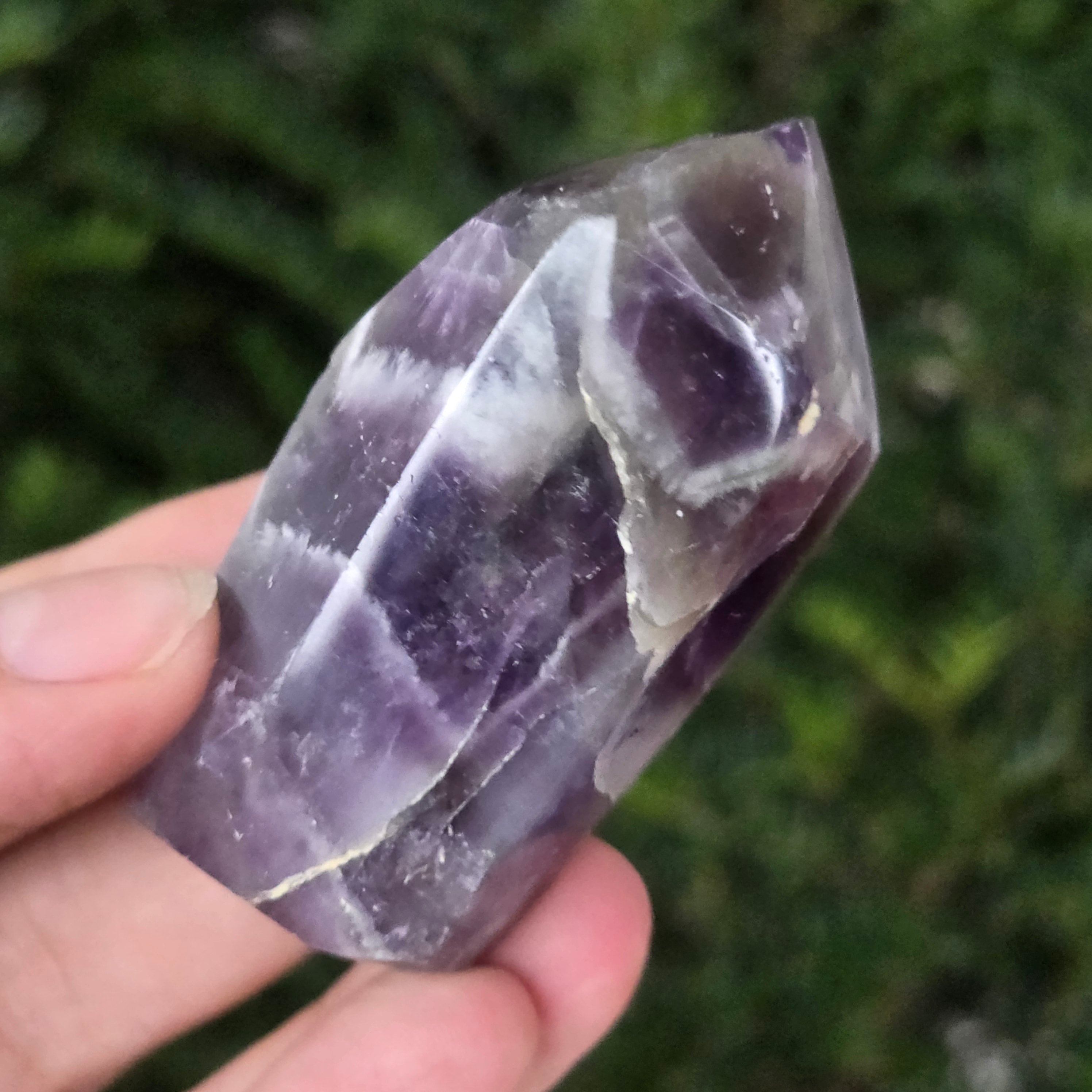 Vyberte si obelisk z ametystu chevron a nechajte ho priniesť do vášho priestoru čistiacu energiu, harmóniu a nádych mystickej elegancie — symbol jasnosti a duchovnej ochrany.