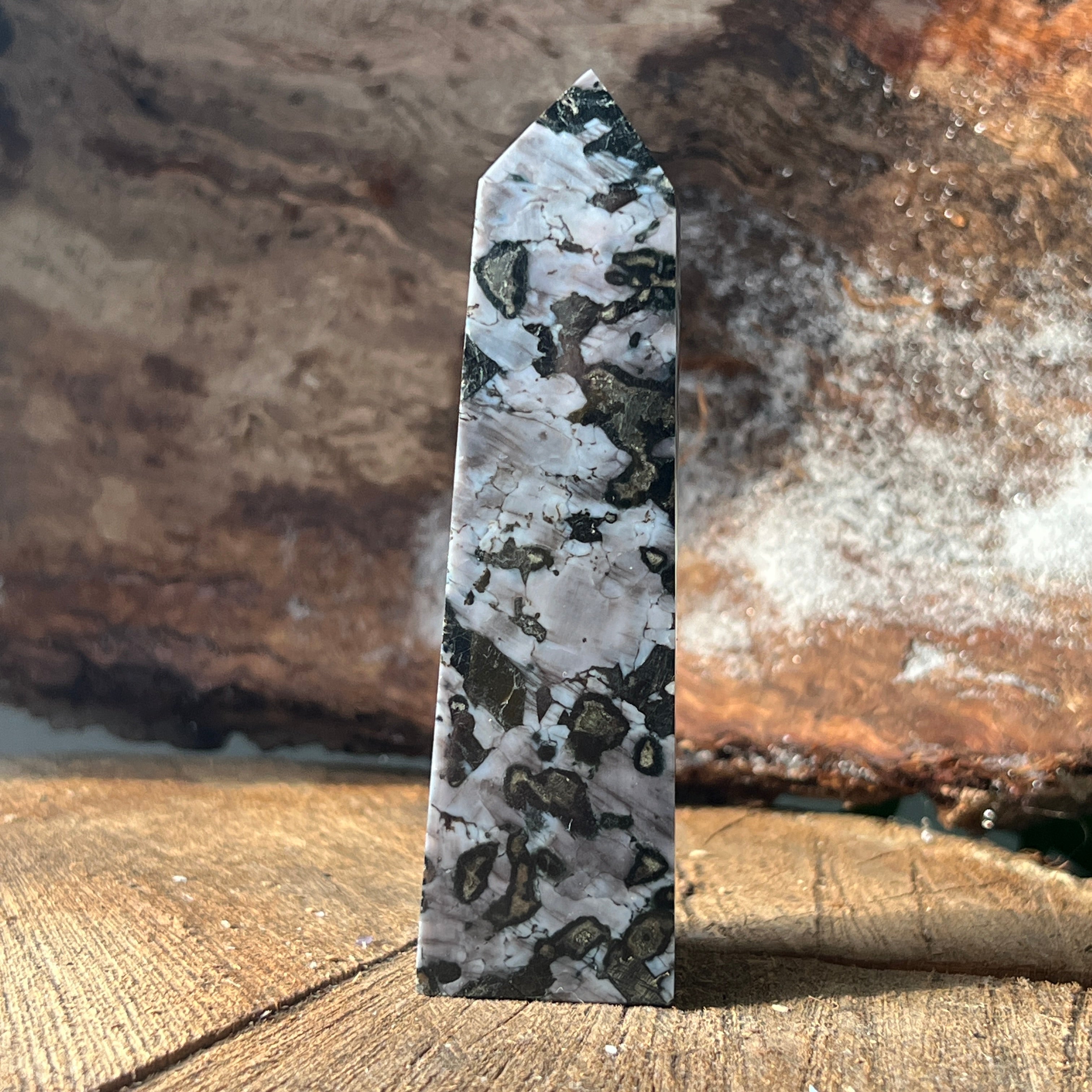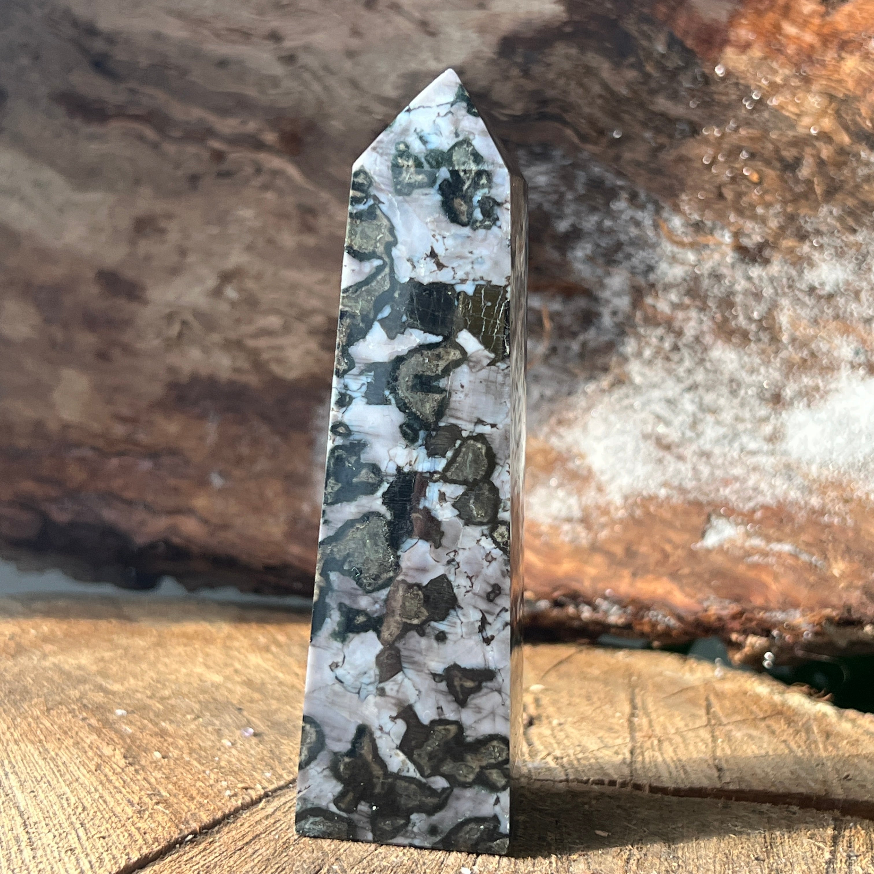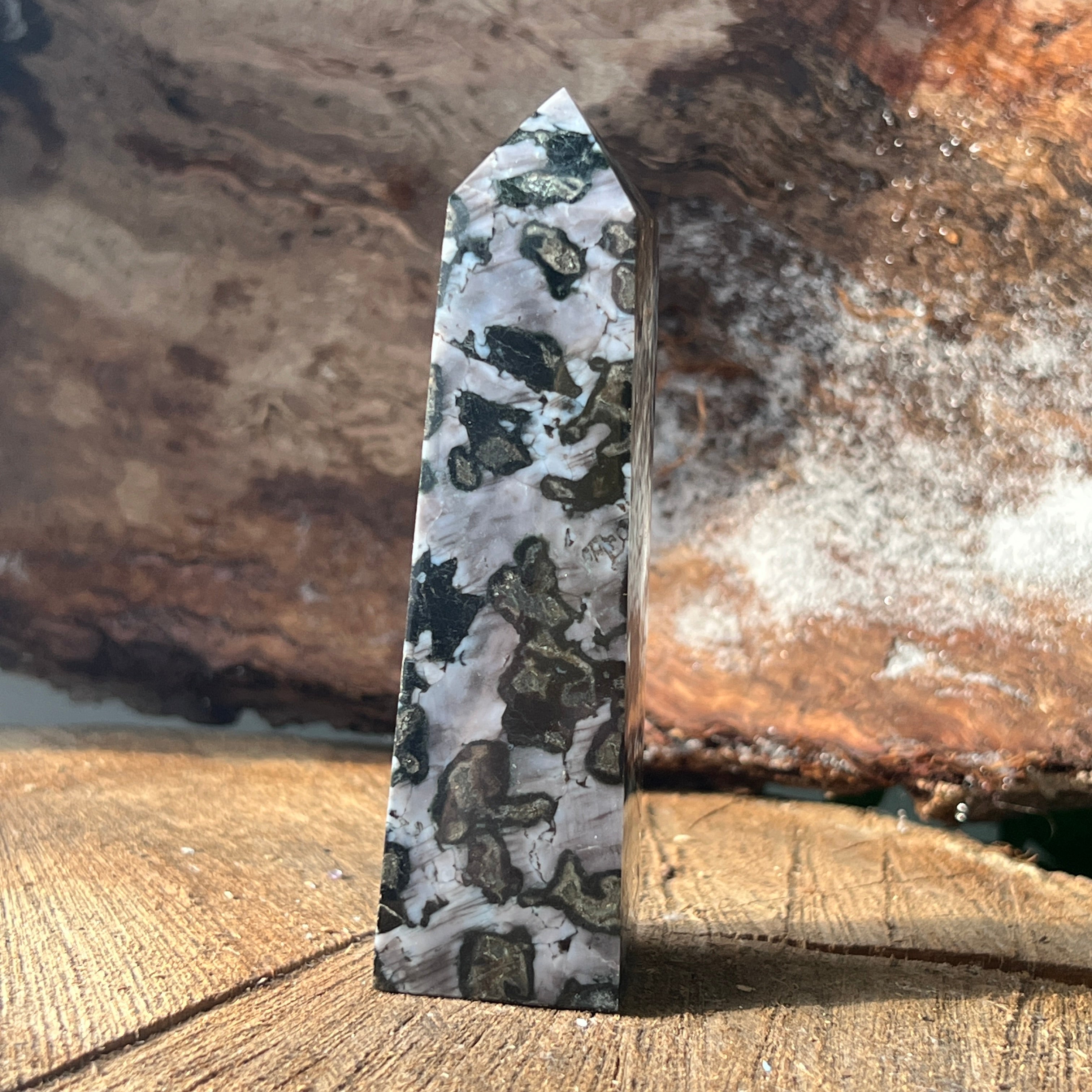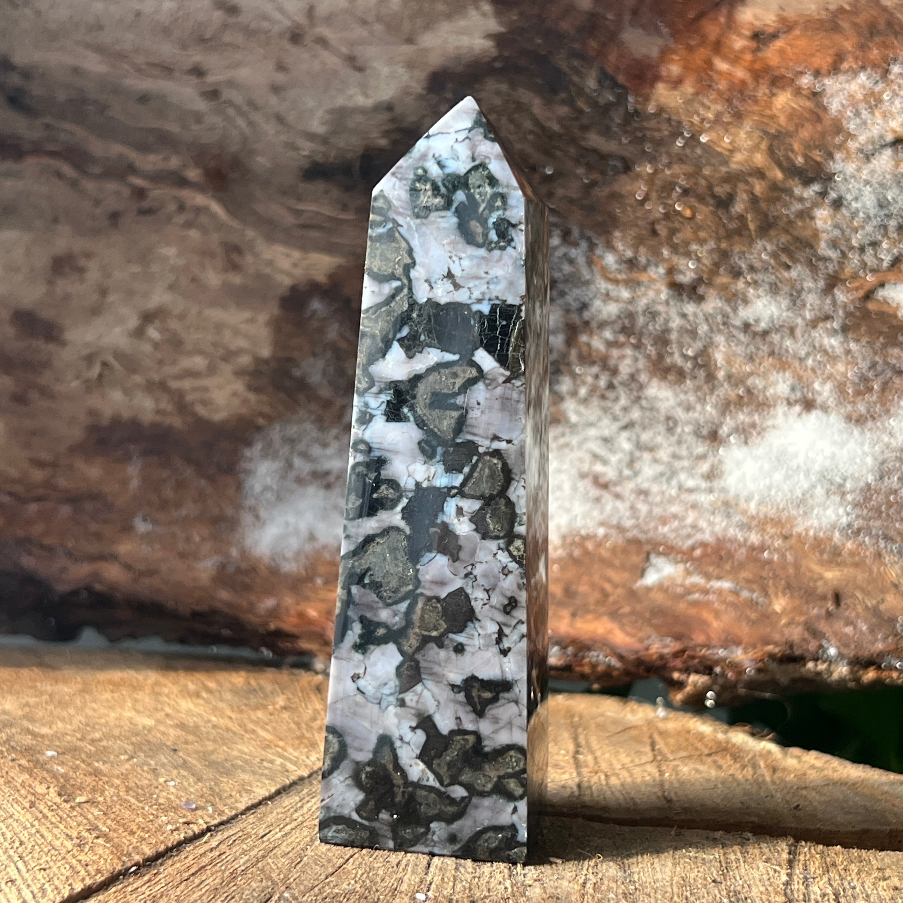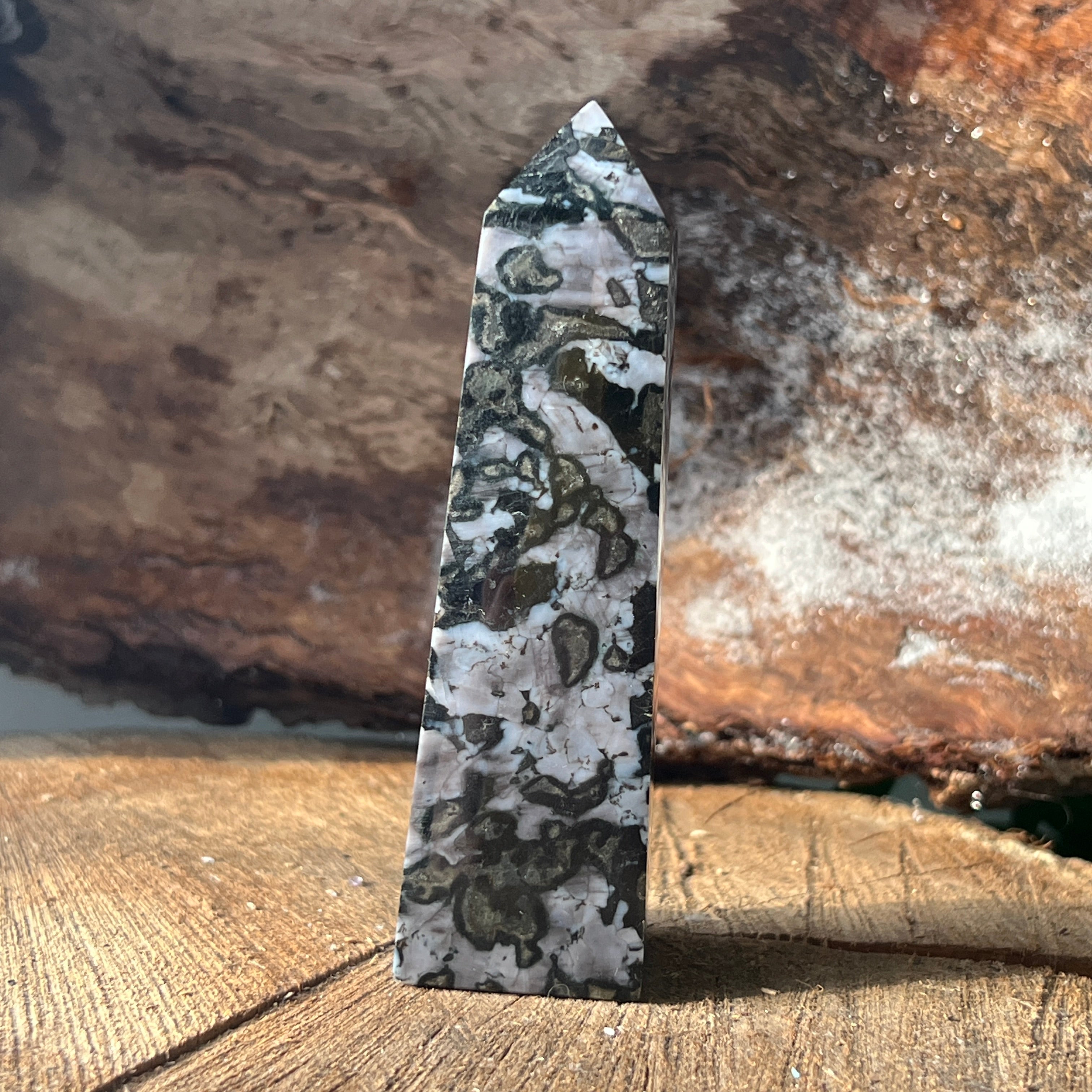 Merlinit je vzácny a fascinujúci polodrahokam, známy kombináciou kontrastných farieb, čiernej a bielej, ktorá mu dodáva jedinečný vzhľad. Považuje sa za odrodu dendritového opálu alebo kombináciu kremeňa a iných minerálov a jeho zložitá štruktúra ho robí ceneným tak pre jeho krásu, ako aj pre predpokladané energetické vlastnosti. Merlinit je vo svete kryštáloterapie známy svojou mystickou energiou a spojením s intuíciou, jasnovidectvom a duchovným poznaním.