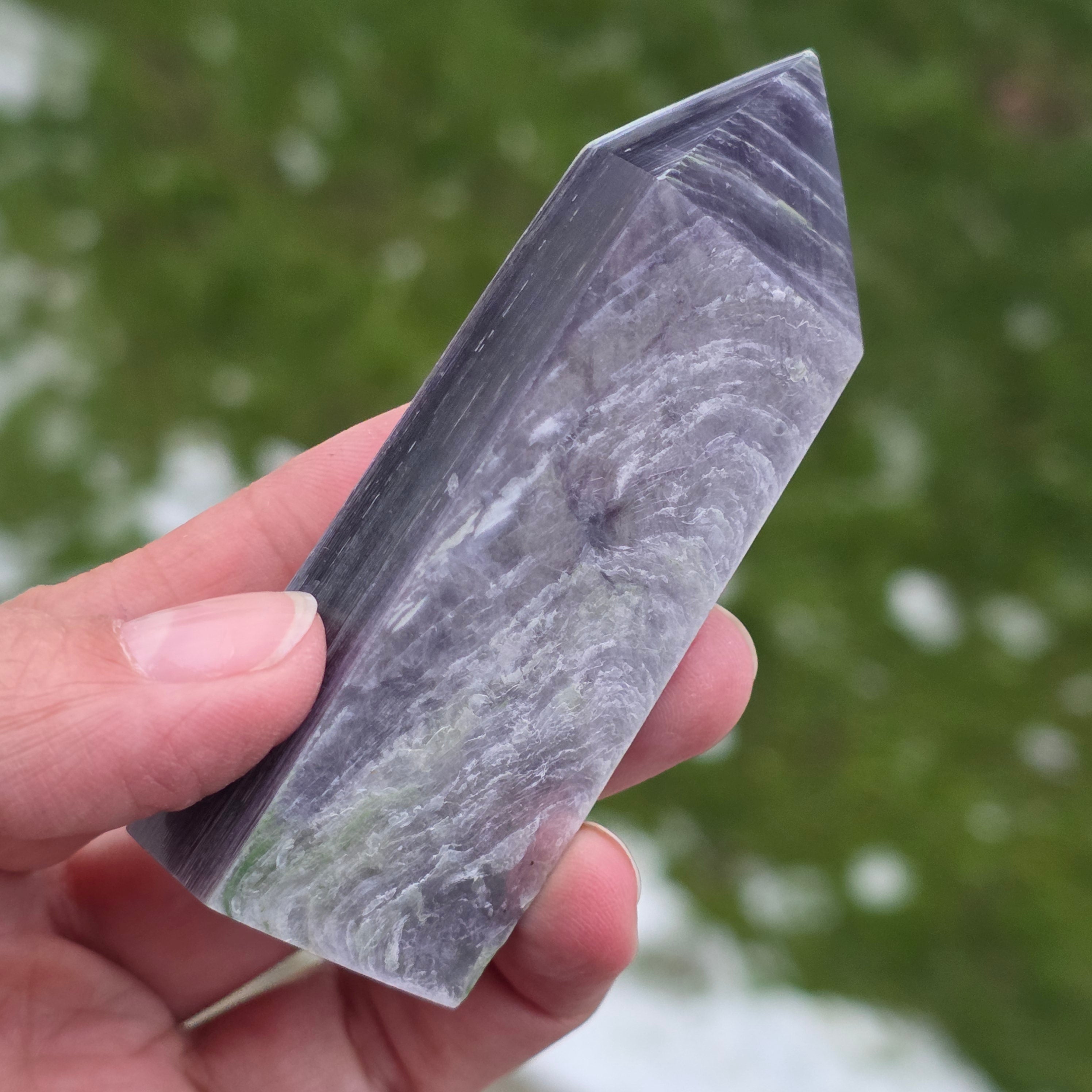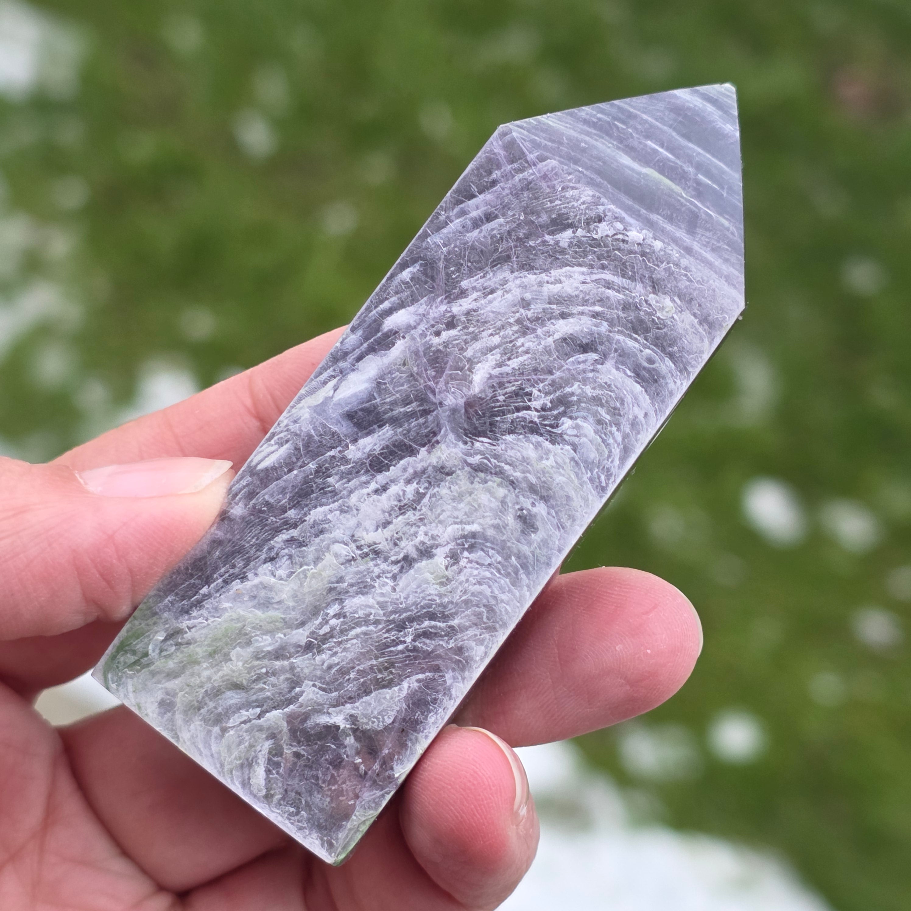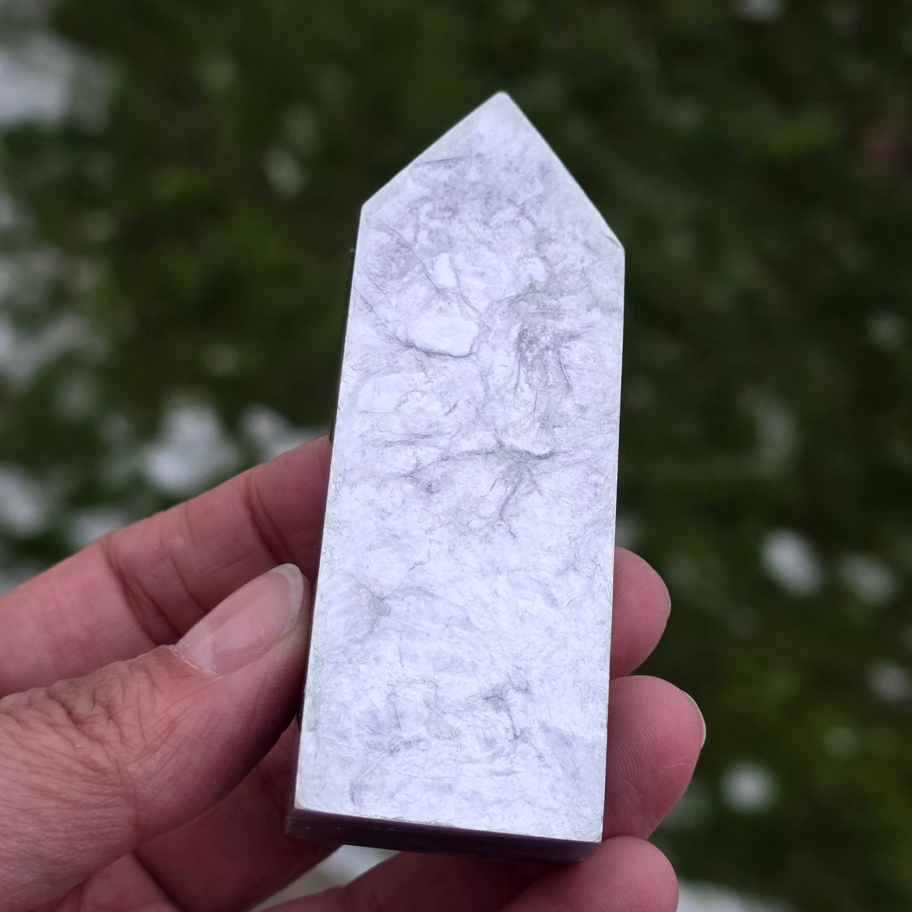 Tento obelisk z prírodného lepidolitu s lesklým povrchom, je to jemný a hlboko upokojujúci kúsok, vhodný do priestorov na relaxáciu, meditáciu alebo na držanie blízko v obdobiach emočného stresu. Lepidolit je známy svojím spojením s upokojovaním mysle, vyvážením emócií a podporou procesov uvoľňovania nahromadeného napätia. Tvar obelisku pomáha smerovať energiu harmonickým spôsobom, čím sa tento kúsok mení na jemnú podporu vnútorného jasného vnímania, odpočinku a emocionálnej stability.