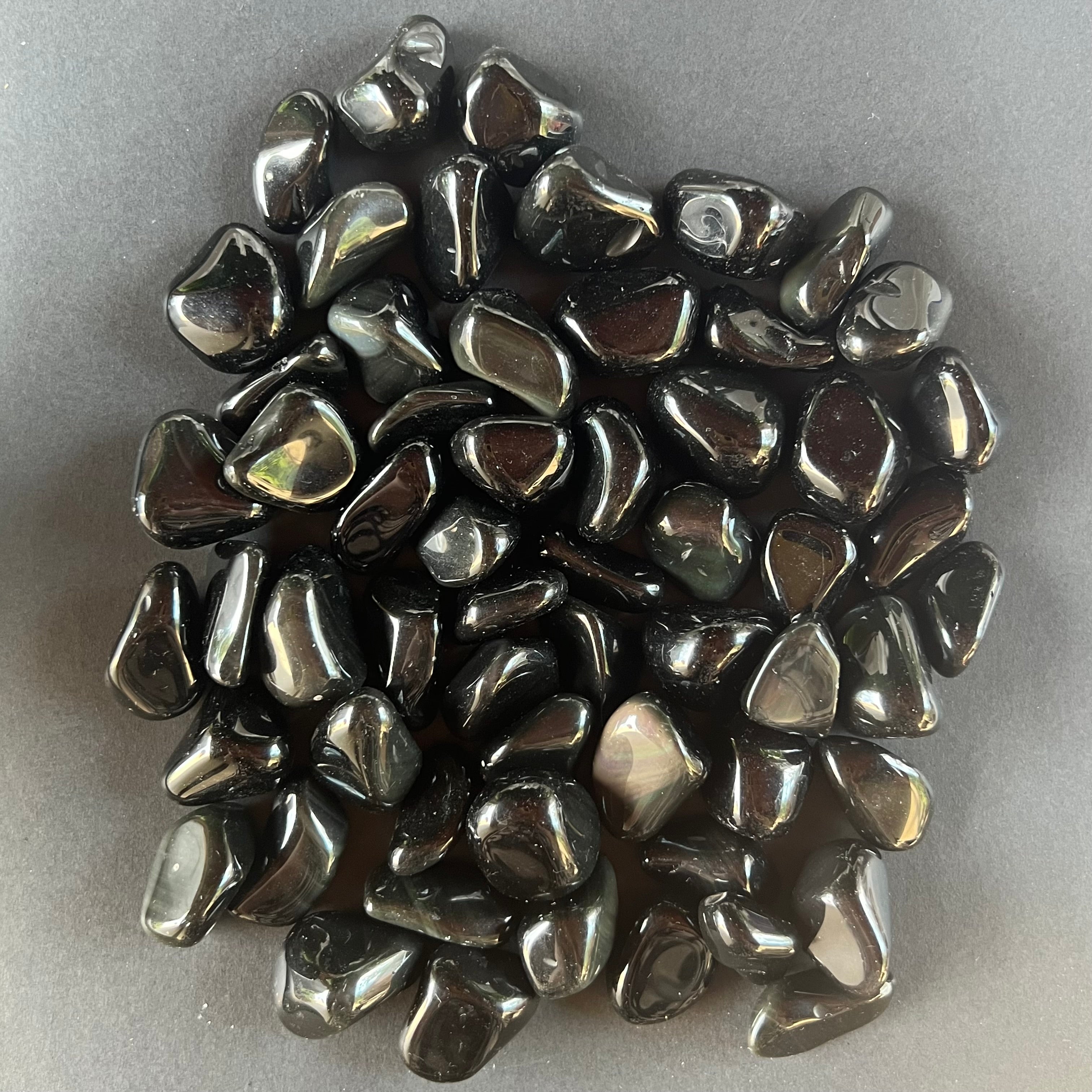 Obsidián valcovaný kameň M, rozmery medzi 1,5 - 3,5 cm. Cena sa líši podľa veľkosti kameňa, prosím, vyberte si veľkosť, ktorú chcete. Cena sa vzťahuje na jeden kus.