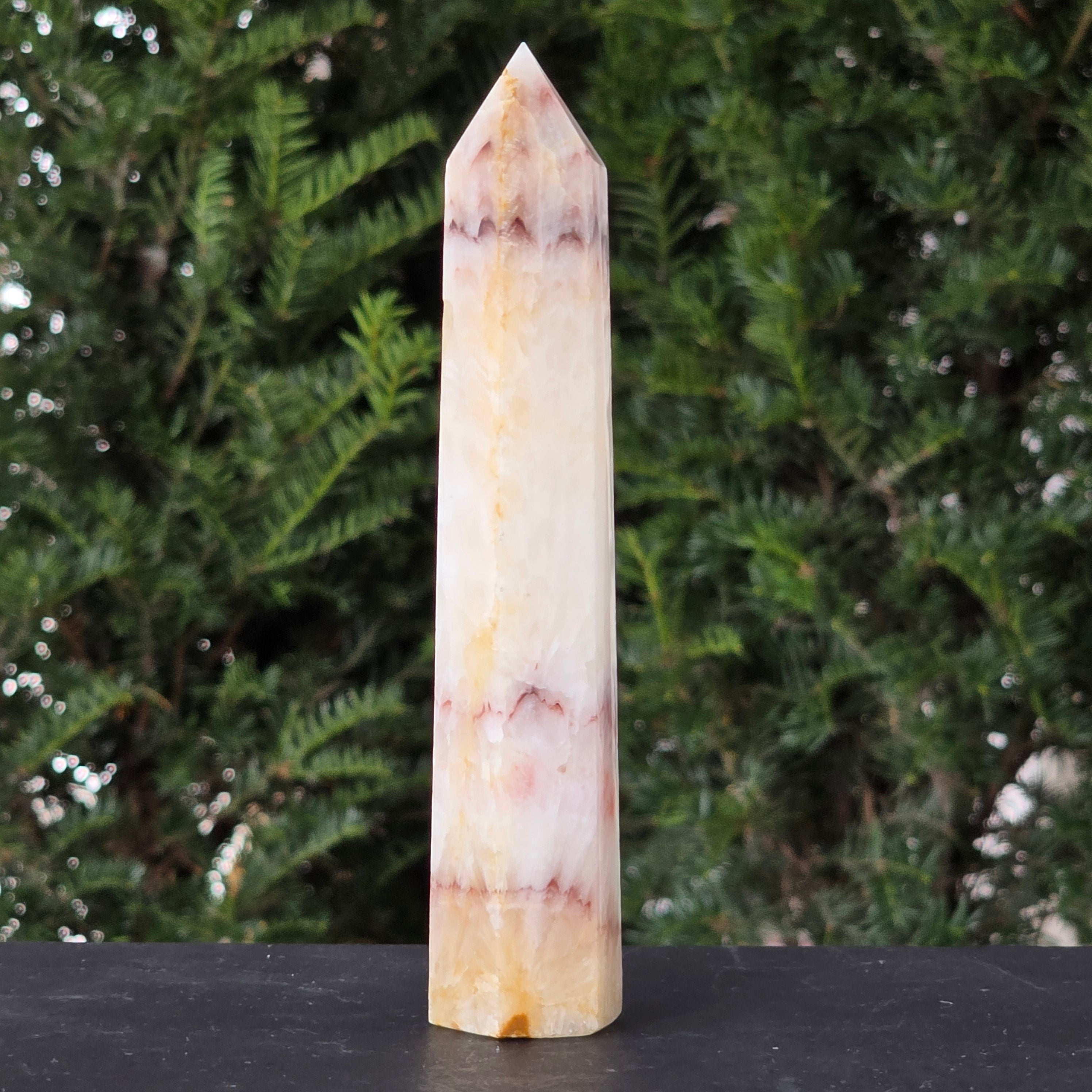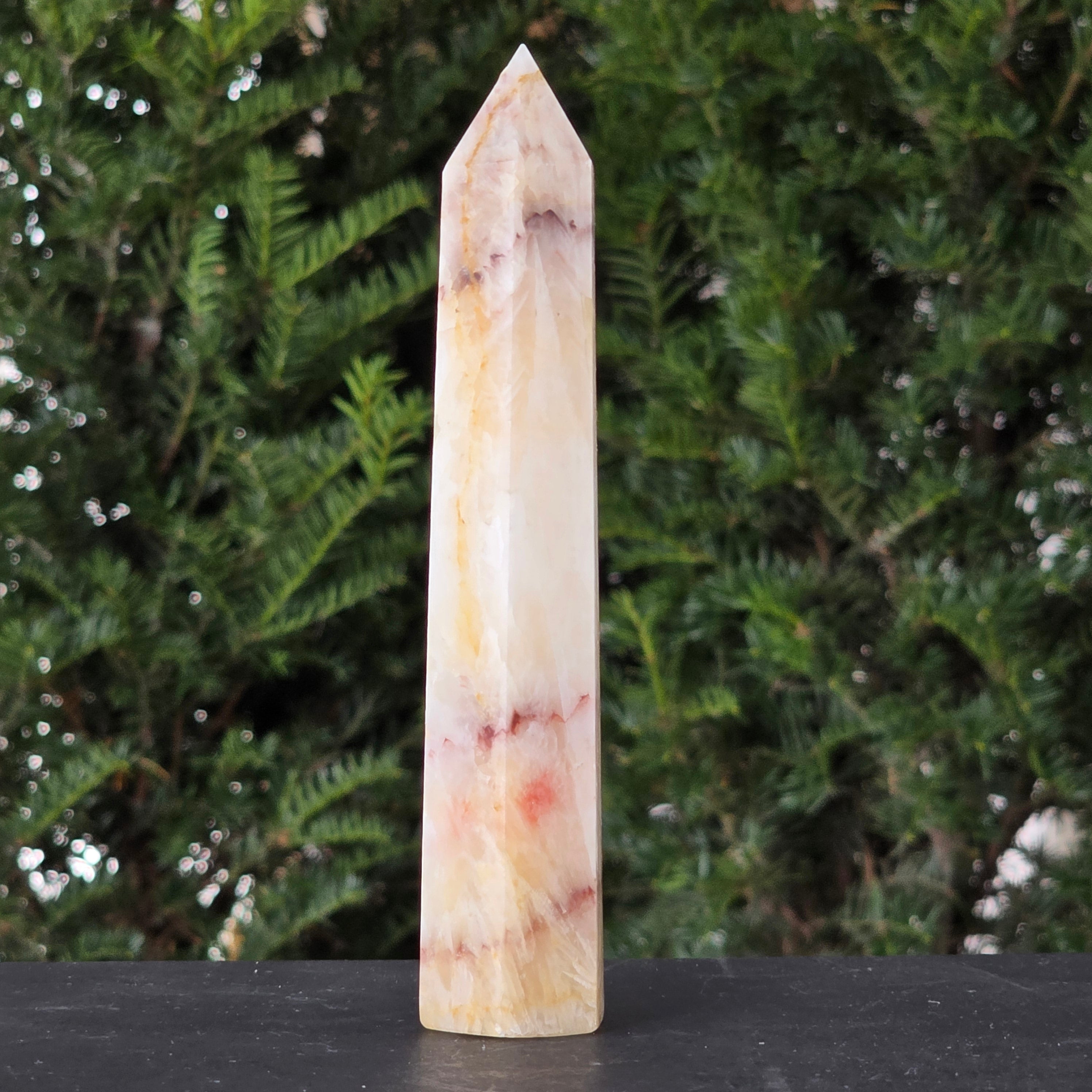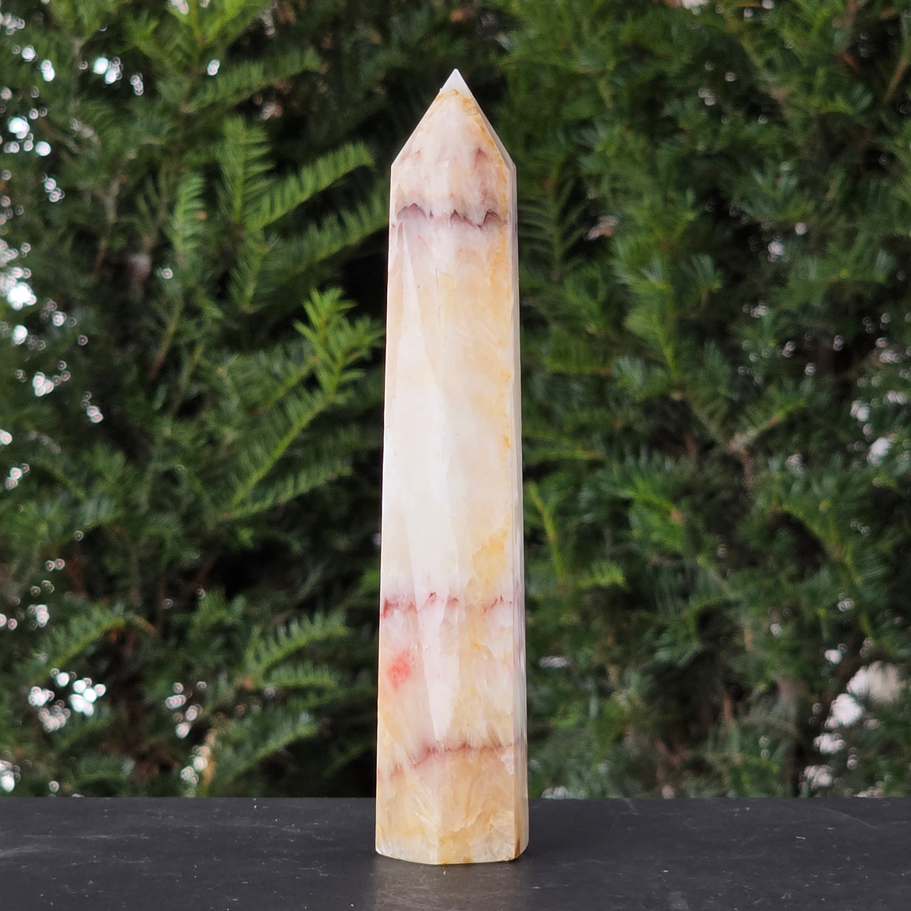 Tento fascinujúci kameň kombinuje oranžový onyx s jemnými žilkami kalcitu, vo vrstvách, ktoré vyzerajú, akoby ich maľoval čas. Živé odtiene oranžovej, medovej a jantárovej pulzujú energiou života a prinášajú nádych vitality do každého priestoru. Je to kus, ktorý prebúdza zmysly a inšpiruje kreativitu, pričom si zároveň zachováva hlbokú rovnováhu, zakorenenú v energii zeme.