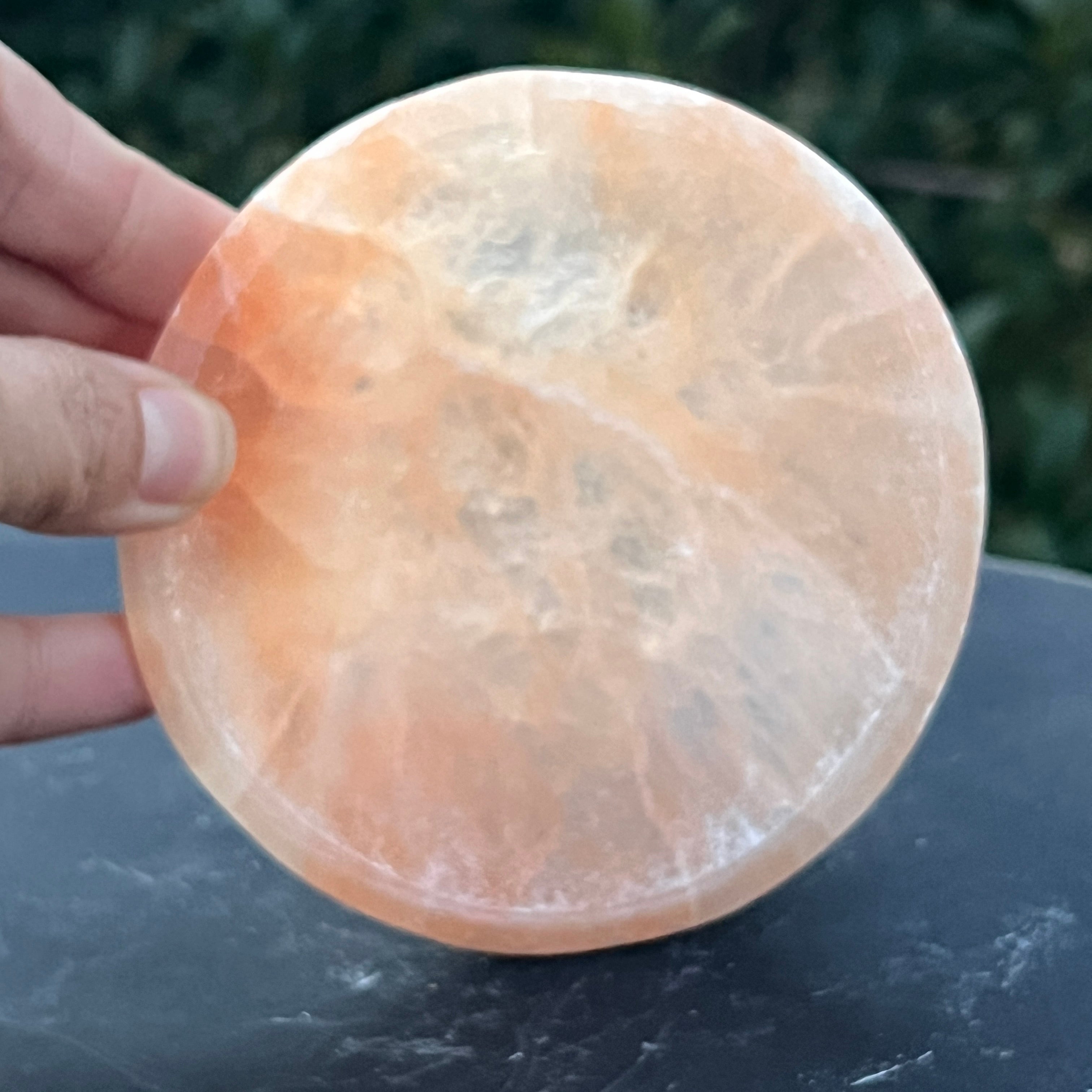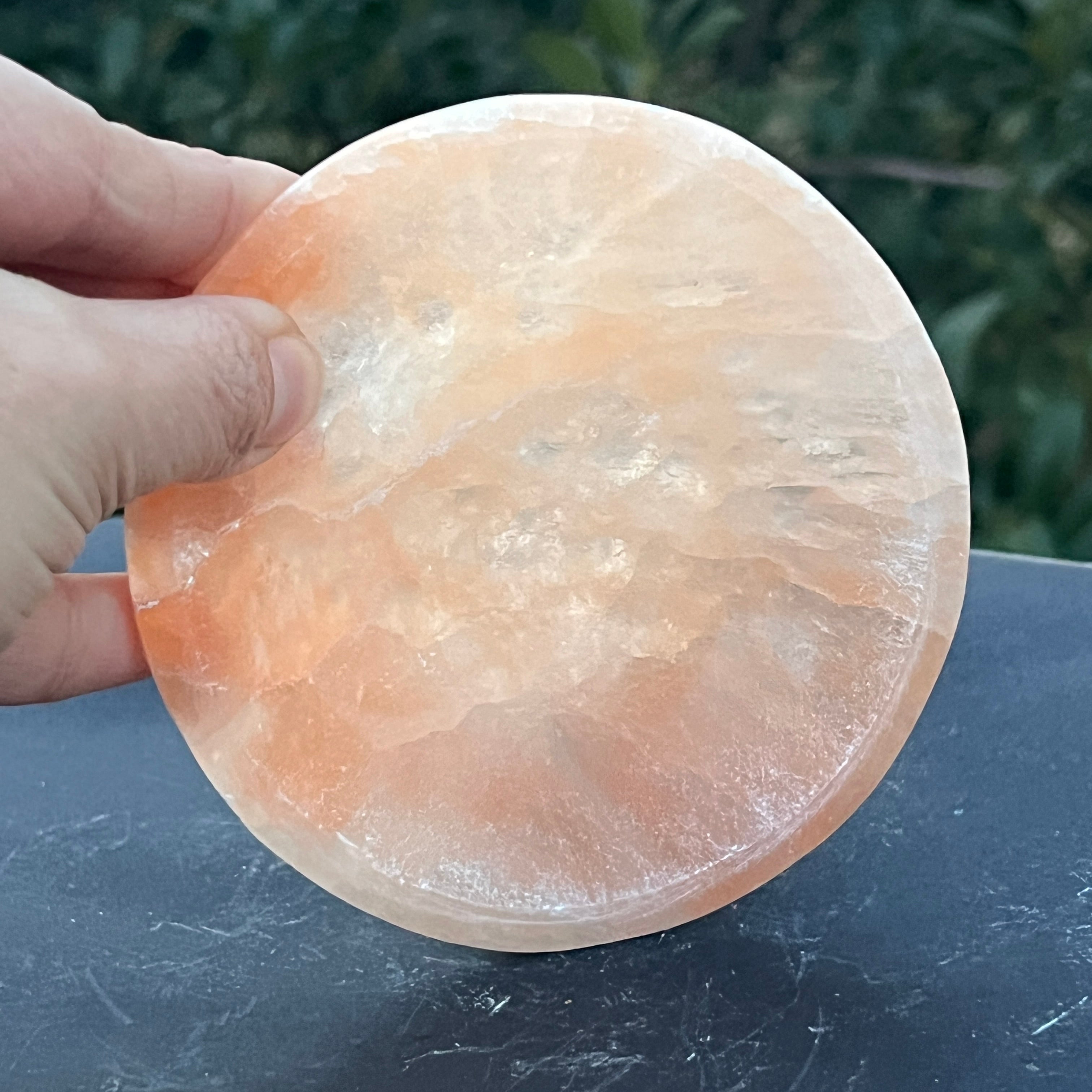 Táto oranžová selenitová misa vyzerá, akoby bola vytesaná zo slnečného lúča — teplá, jemná a hlboko upokojujúca. Jej priehľadná textúra vyžaruje jemné vnútorné svetlo, pripomínajúce energiu slnka, ktoré sa rozlieva po marockých púštnych pieskoch.