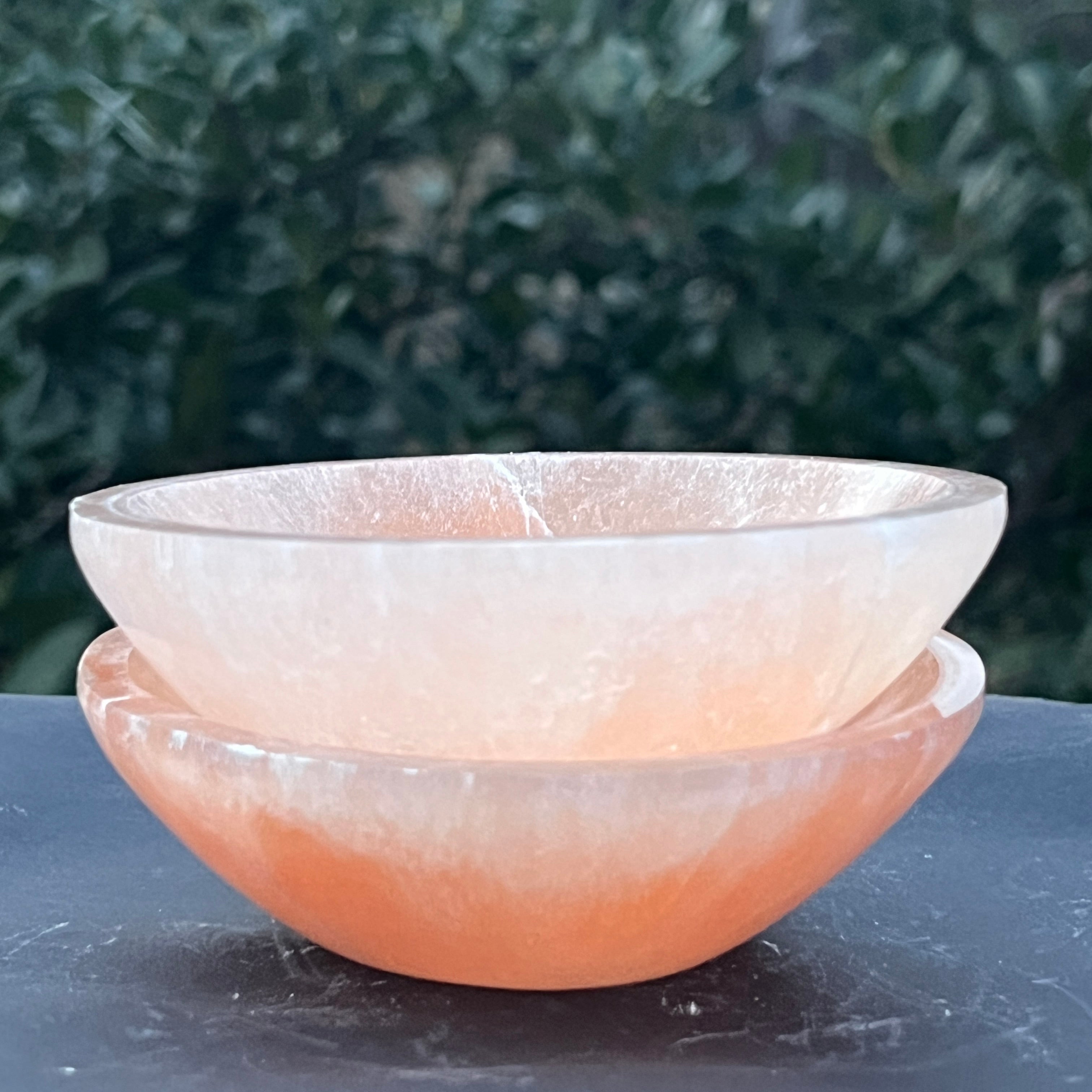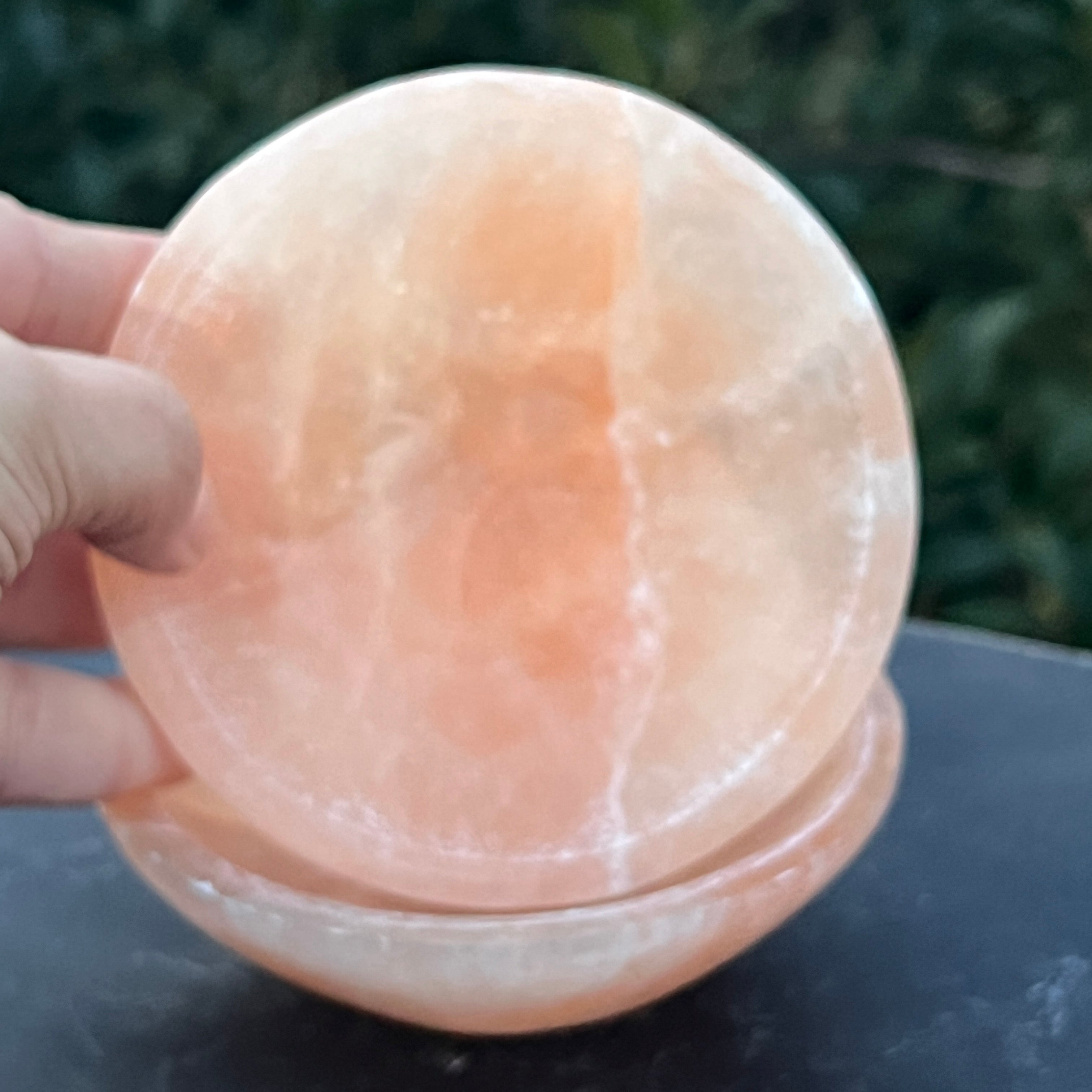 Oranžový selenit je kameňom jasnosti a vitality, ale aj jemného uzemnenia — most medzi slnečnou energiou a pokojom zeme. Vo svojej misovitej forme sa stáva nádobou očisty, určenou zhromažďovať a harmonizovať energie okolo vás.