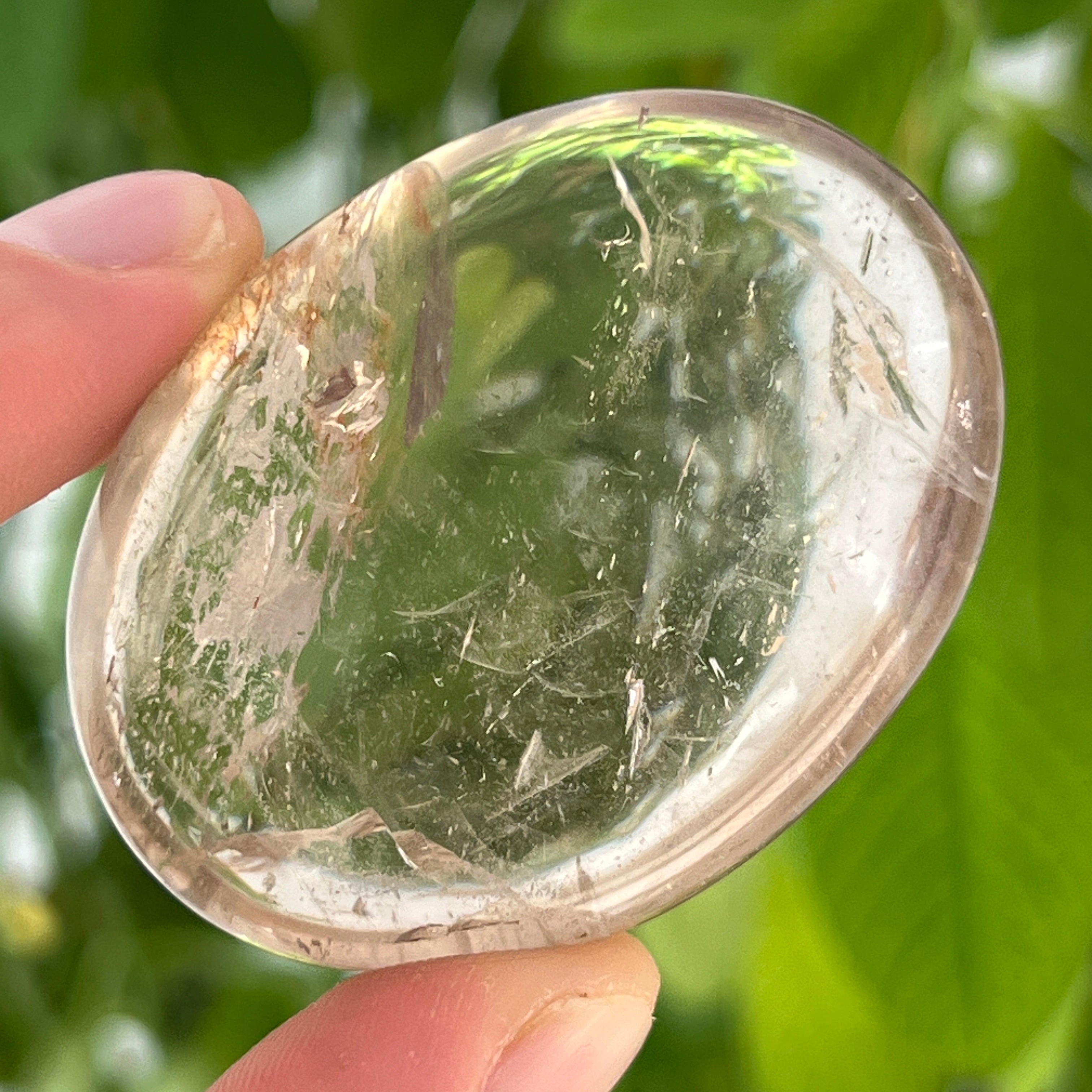 Palmový bezfarebný kremeň/horský krištáľ. Veľkosť: 5,5 * 4,1 * 2,5 cm