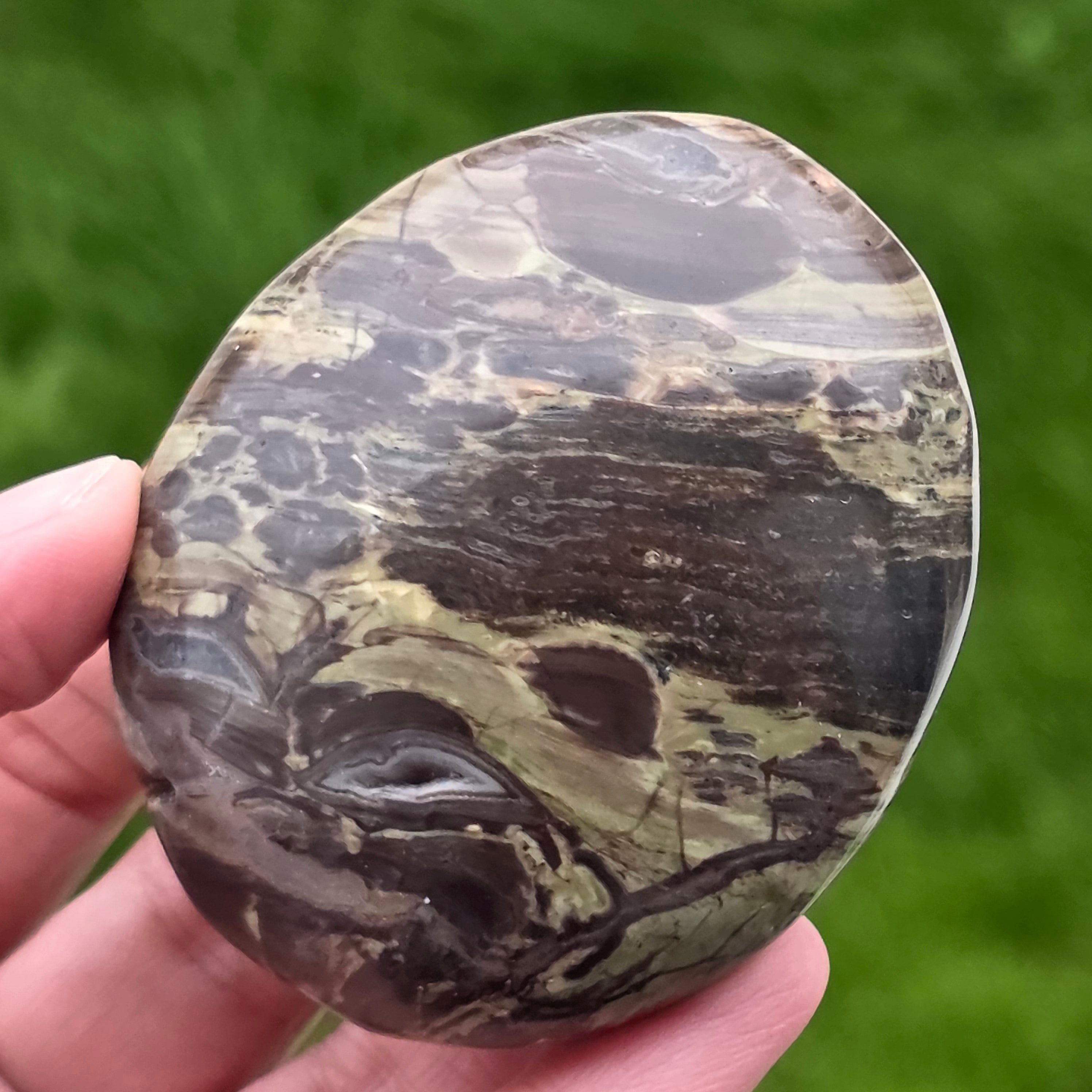 Každý palmstone je jedinečný, prírodne tvarovaný prúdením magmy a geologickou trpezlivosťou tisícročí. Je to kameň zakotvenia, obnovenia a uvoľnenia stagnujúcich emócií – talizman pre tých, ktorí chcú znovuzrodiť z vlastného popola.