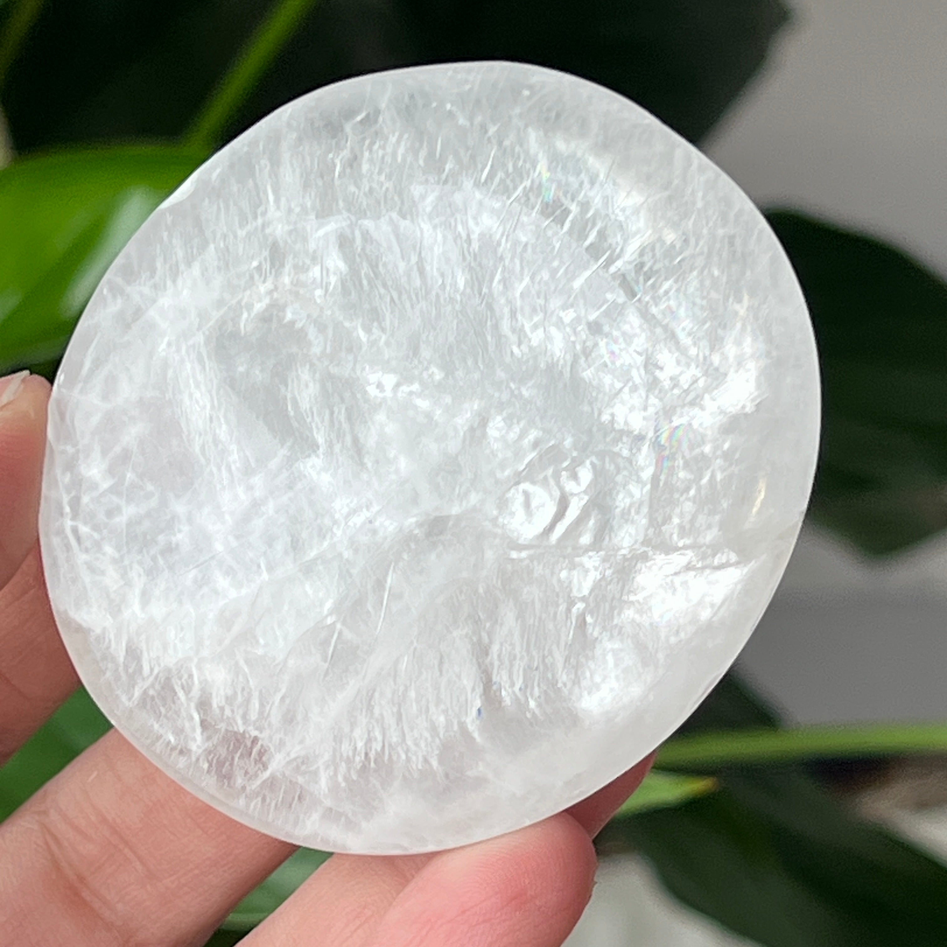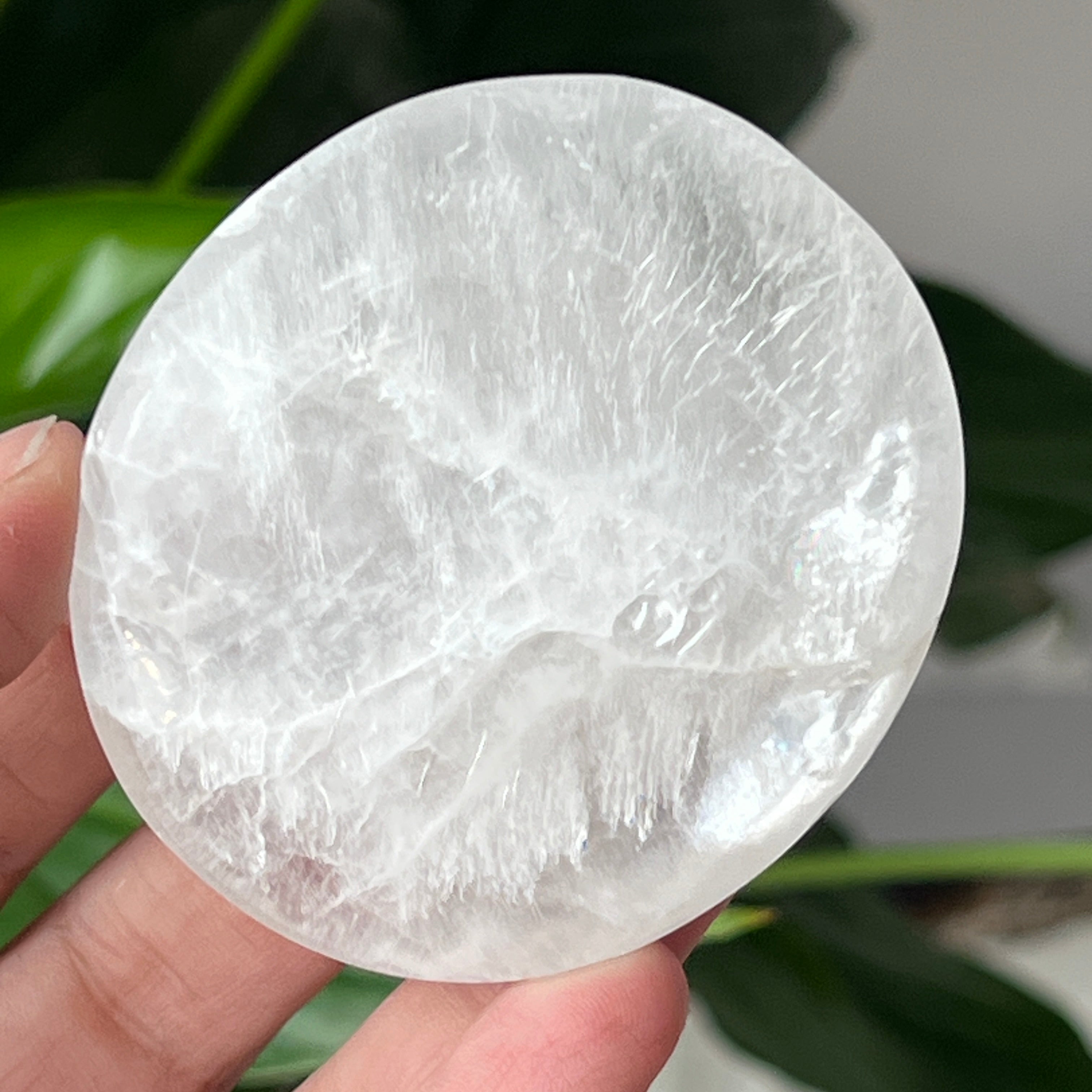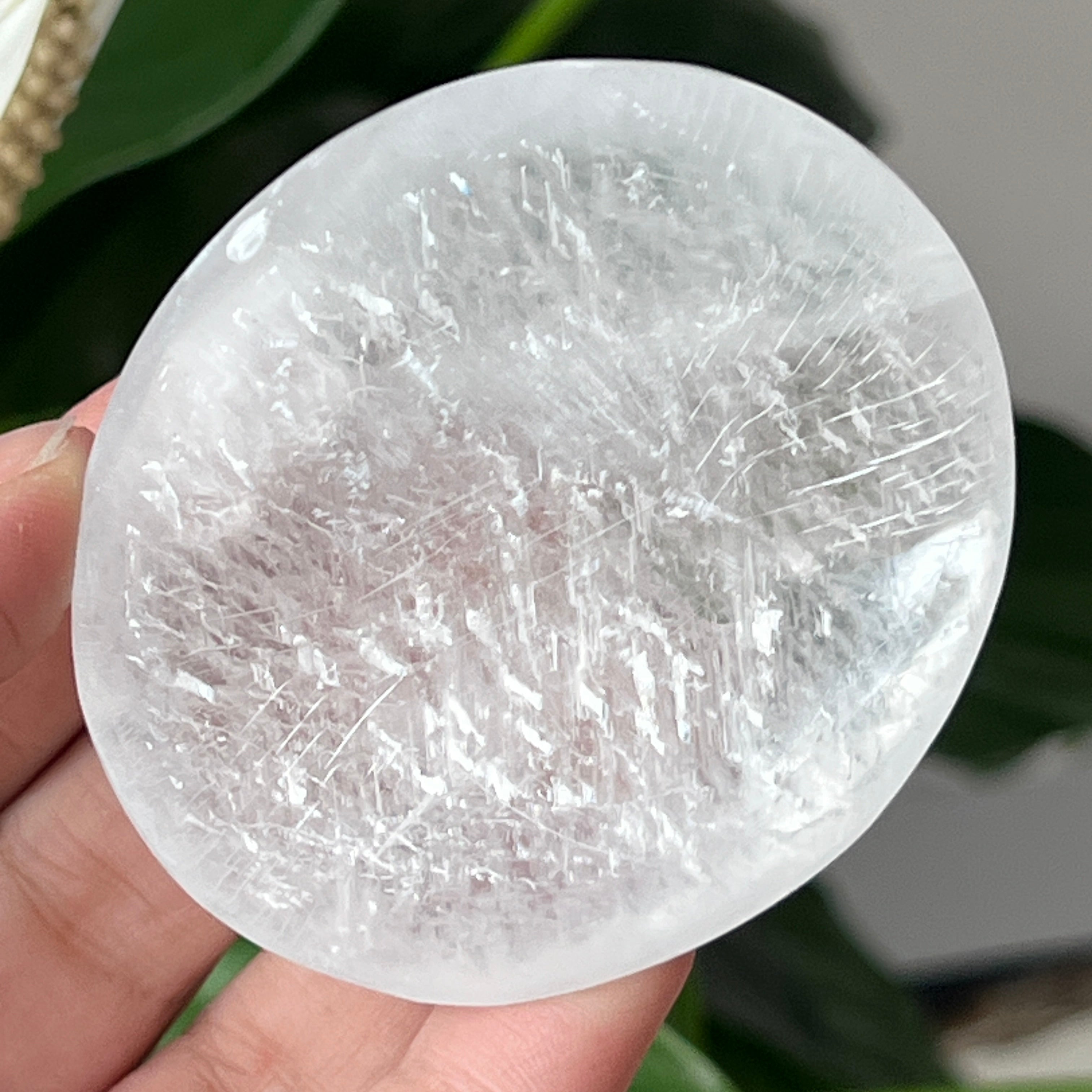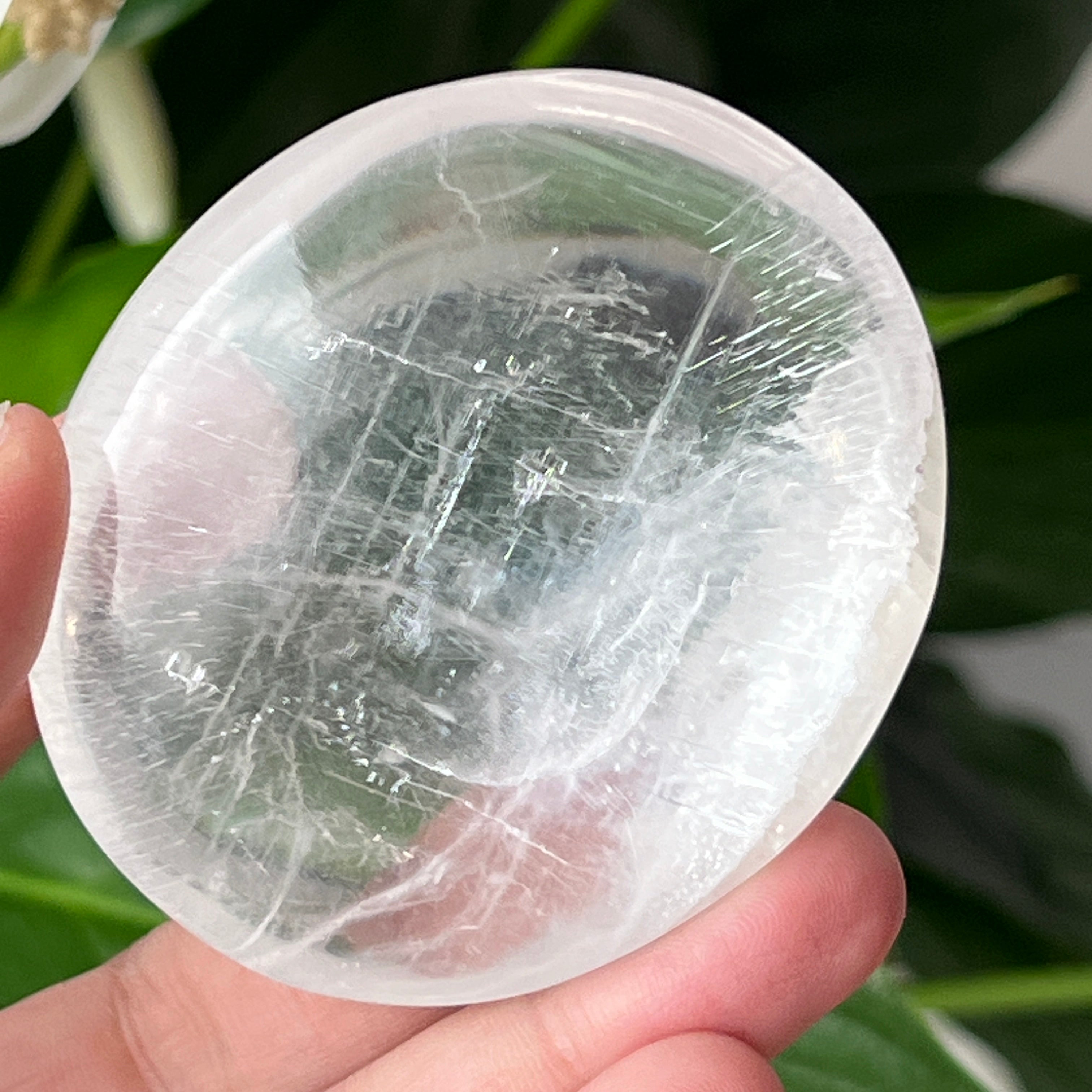Tento oválny selenit s lesklým povrchom pochádza z Maroka a zaujme svojou priehľadnou textúrou a jemným leskom. Oválny tvar, známy aj ako „soap“ alebo palmstone, je ideálny na držanie v dlani počas meditácie alebo relaxačných rituálov.